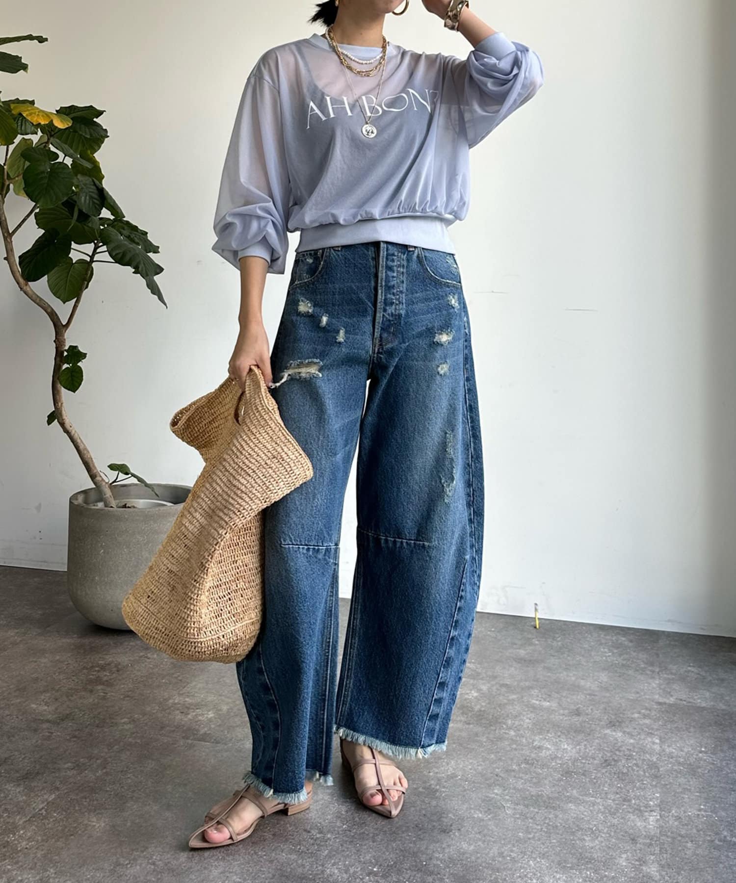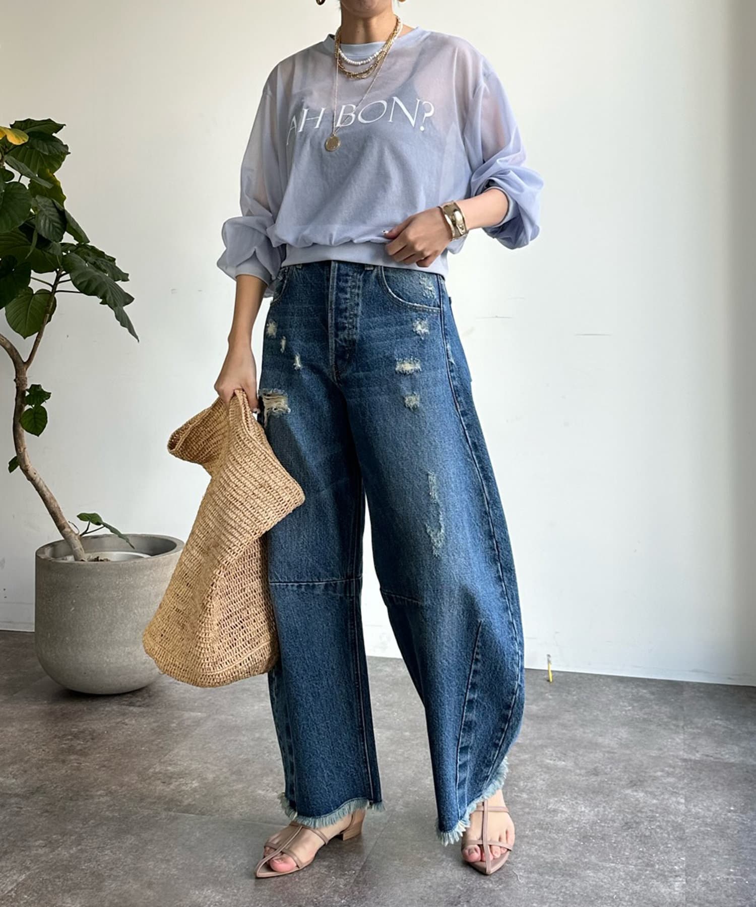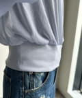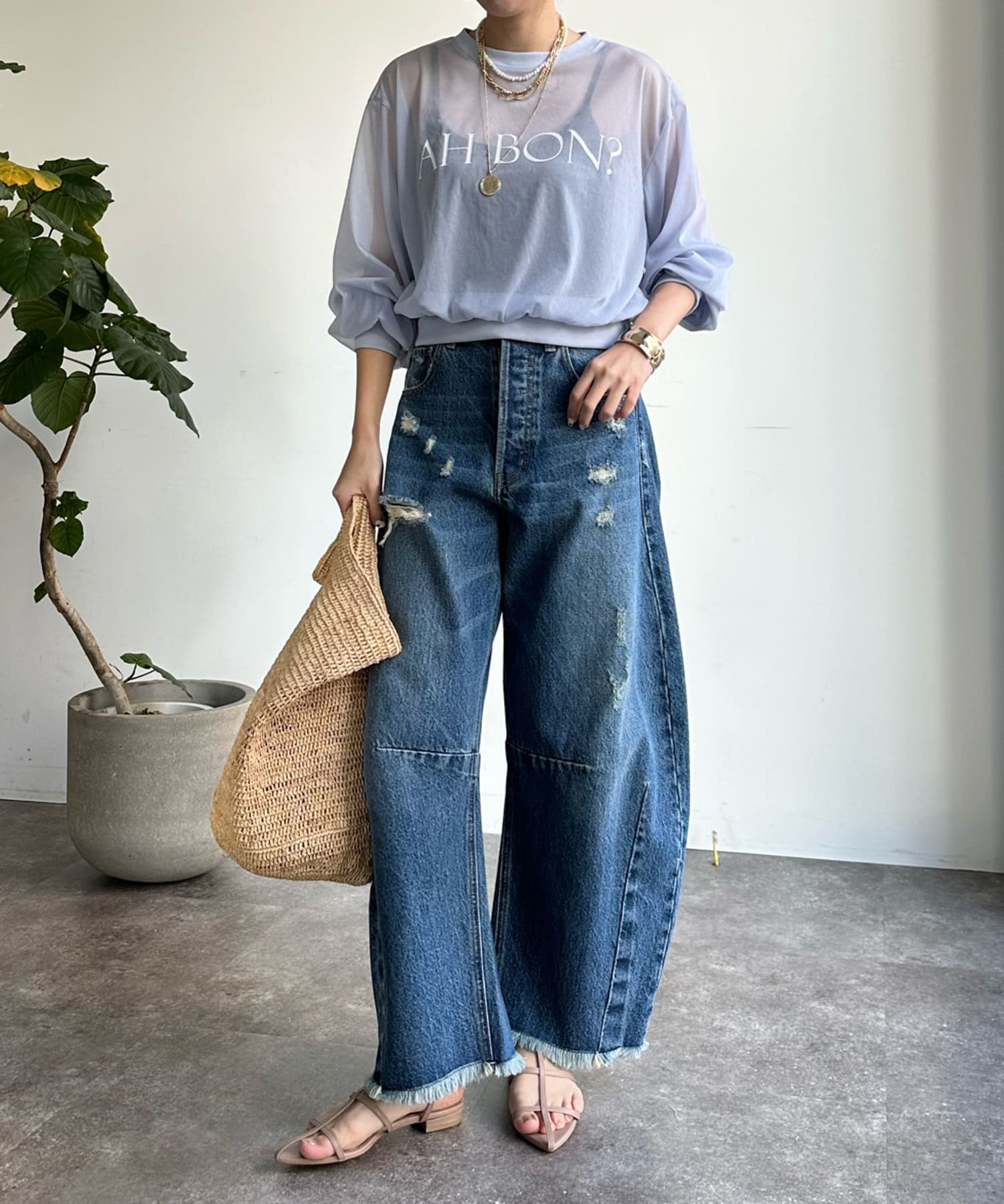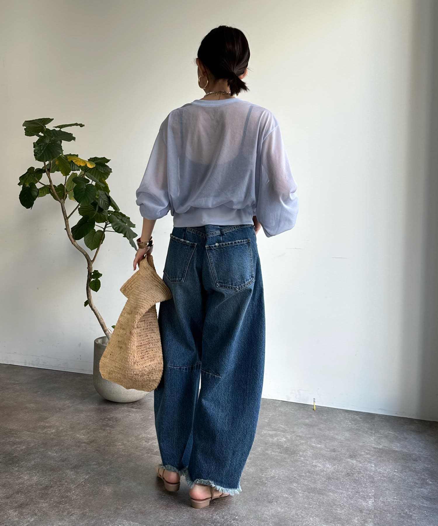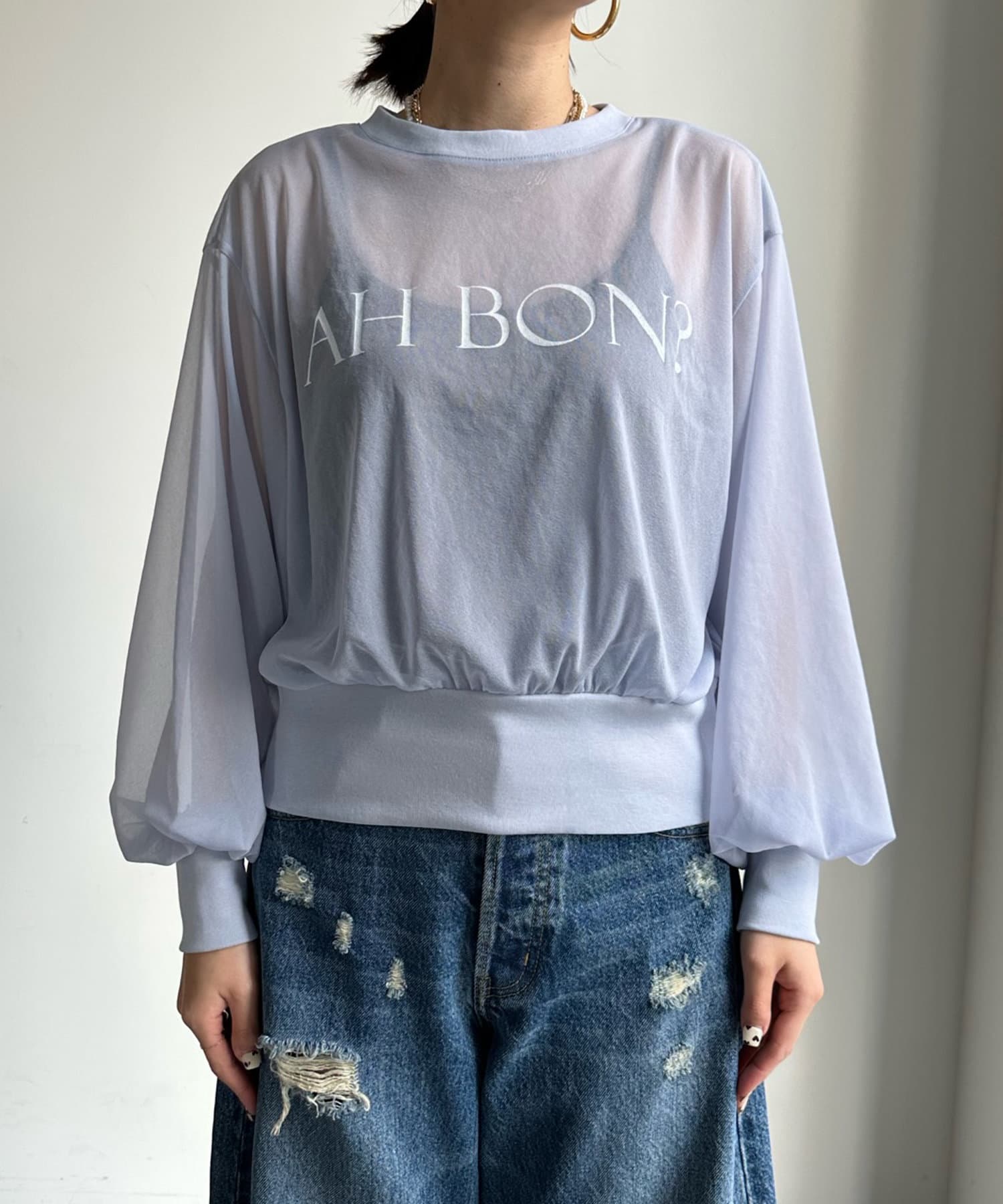 ほんのりとシアー感のある素材と、さり気ないロゴがポイントの1枚。