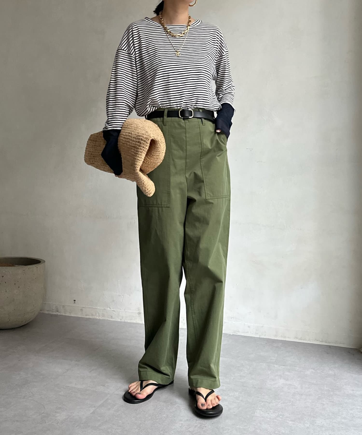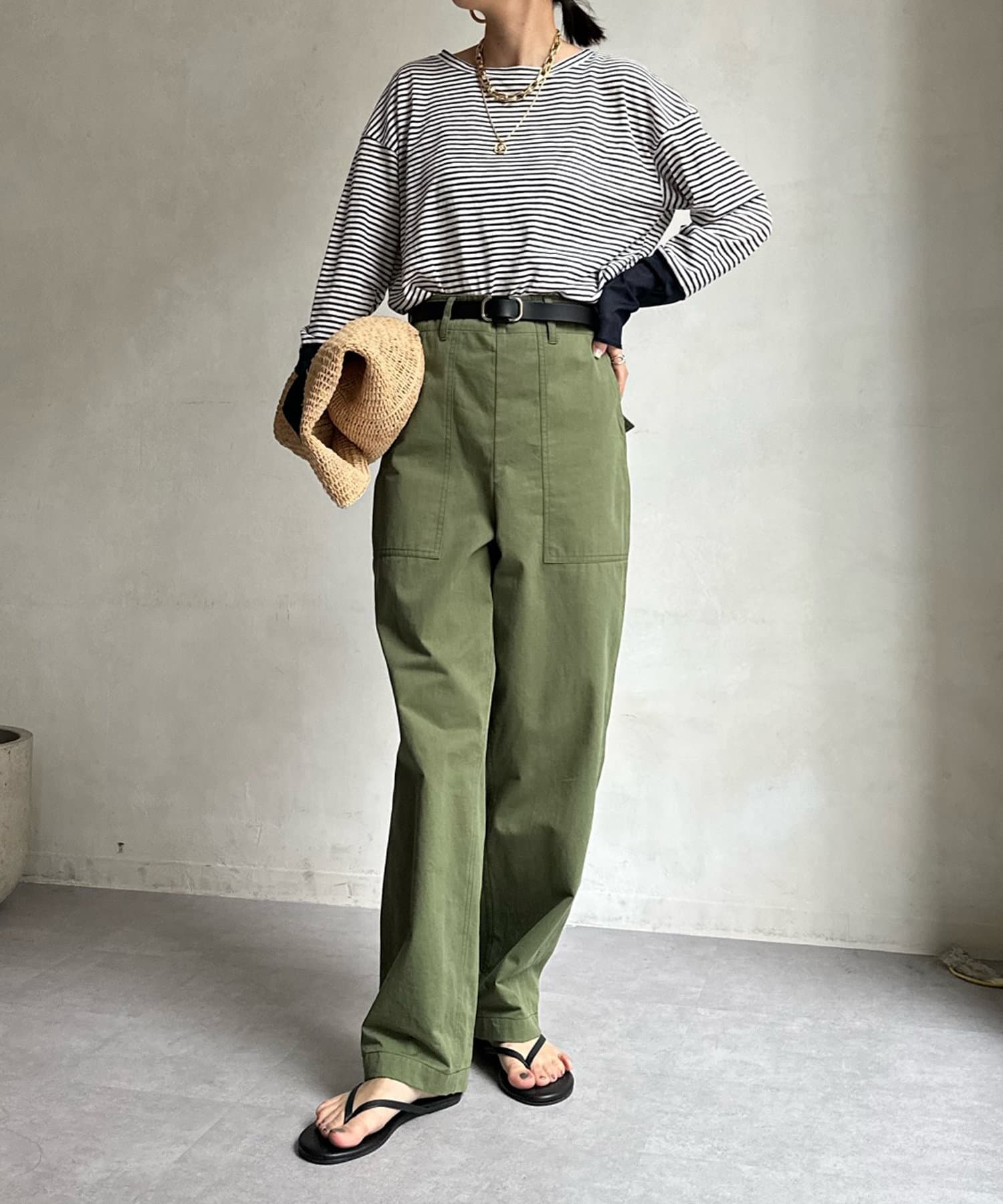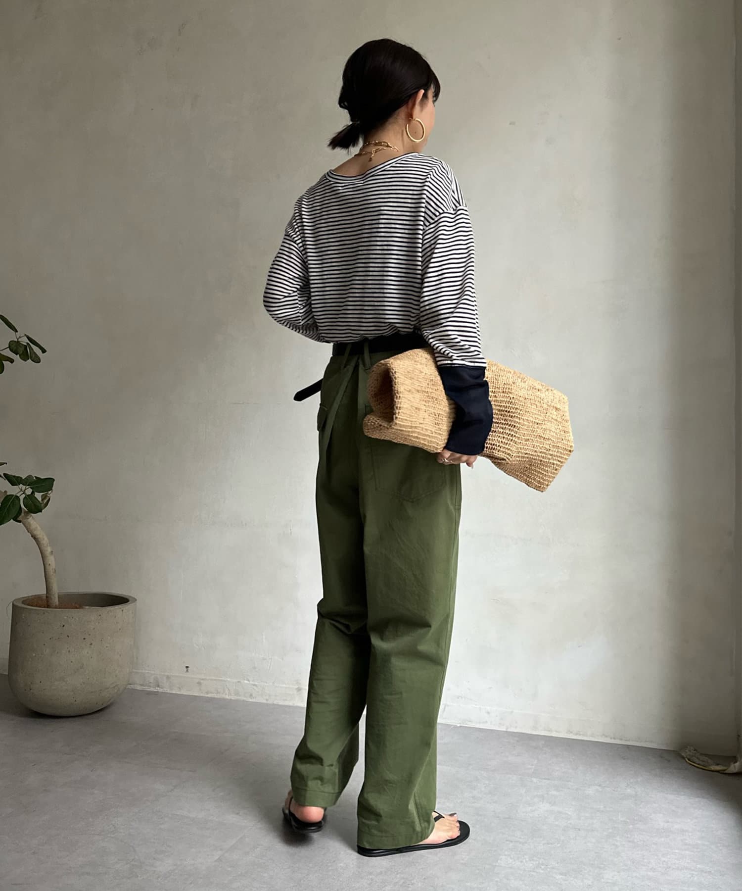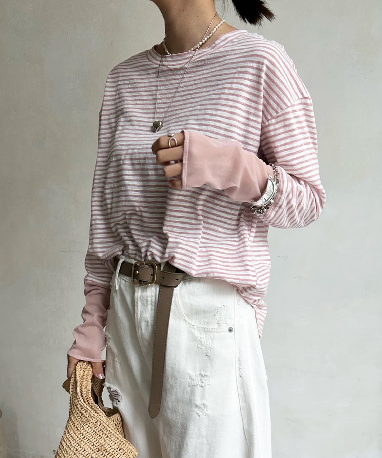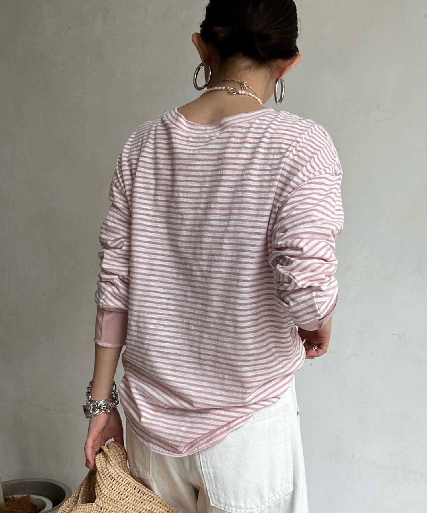細めのボーダーが主張しすぎず馴染みやすい、1枚でもレイヤードでも着回しが楽しめるこだわりの詰まったカットソー。