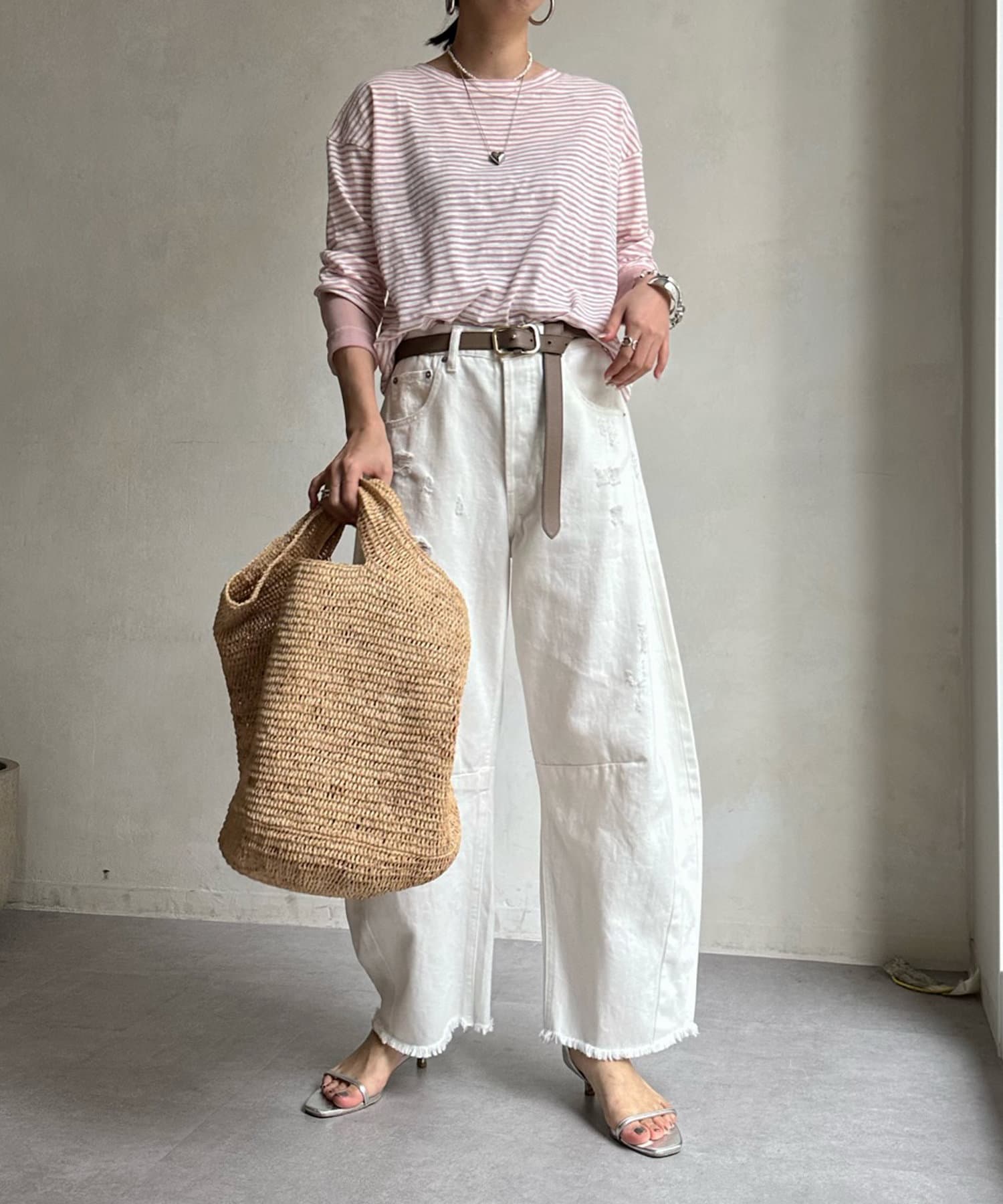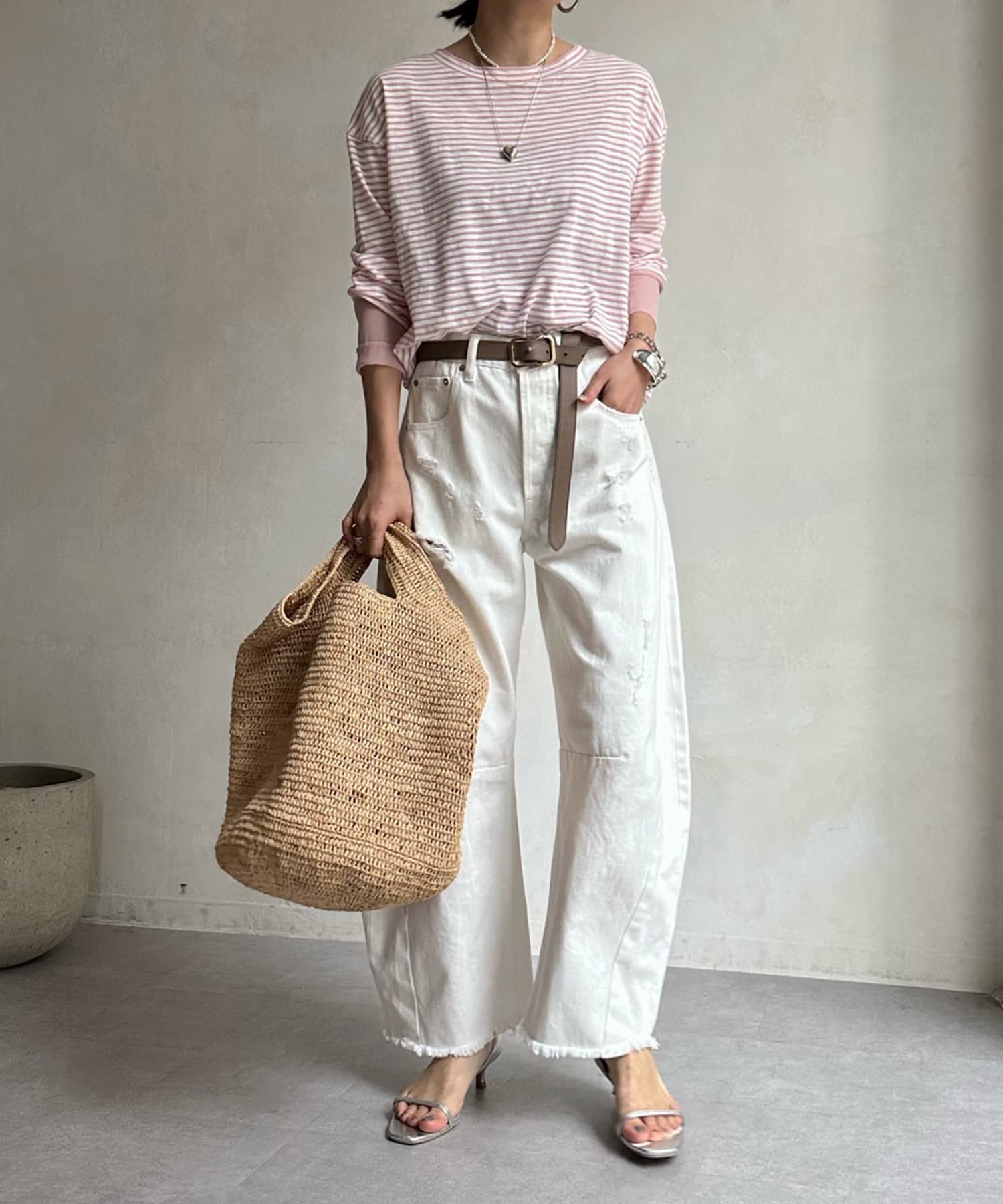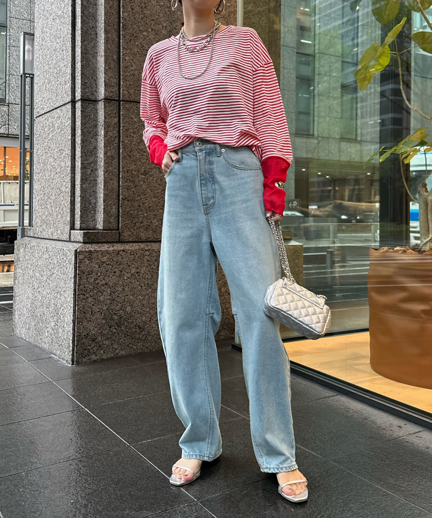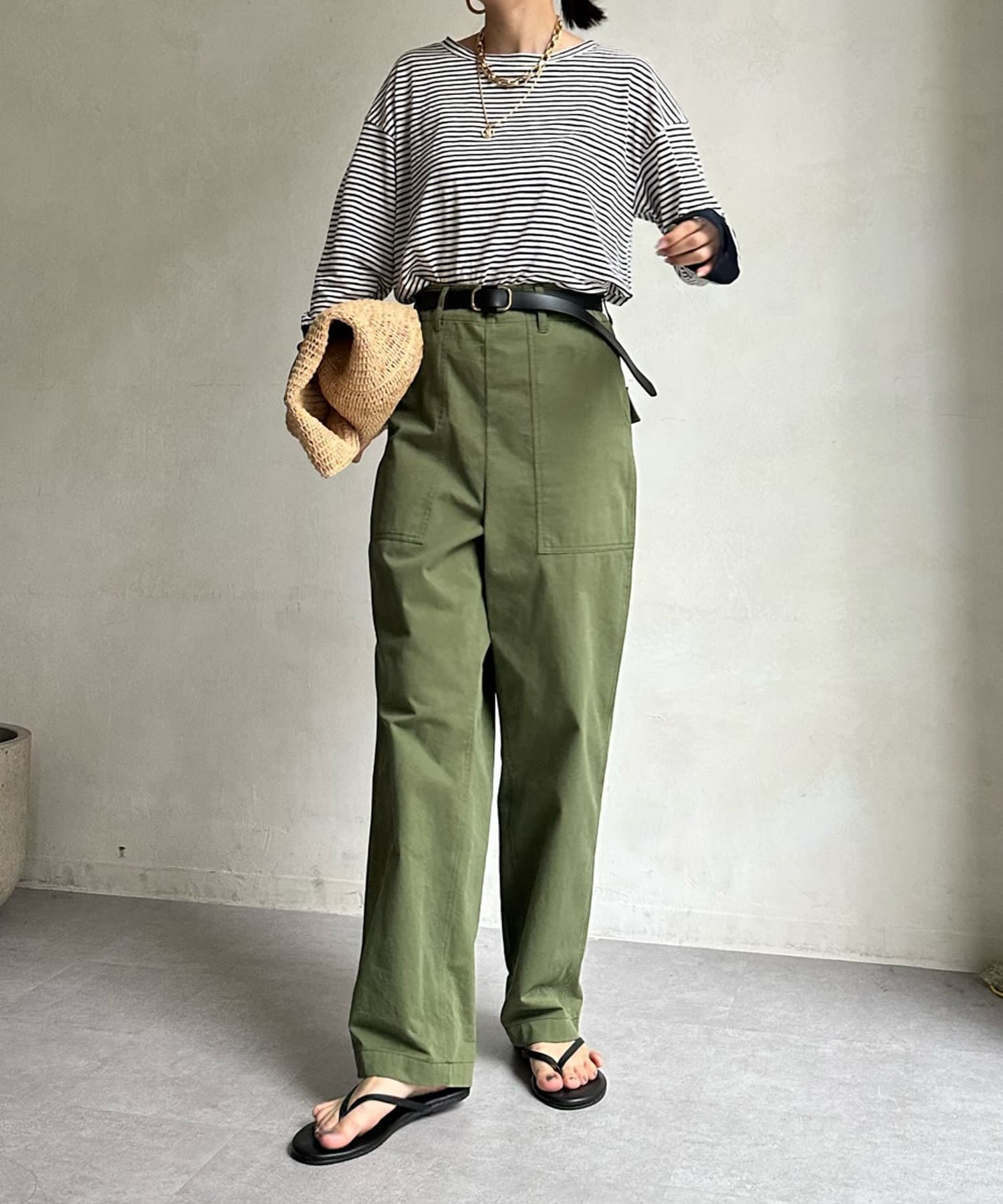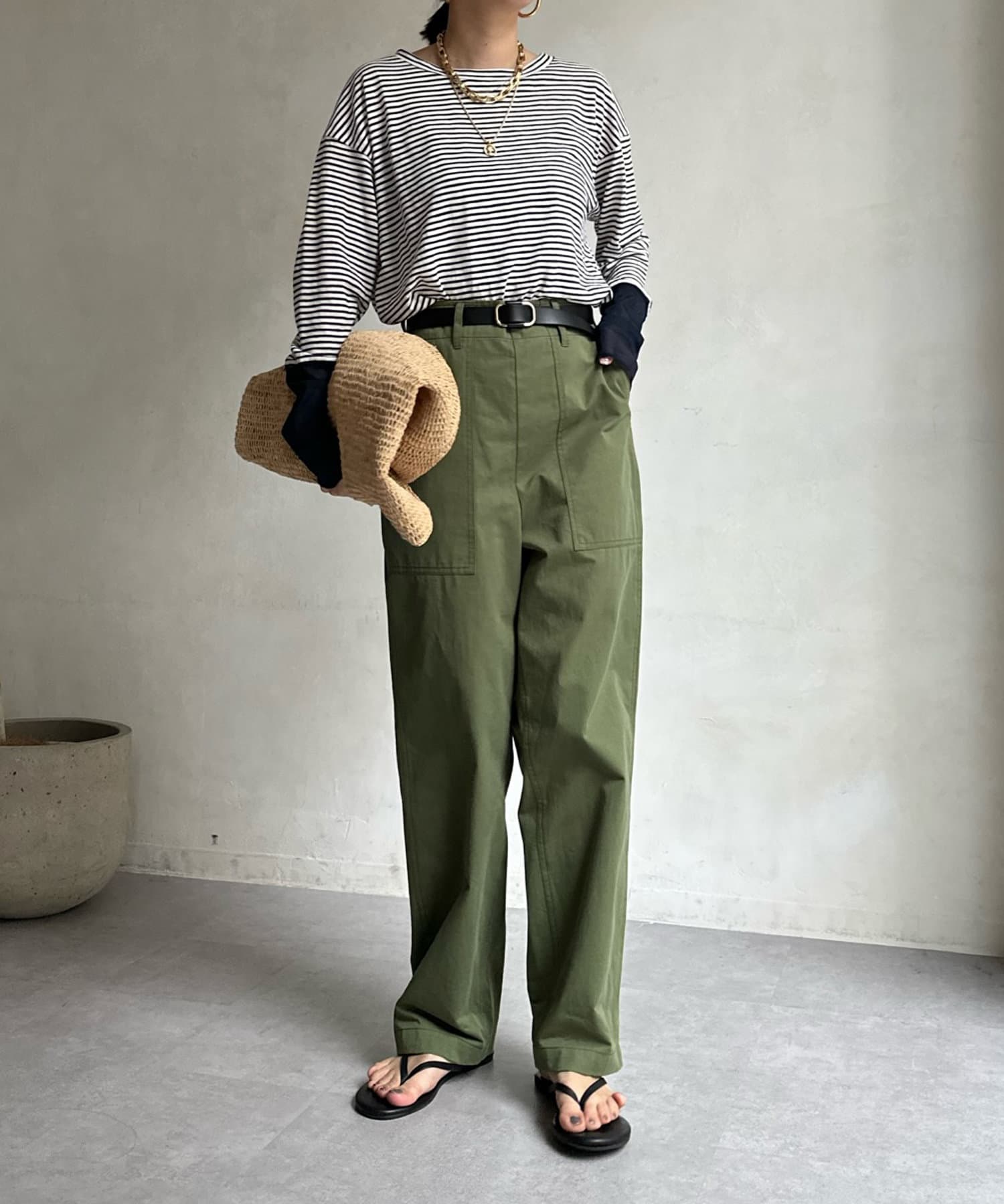 細めのボーダーが主張しすぎず馴染みやすい、1枚でもレイヤードでも着回しが楽しめるこだわりの詰まったカットソー。