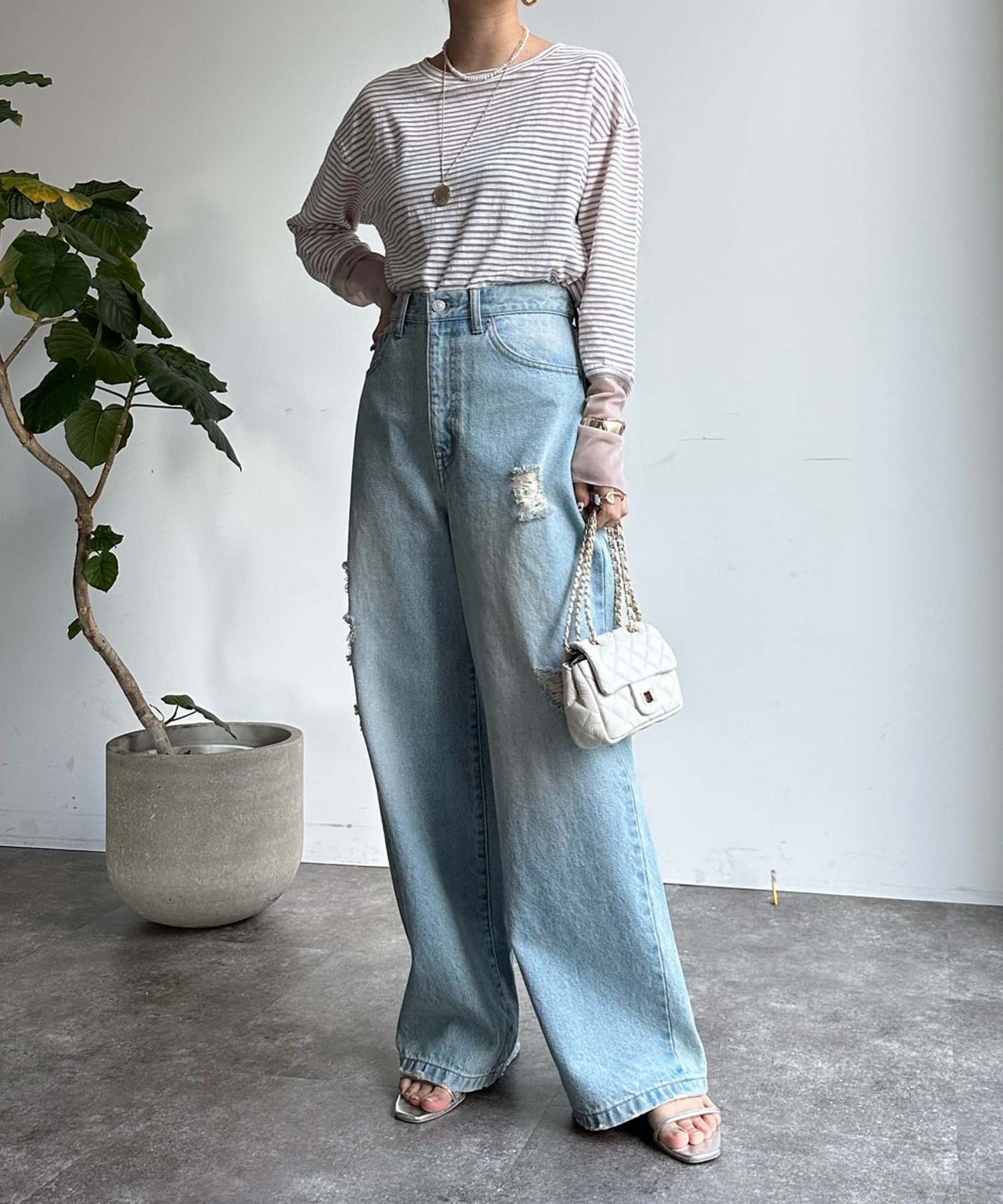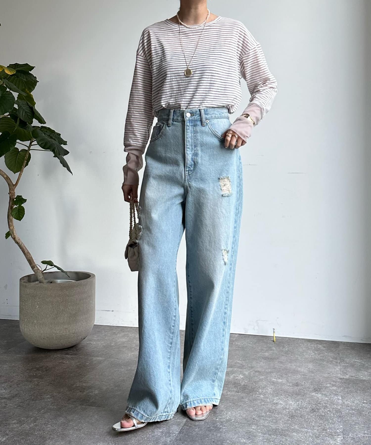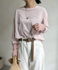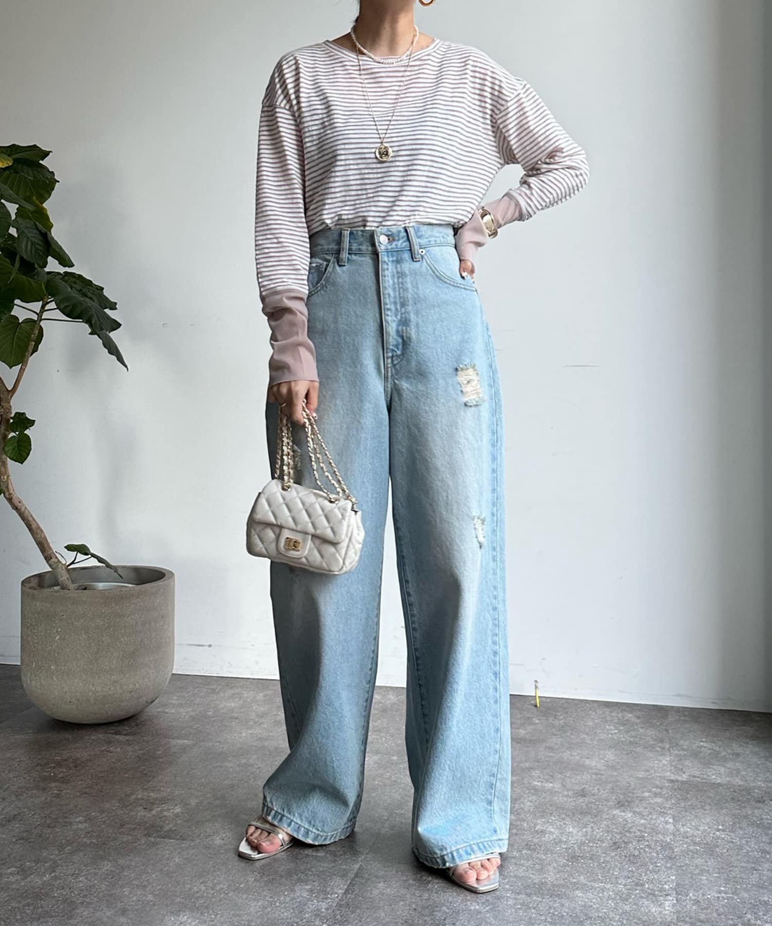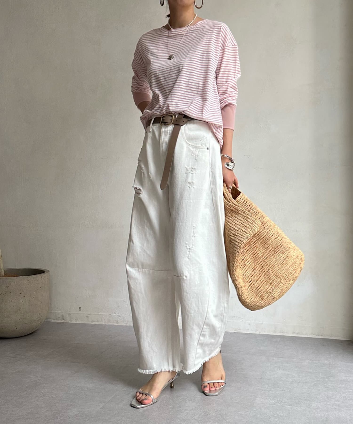 細めのボーダーが主張しすぎず馴染みやすい、1枚でもレイヤードでも着回しが楽しめるこだわりの詰まったカットソー。