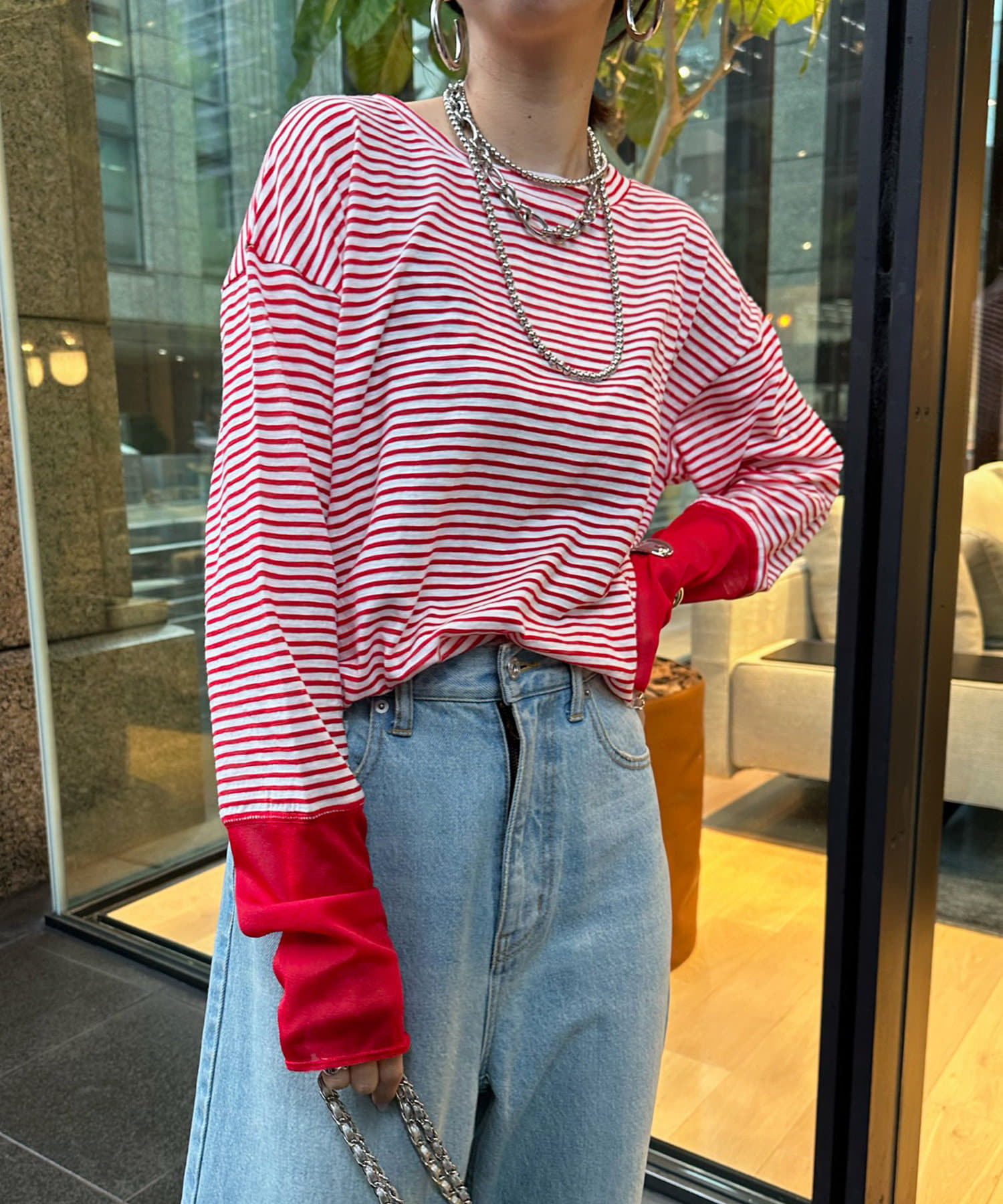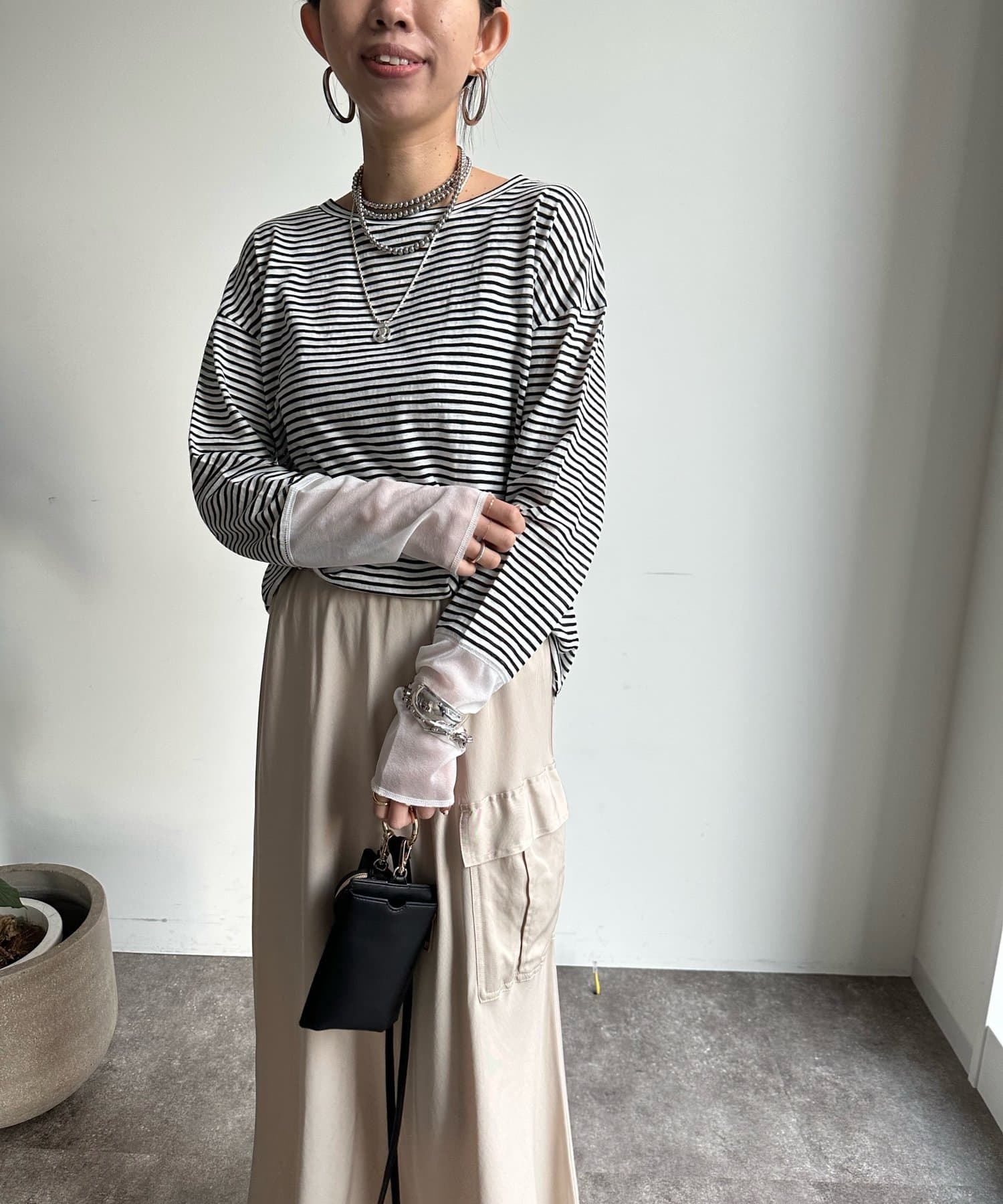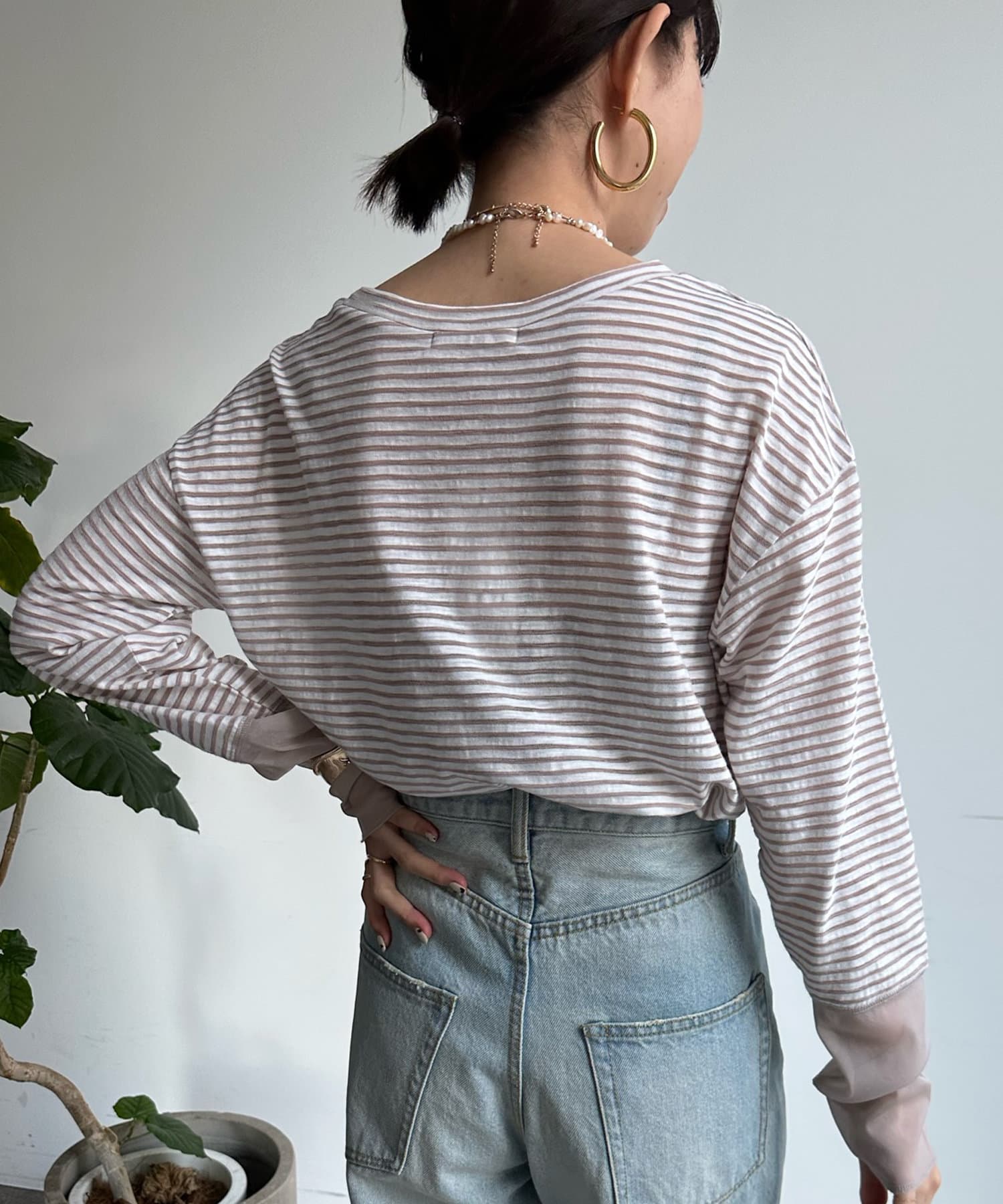 お袖部分は長めに切り替えているため、レイヤードした際もちらりと覗くアクセントに!