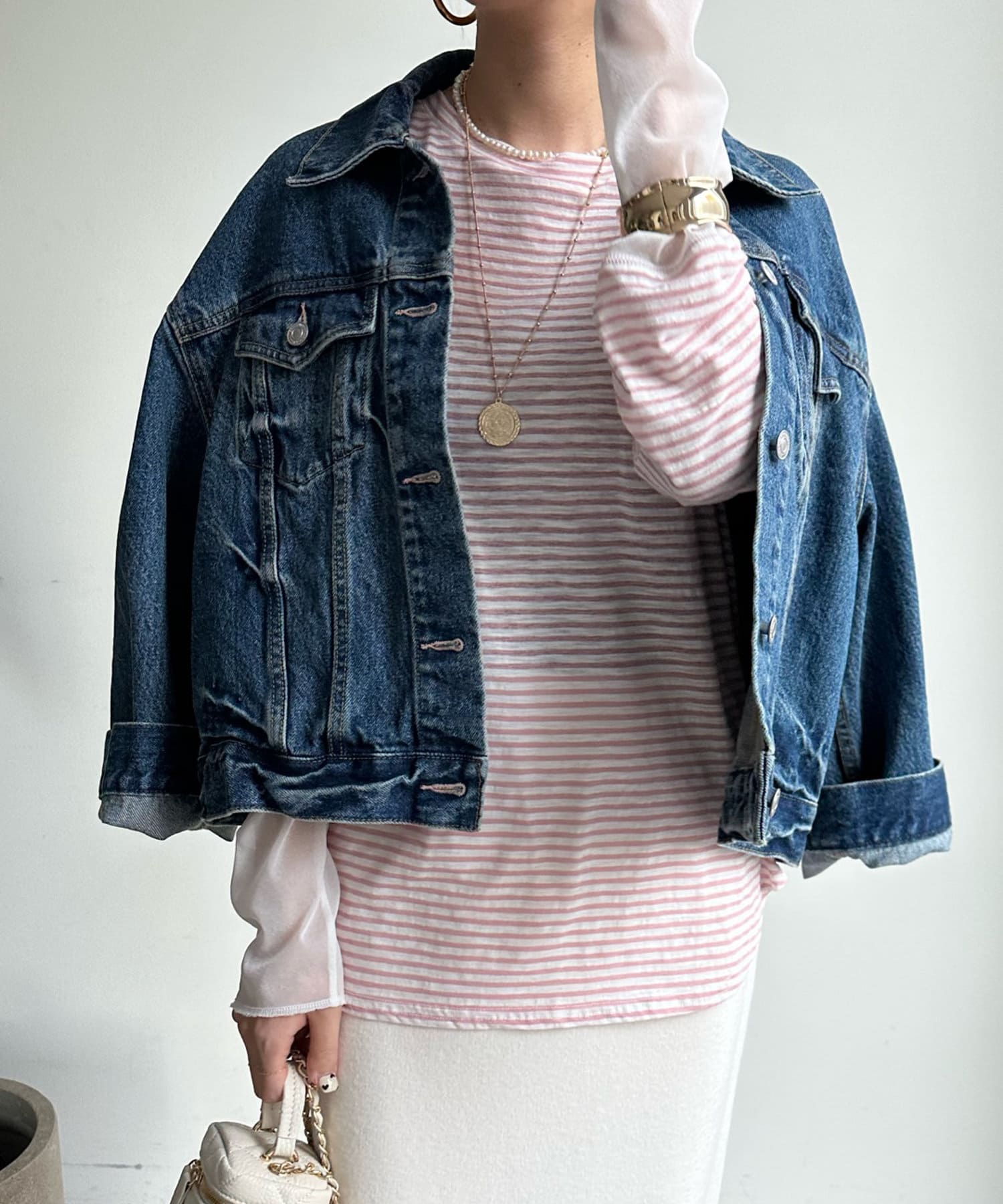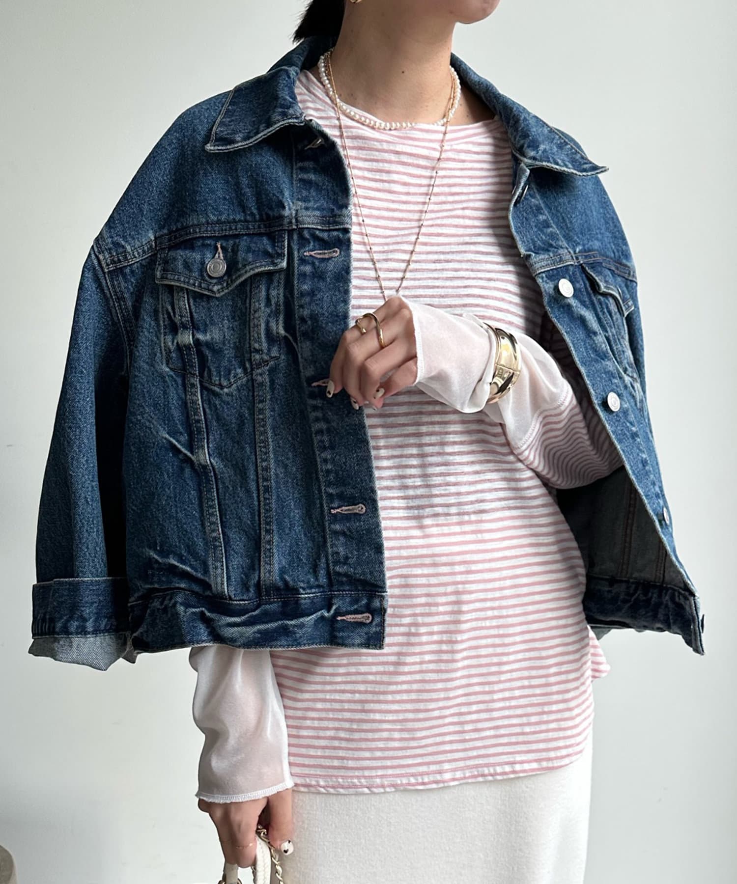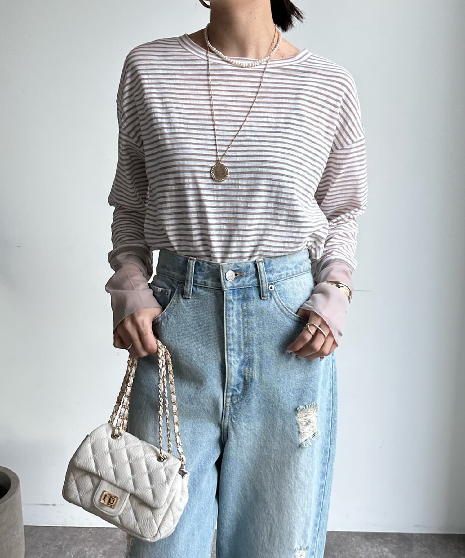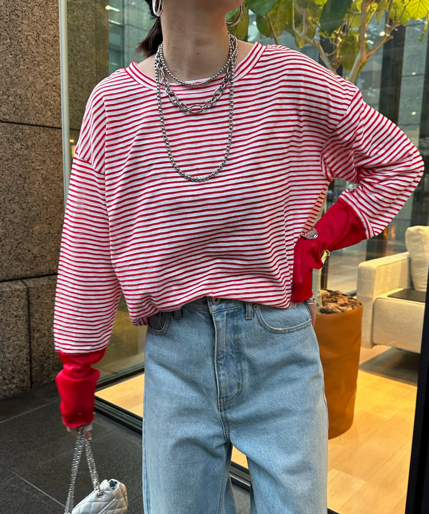 お袖部分は長めに切り替えているため、レイヤードした際もちらりと覗くアクセントに!