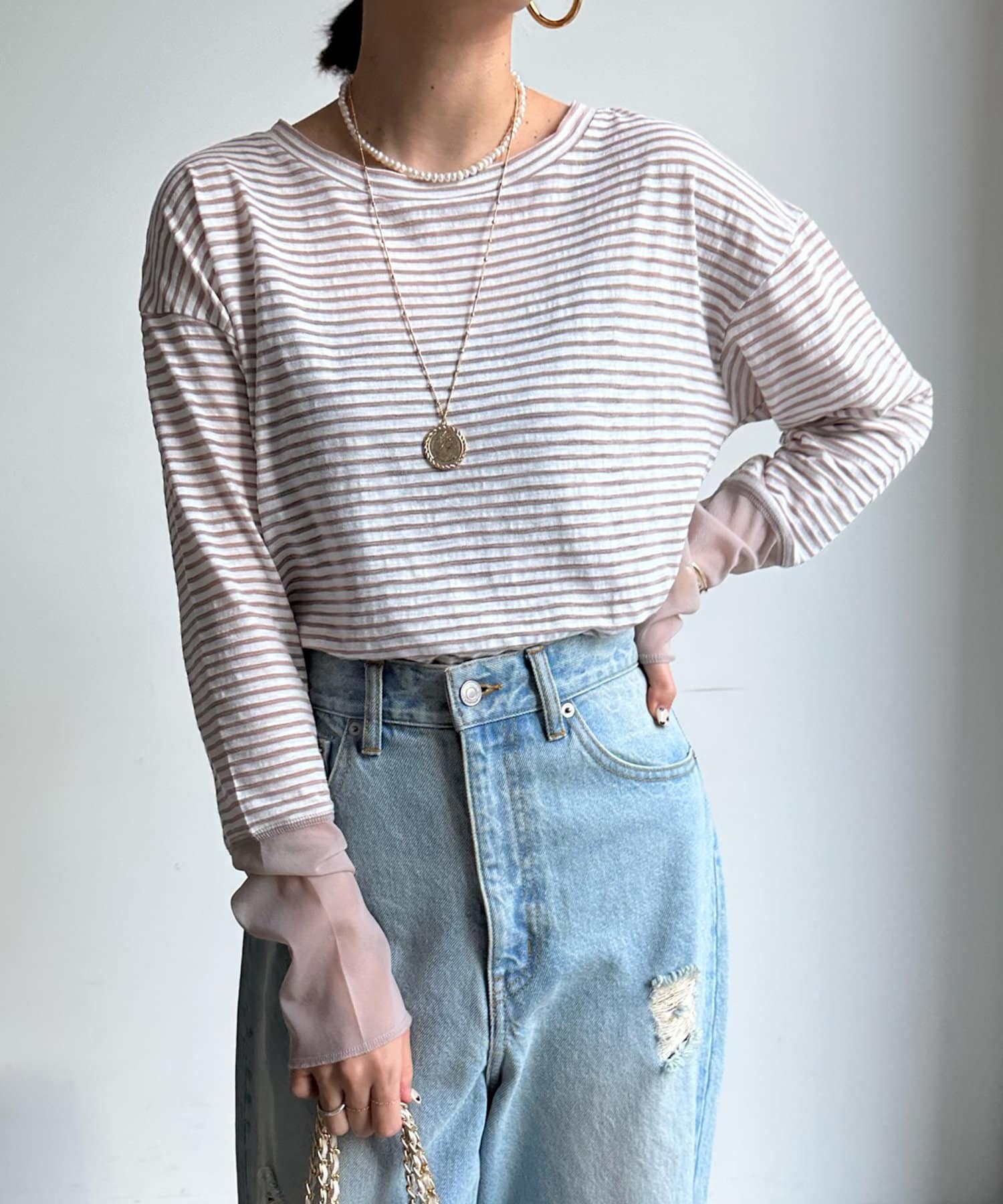 柔らかく肌触りの良い生地感で、お袖はトレンド感のあるシアー素材に切り替え。