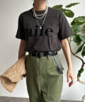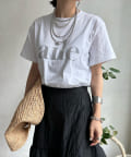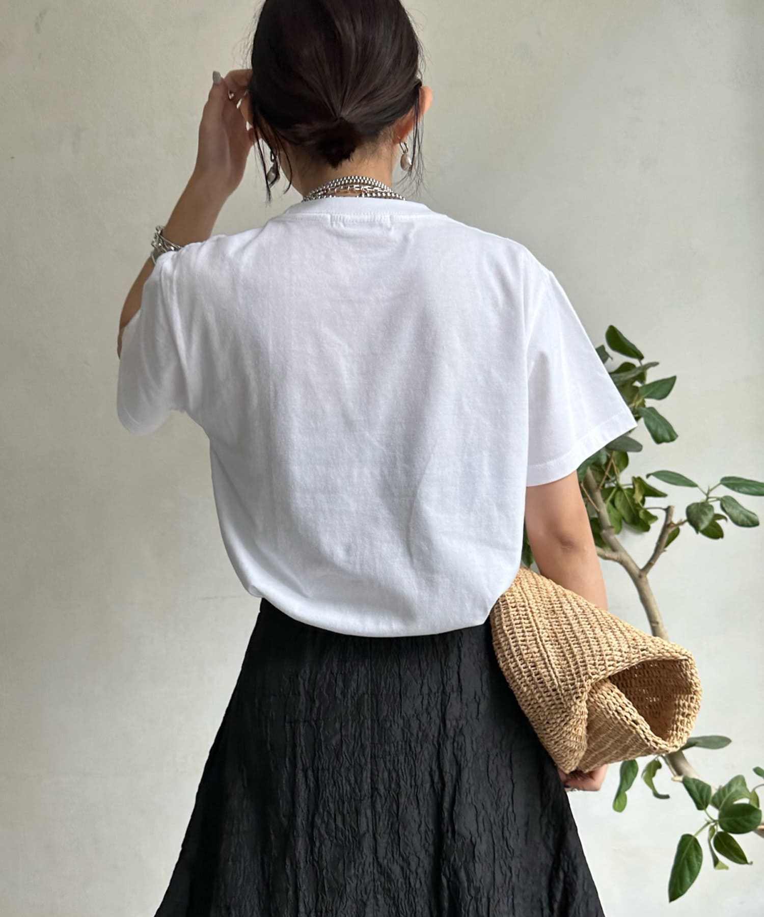 表面感のあるフロッキーロゴがアクセントのシンプルTシャツ。