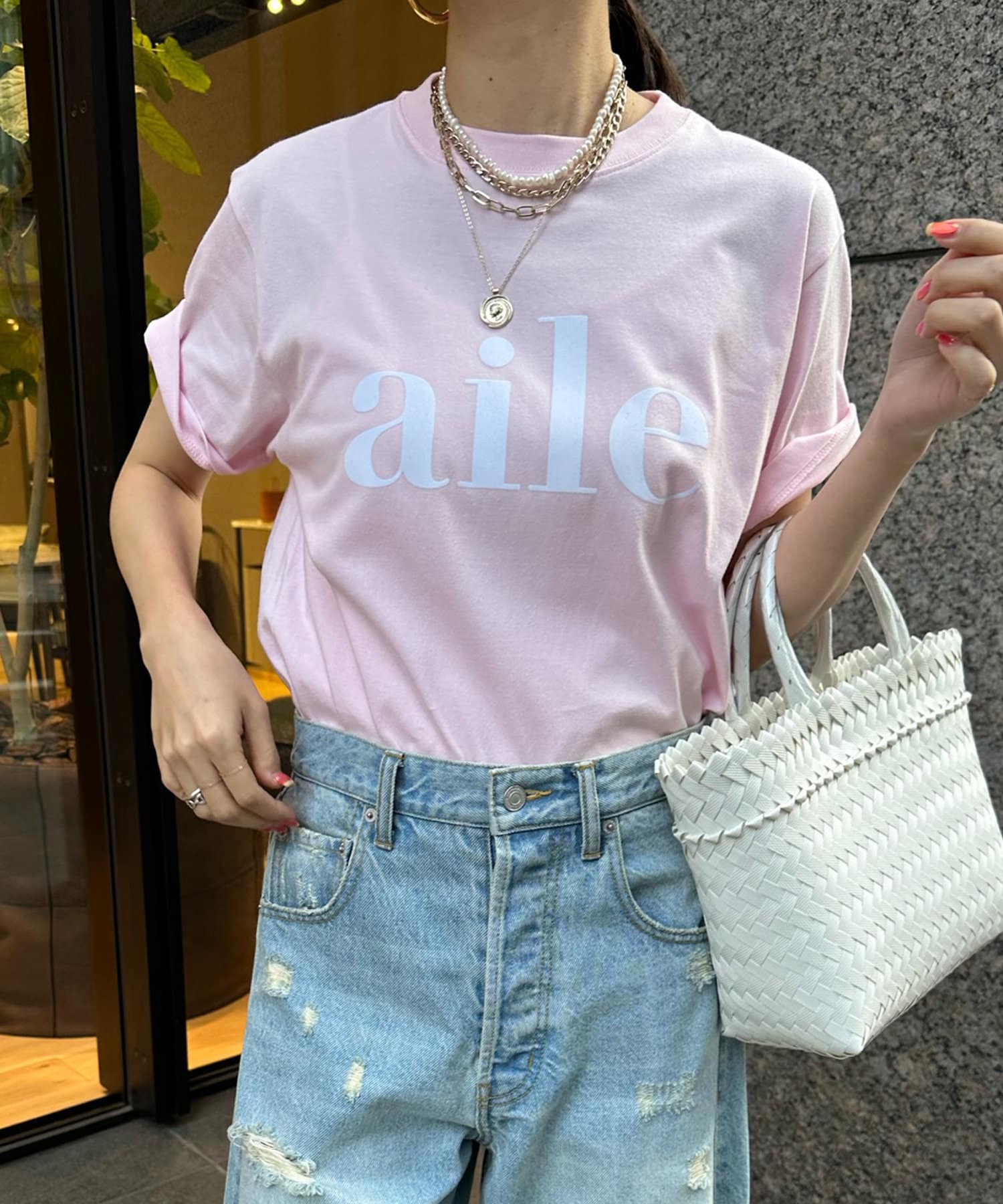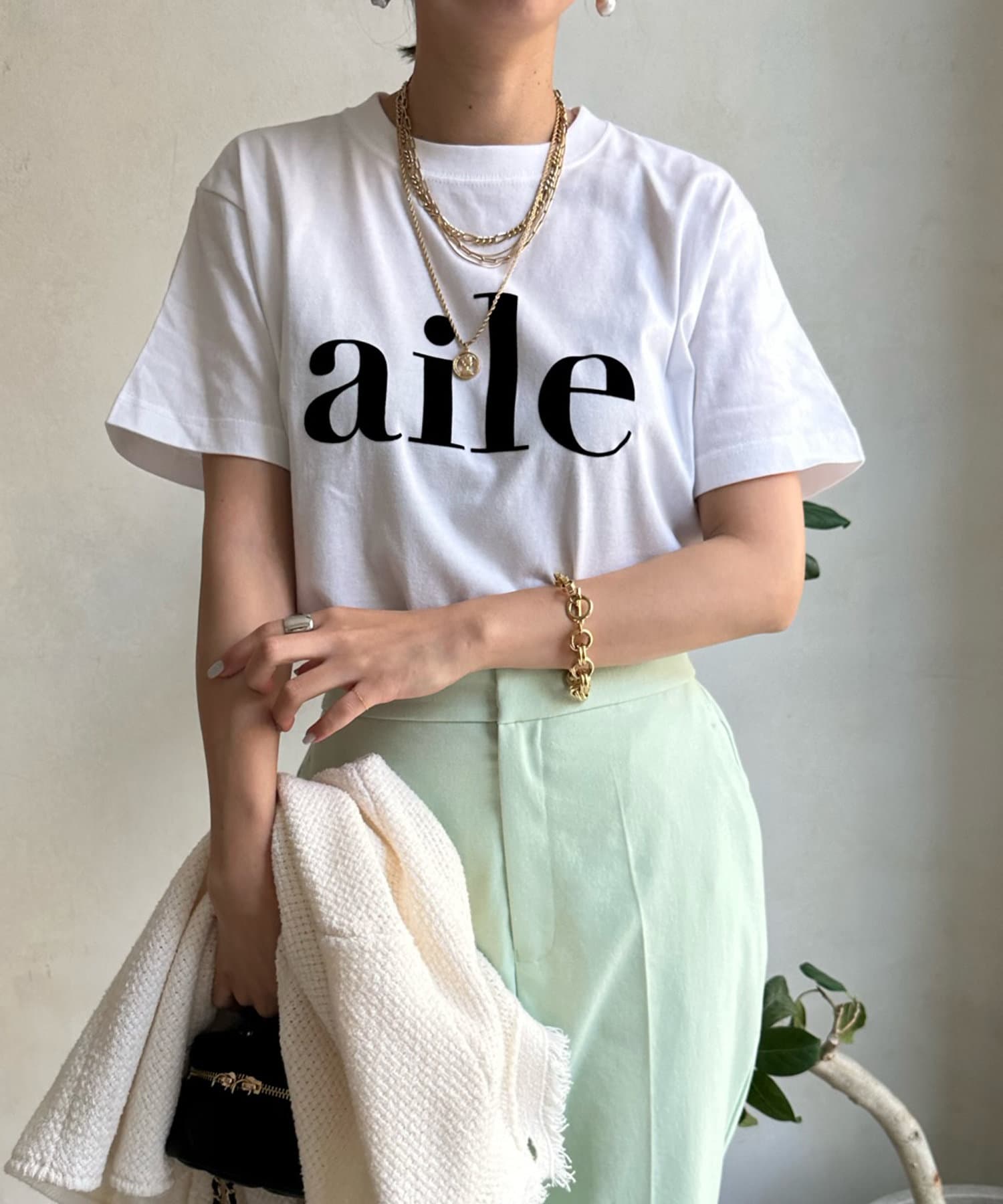 TOP > DOUDOU > レディース > トップス > Tシャツ/カットソー > 【大人気アイテム!】aileフロッキーロゴTEE