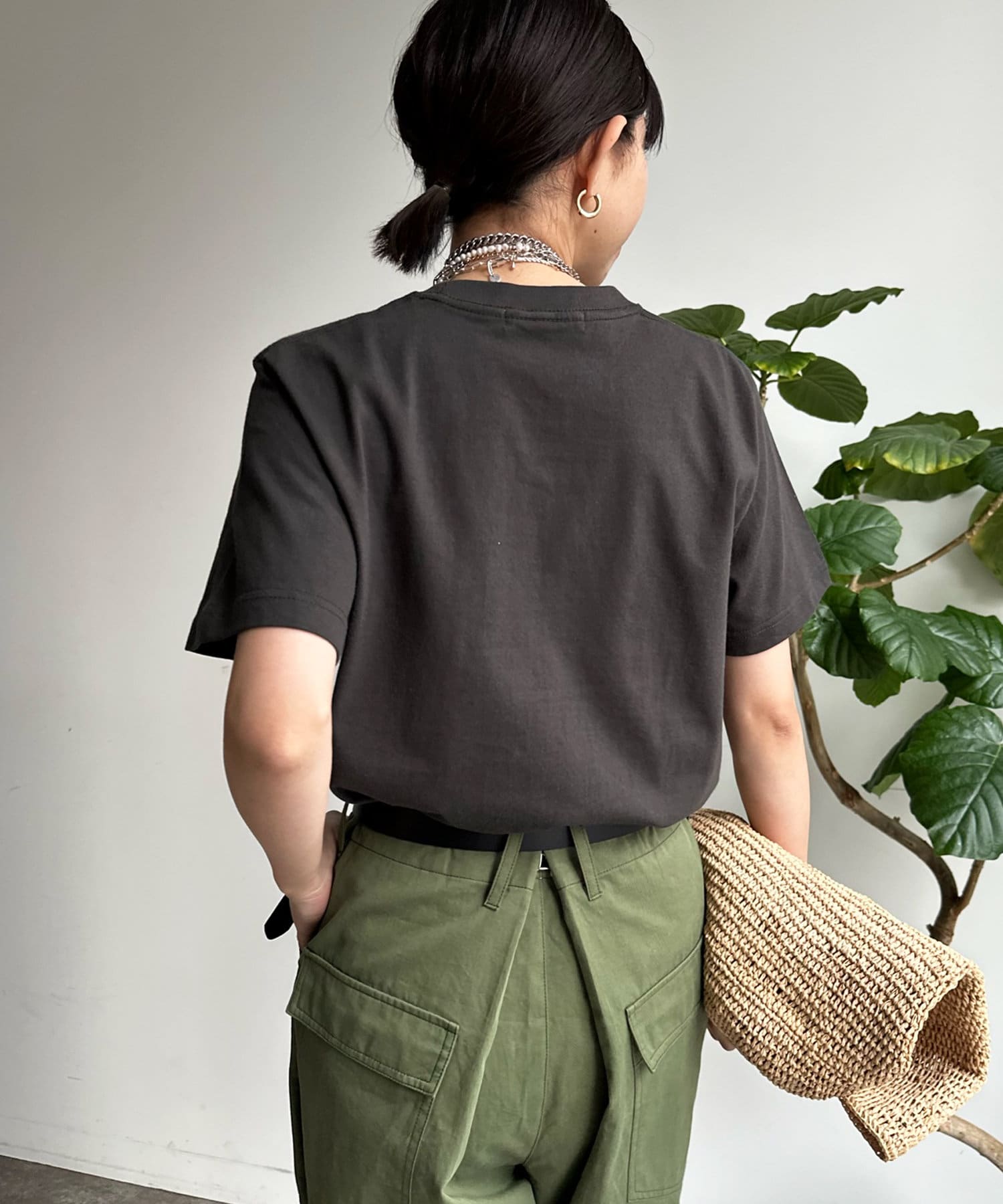ロゴの何とも言えない可愛さと、コンパクトなサイズ感がカジュアルになり過ぎず、大人なスタイリングにもマッチして着ていただけます。