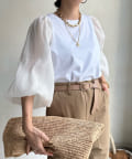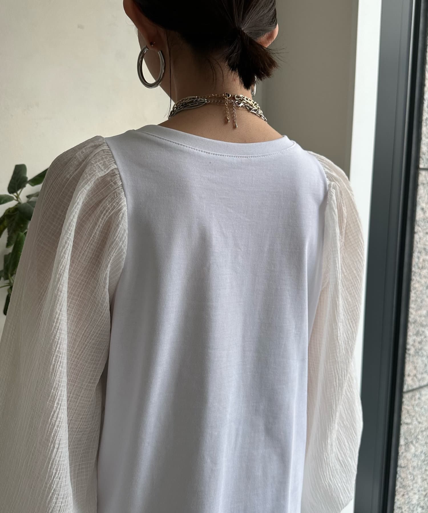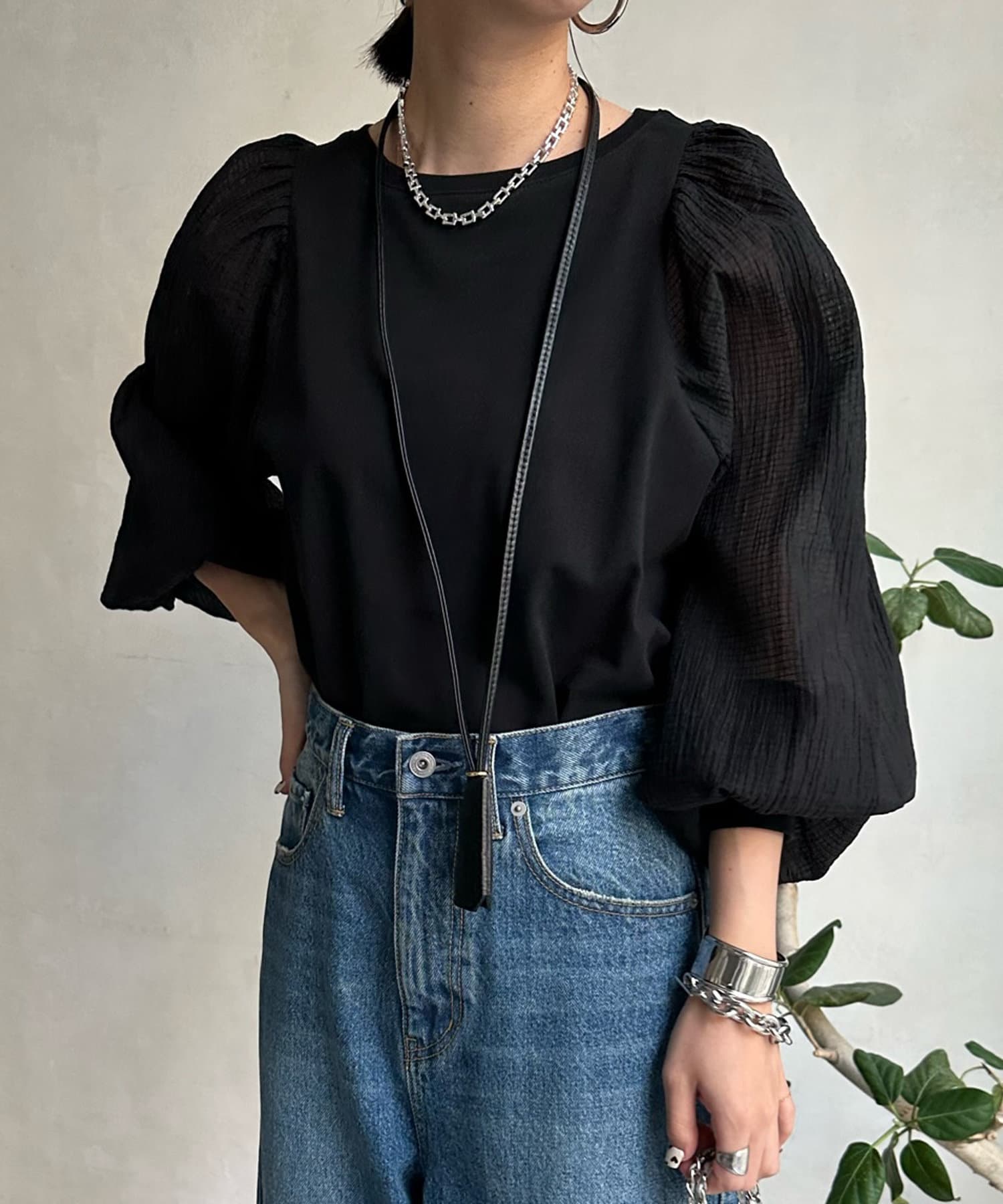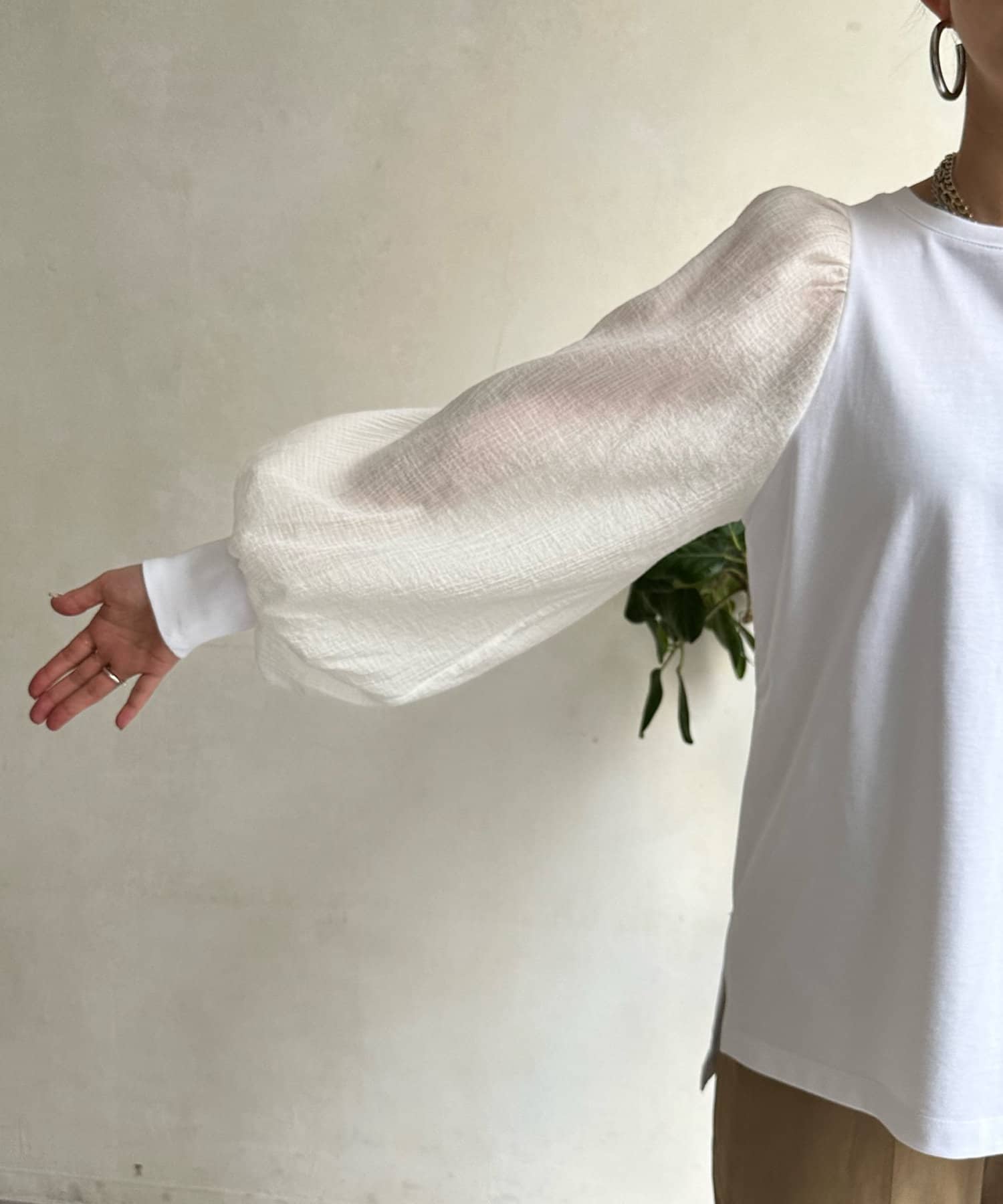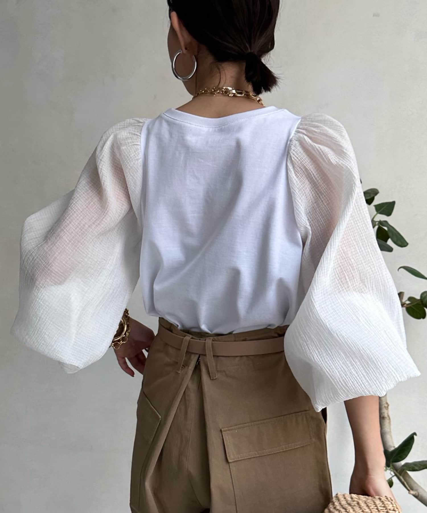お袖をシアー素材に切り替え、ボリューム感もプラスした1枚。