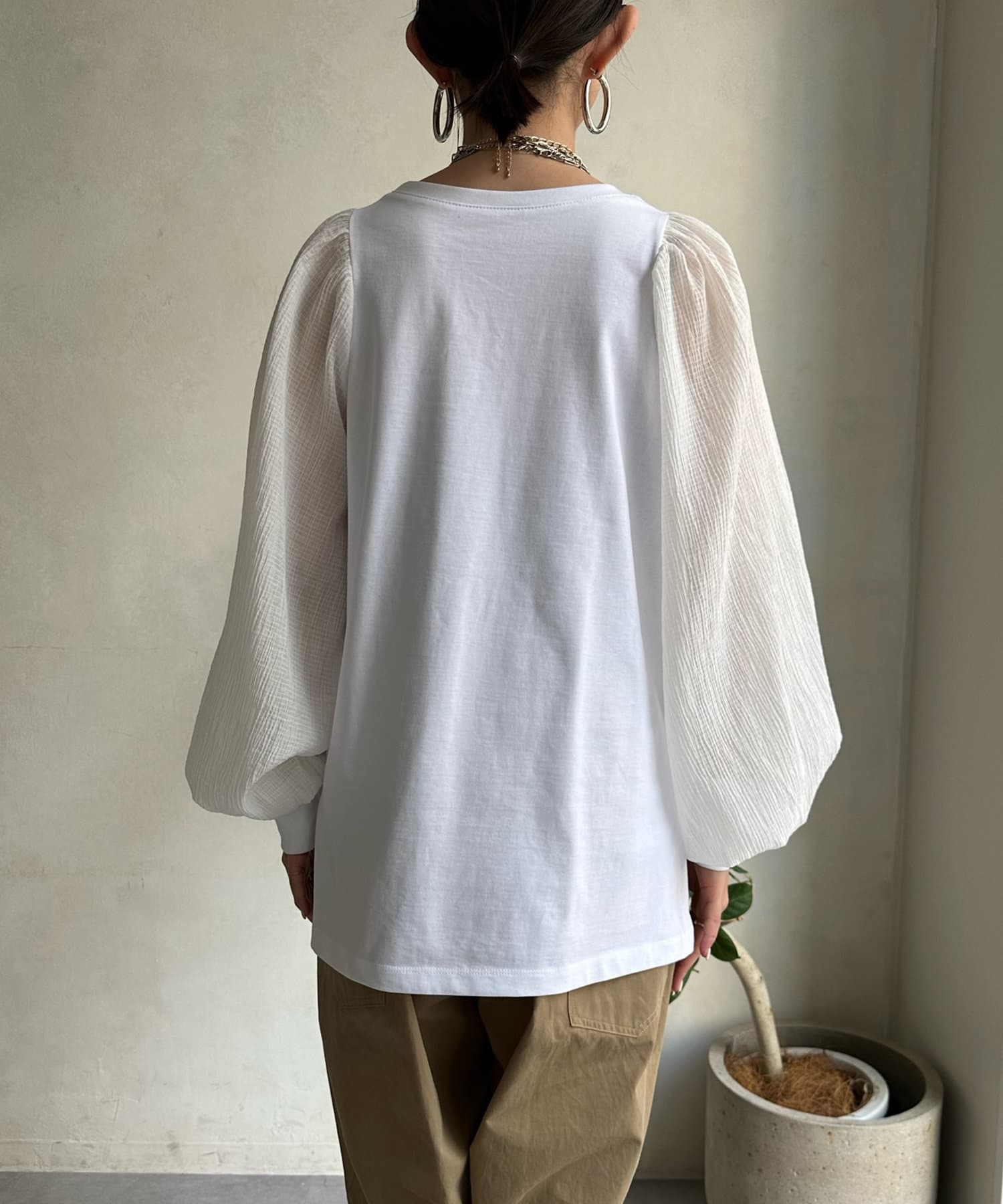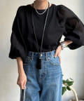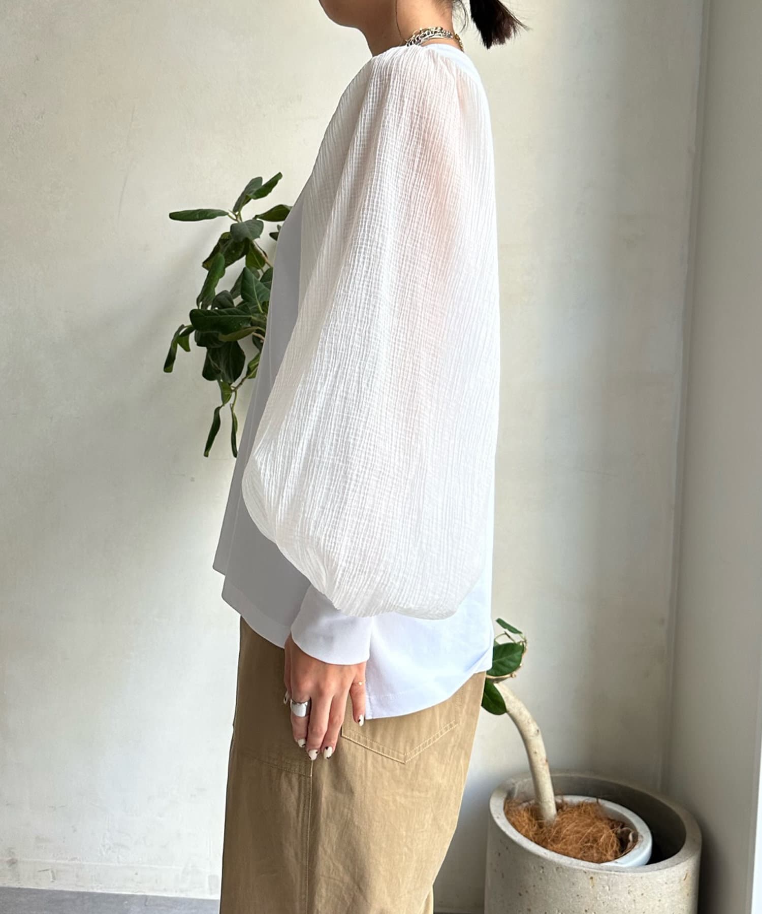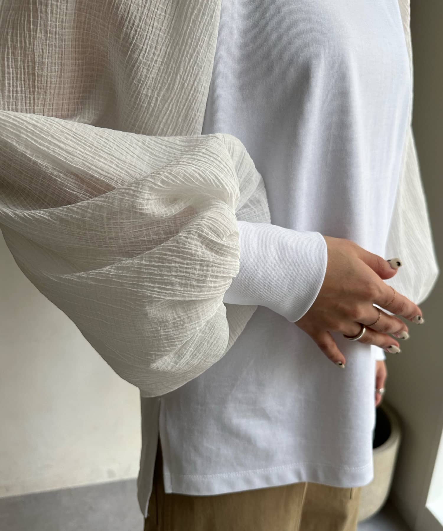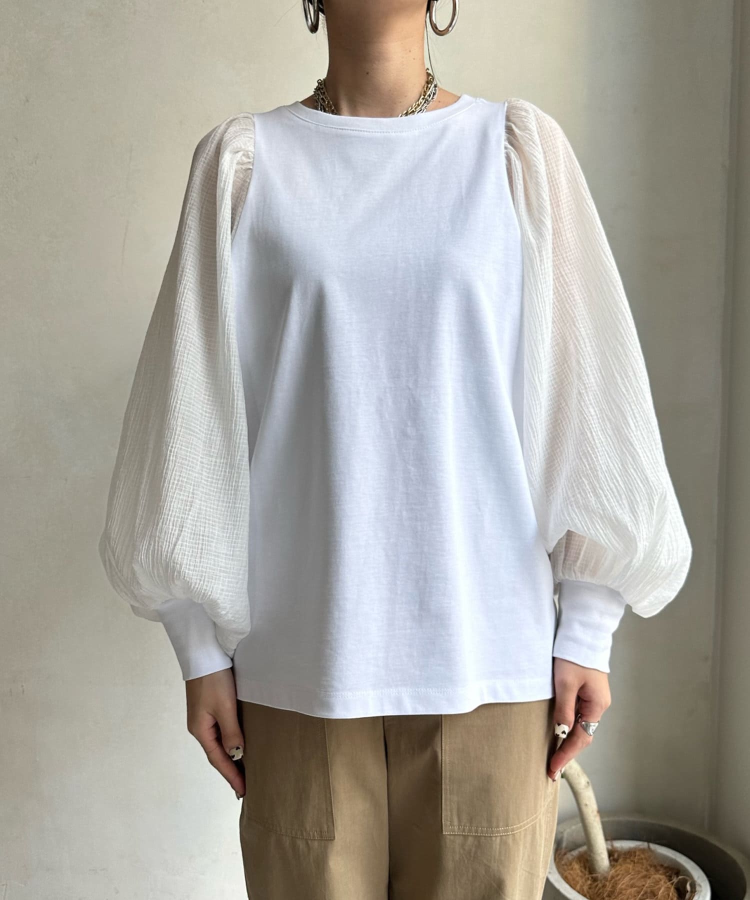 お袖をシアー素材に切り替え、ボリューム感もプラスした1枚。