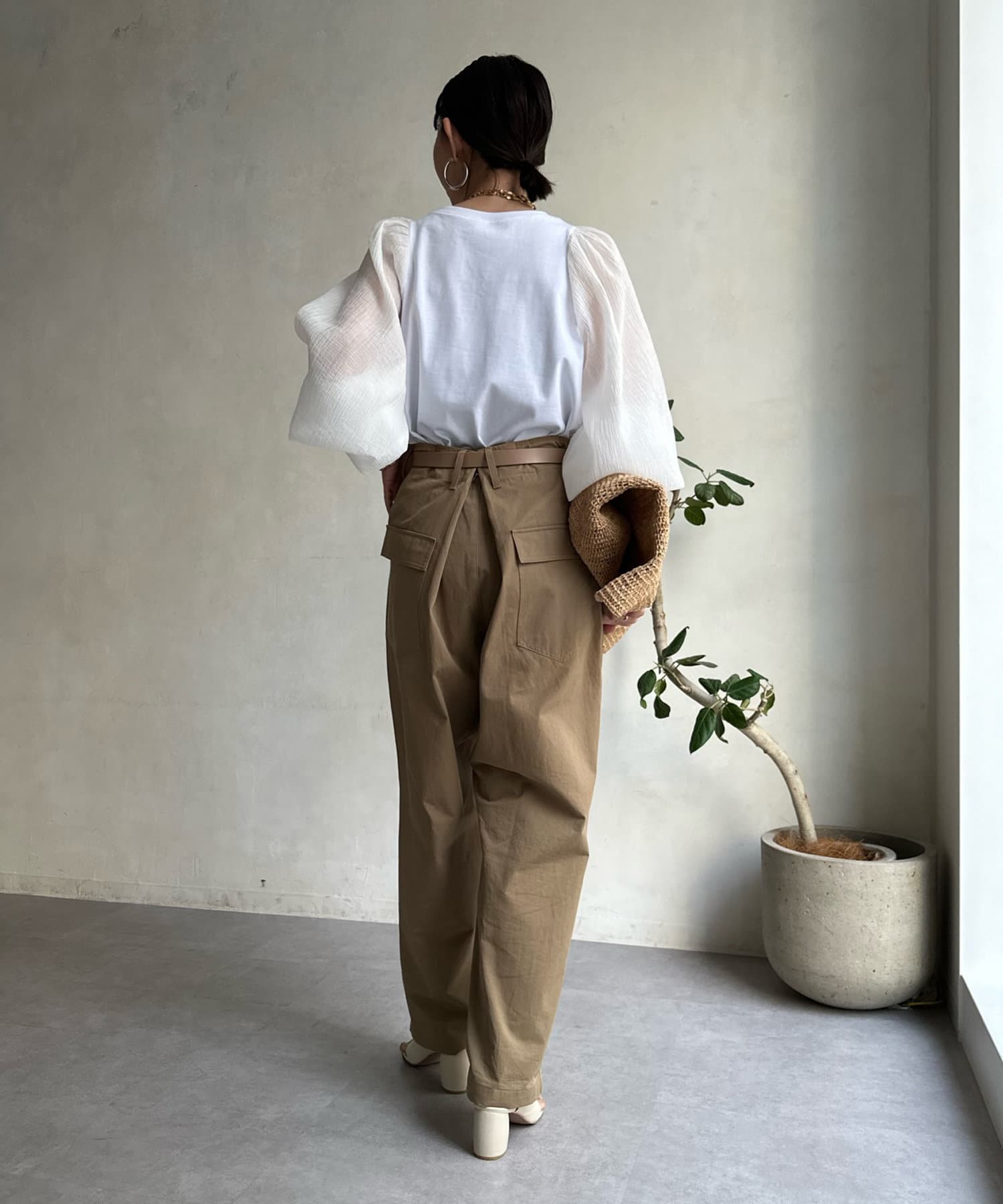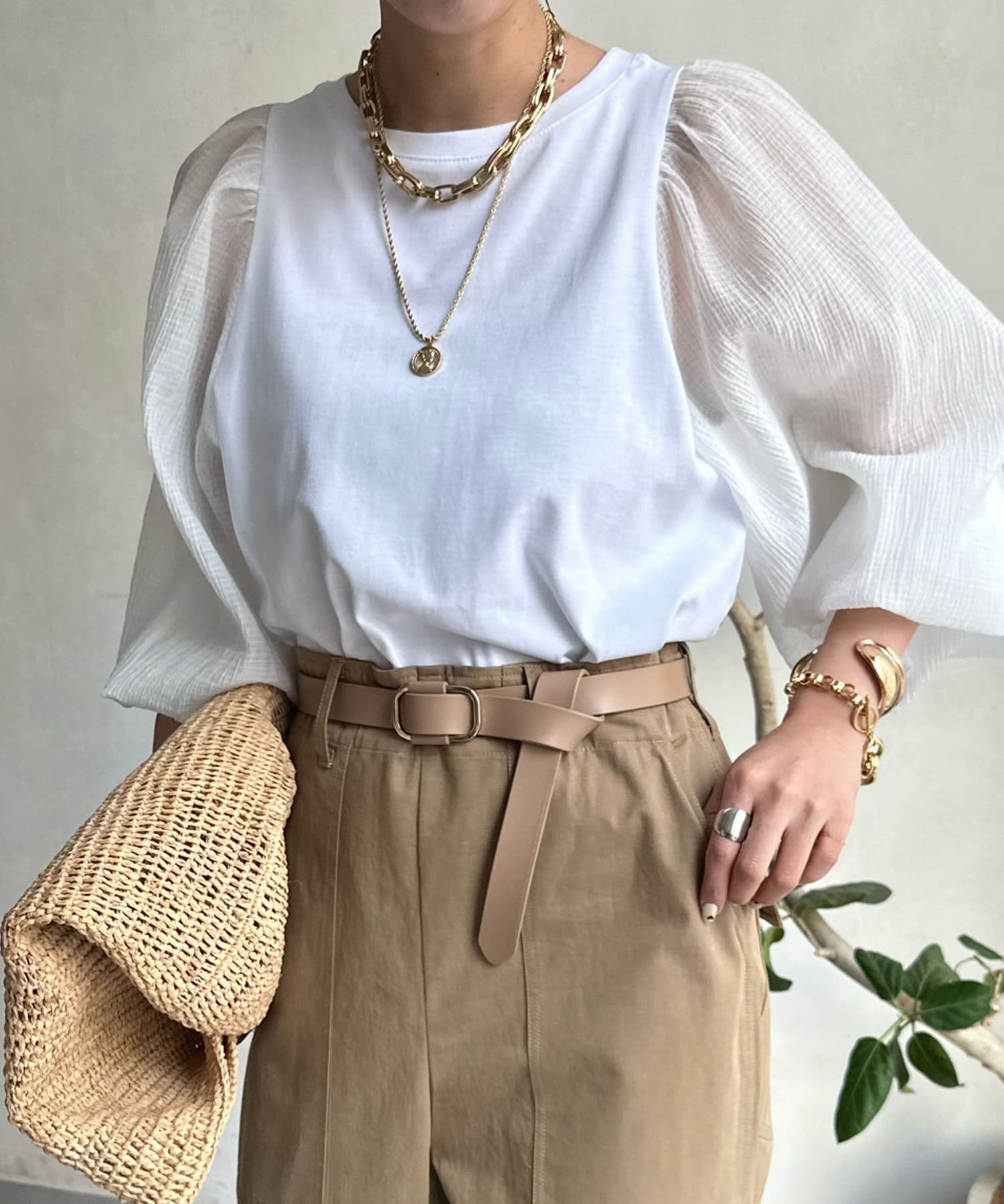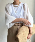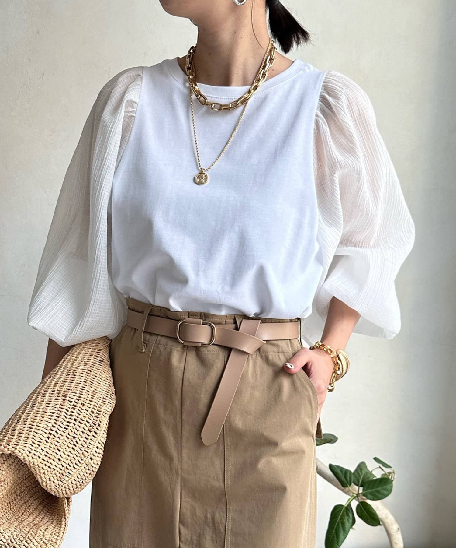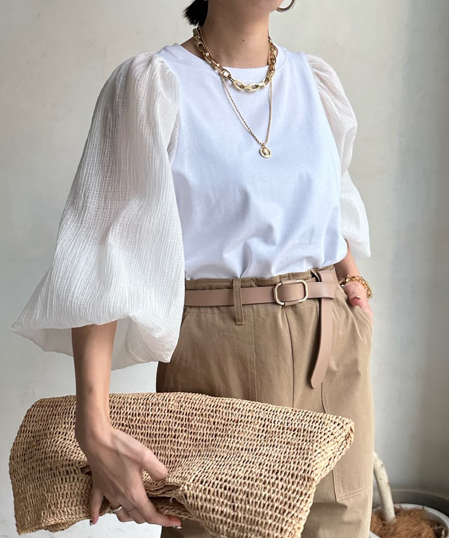 お袖をシアー素材に切り替え、ボリューム感もプラスした1枚。