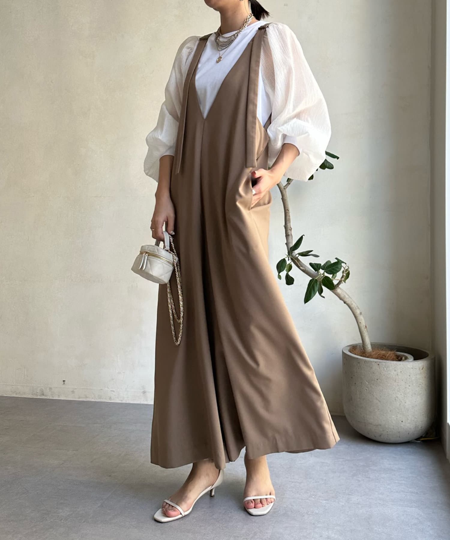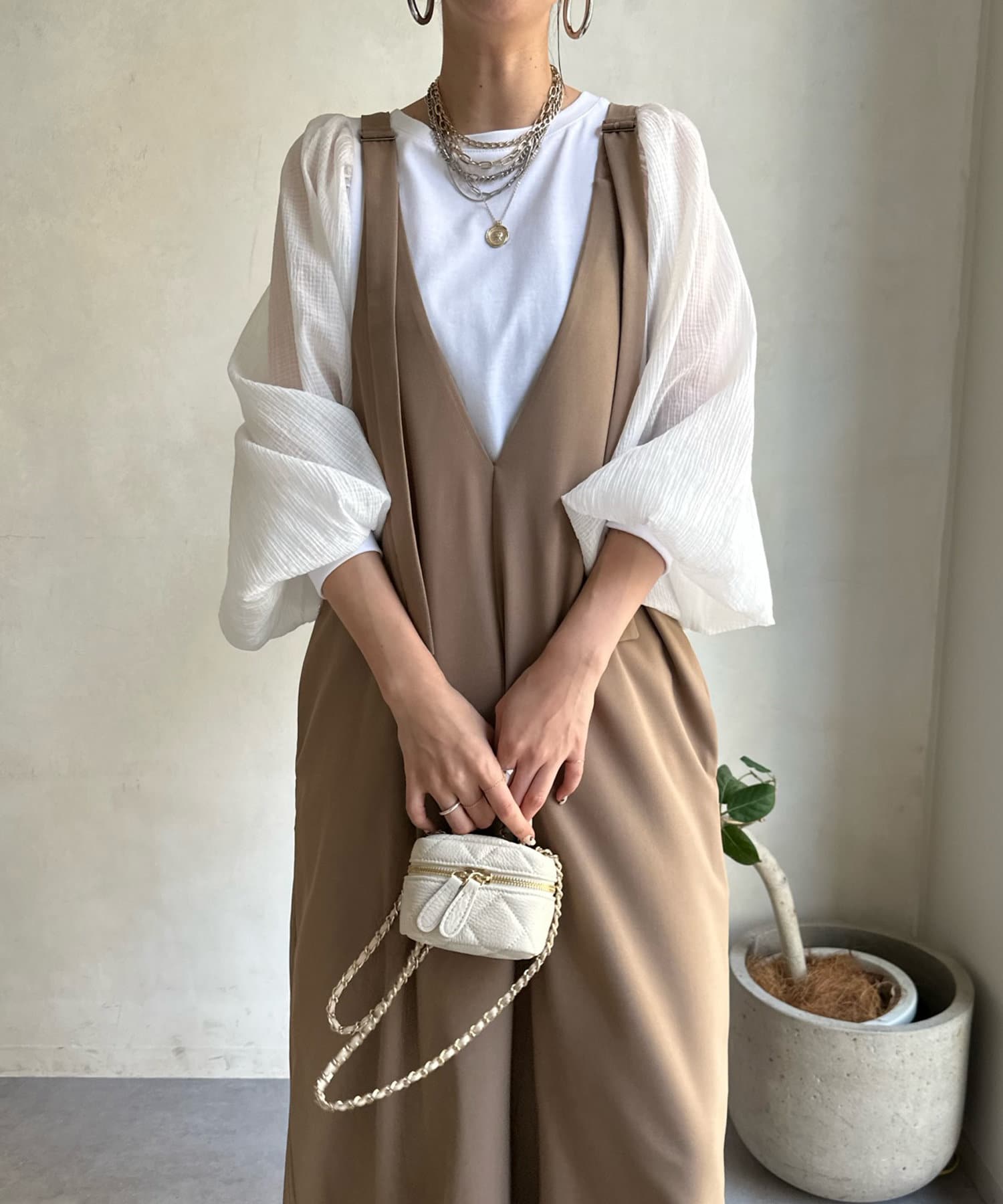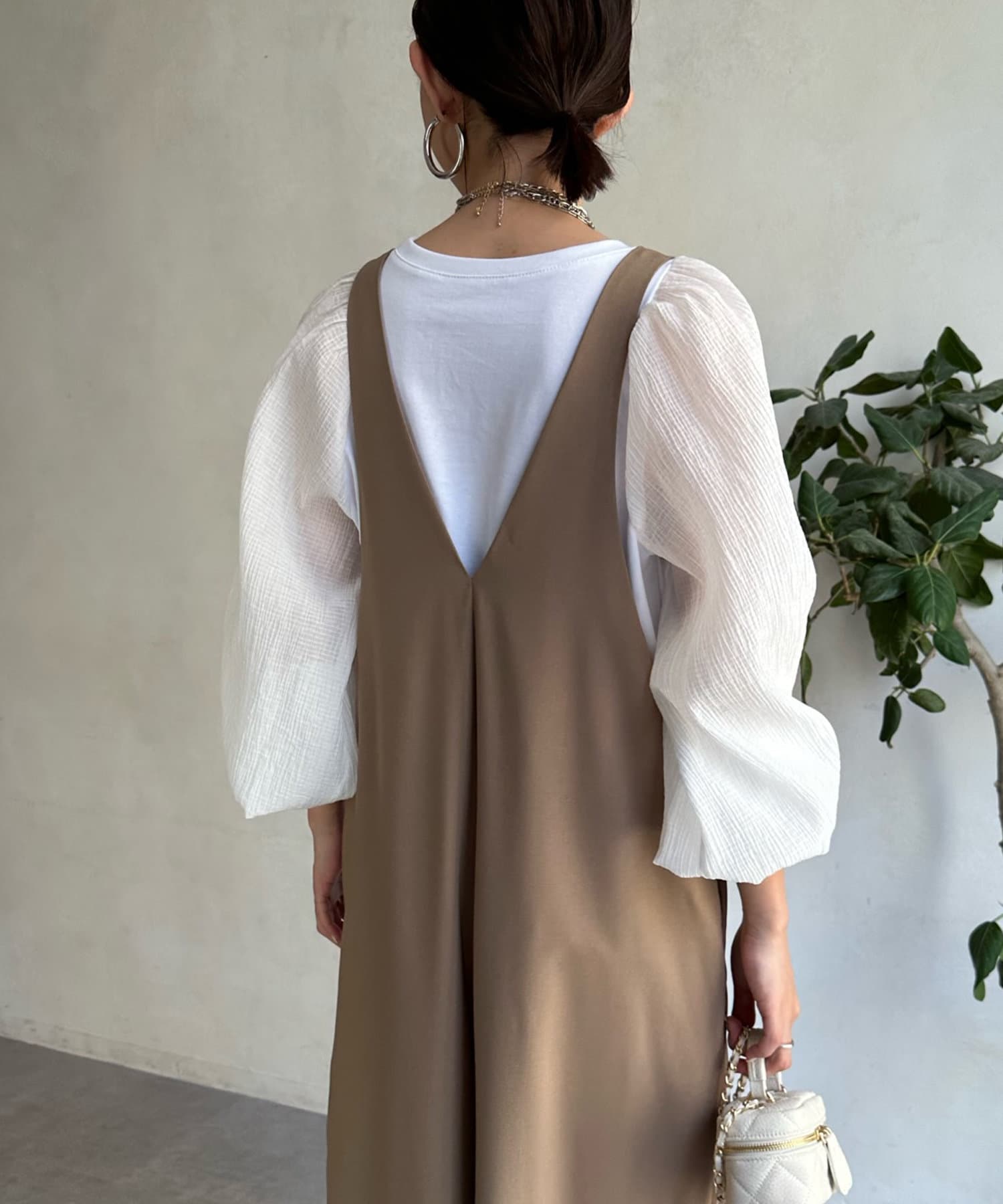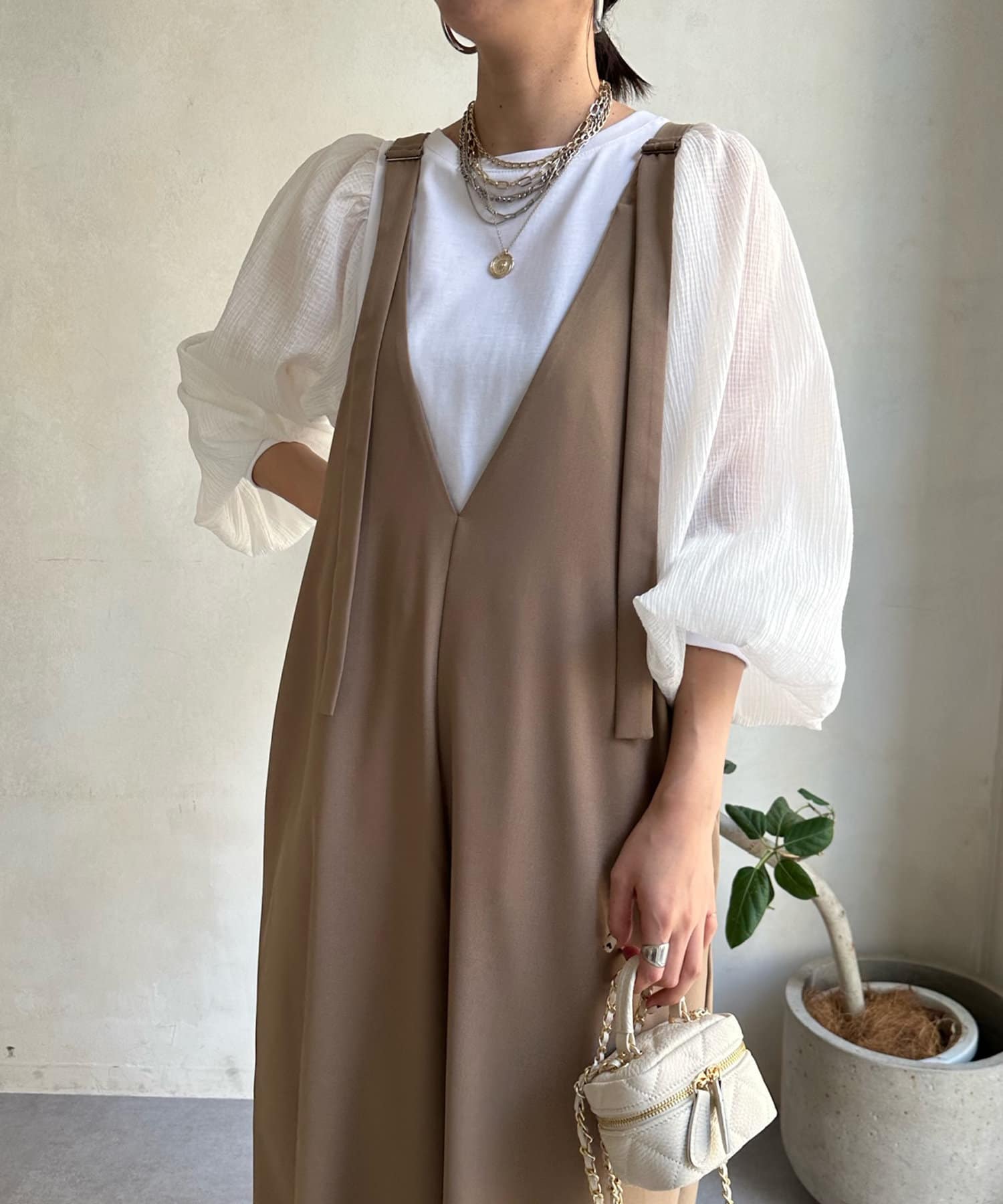 お袖をシアー素材に切り替え、ボリューム感もプラスした1枚。
