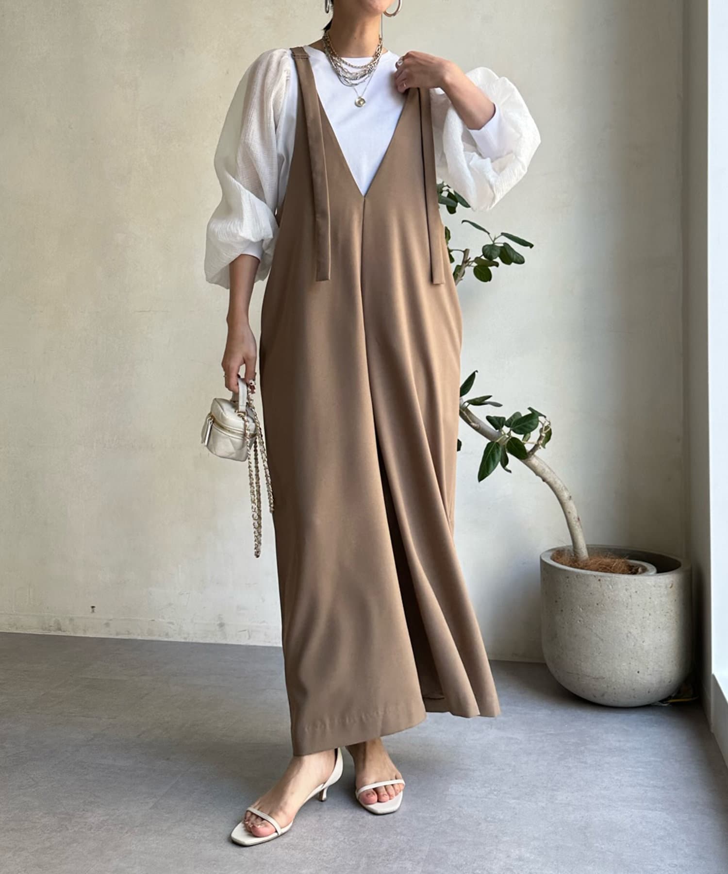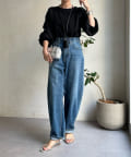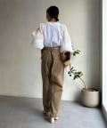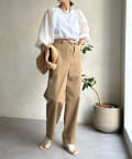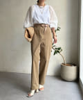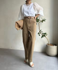 カジュアルなパンツと合わせて、MIXしたスタイリングが今らしい着こなしでマッチ!