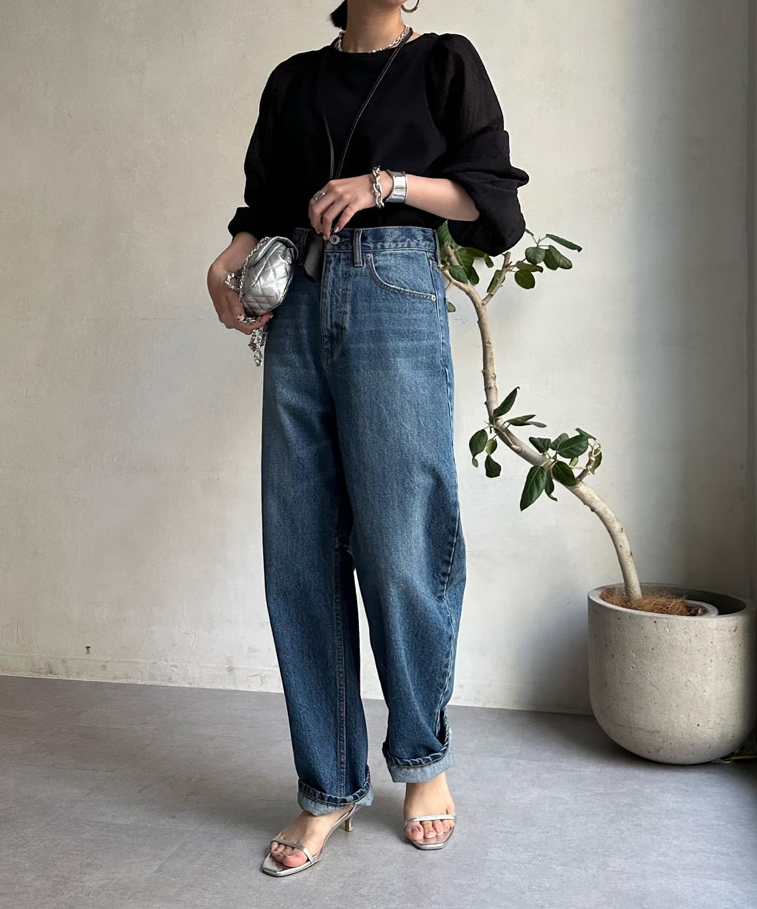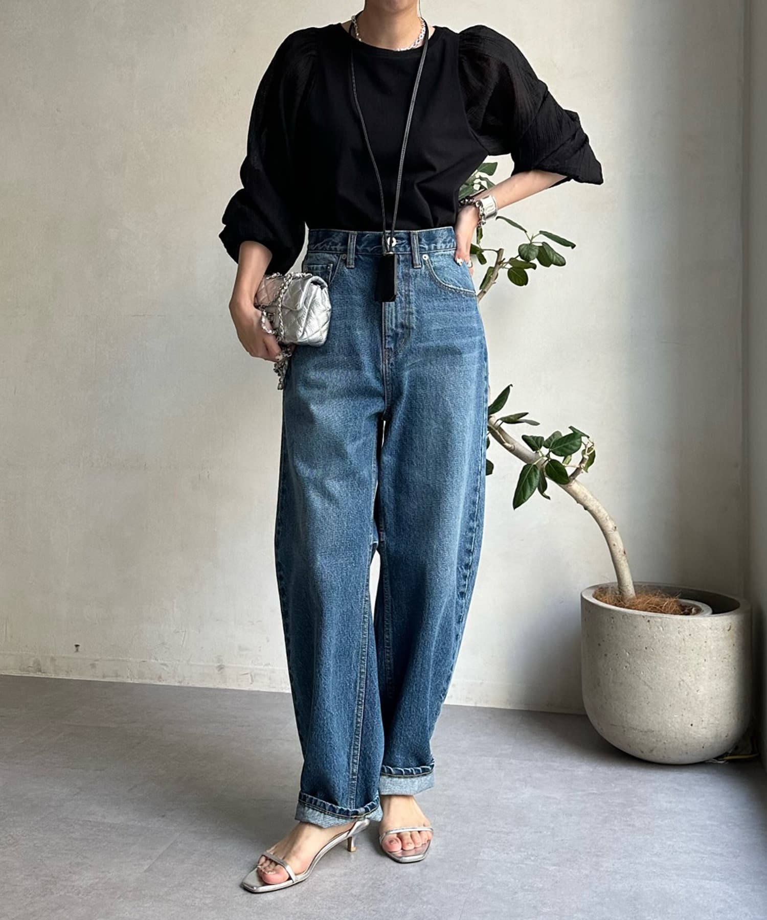 袖口はリブ素材に切り替えているため、お袖をきゅっとプッシュアップして、ボリューム感をアピールした着こなしがおすすめ。