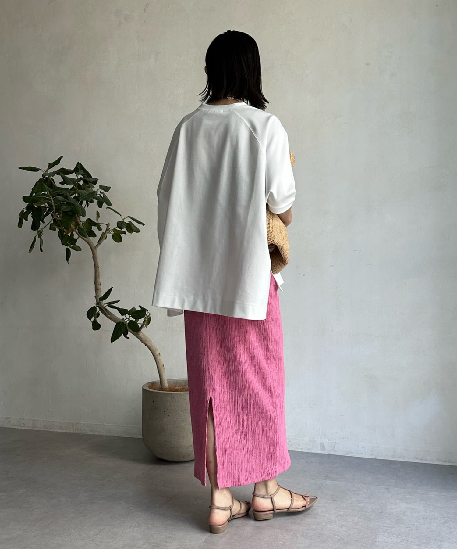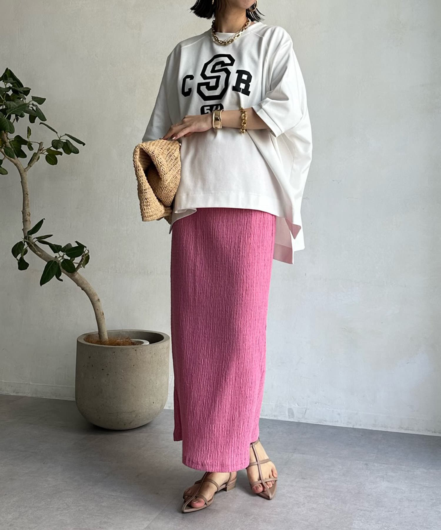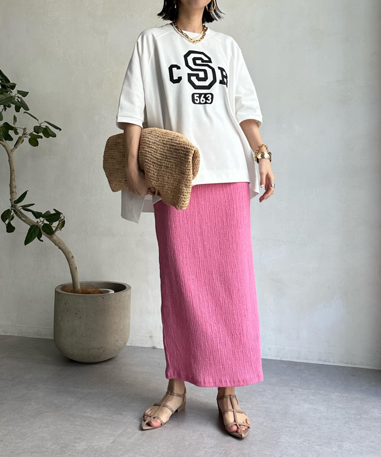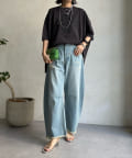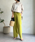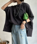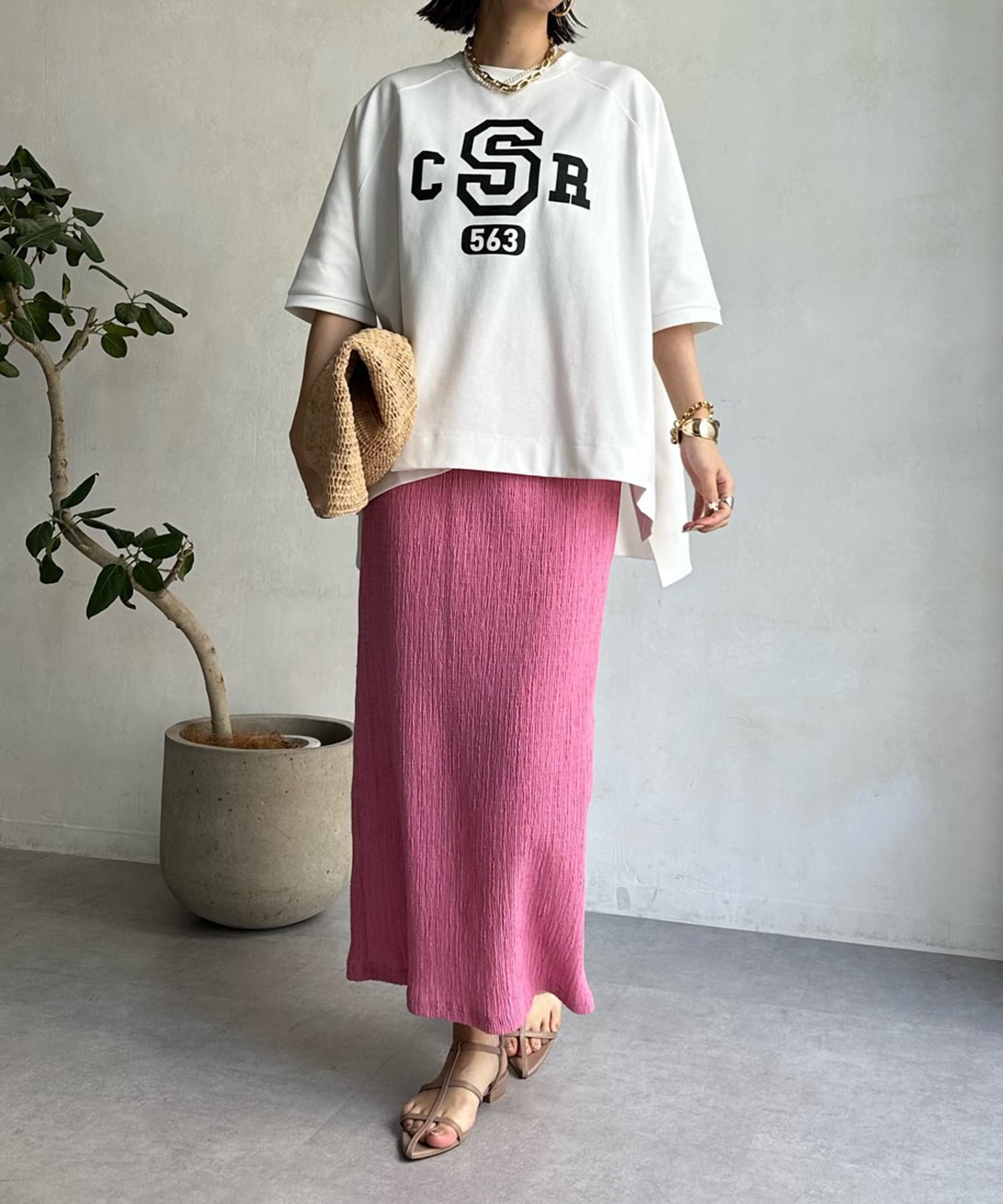スカートからパンツまで幅広いアイテムとマッチ。フロントのみボトムインしたスタイルもおすすめですよ◎