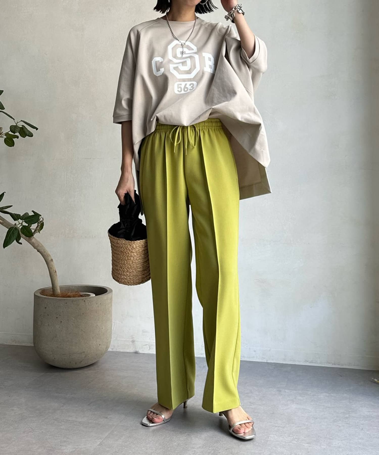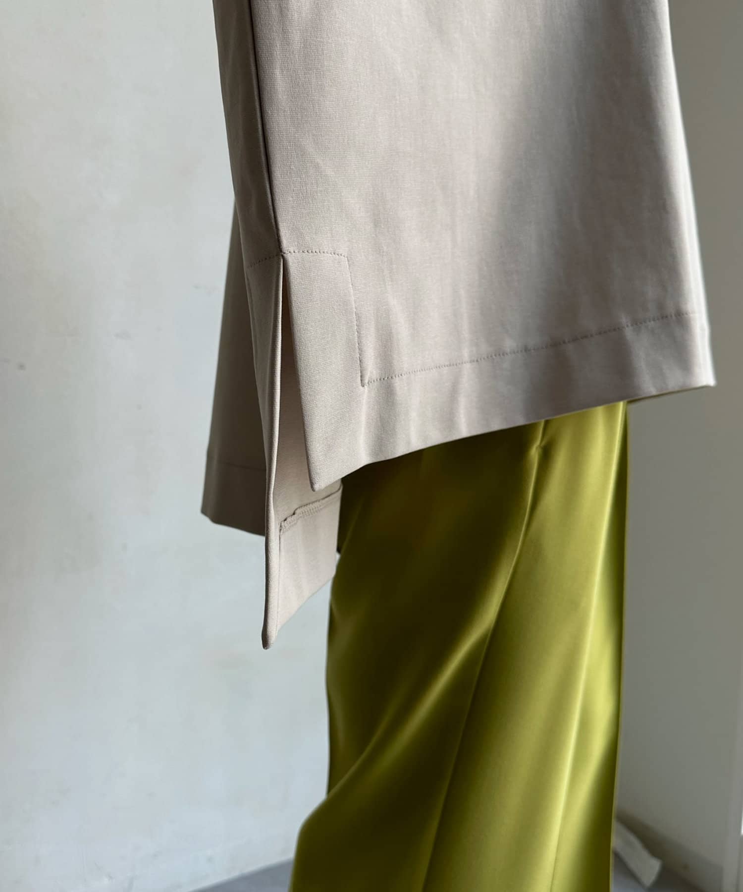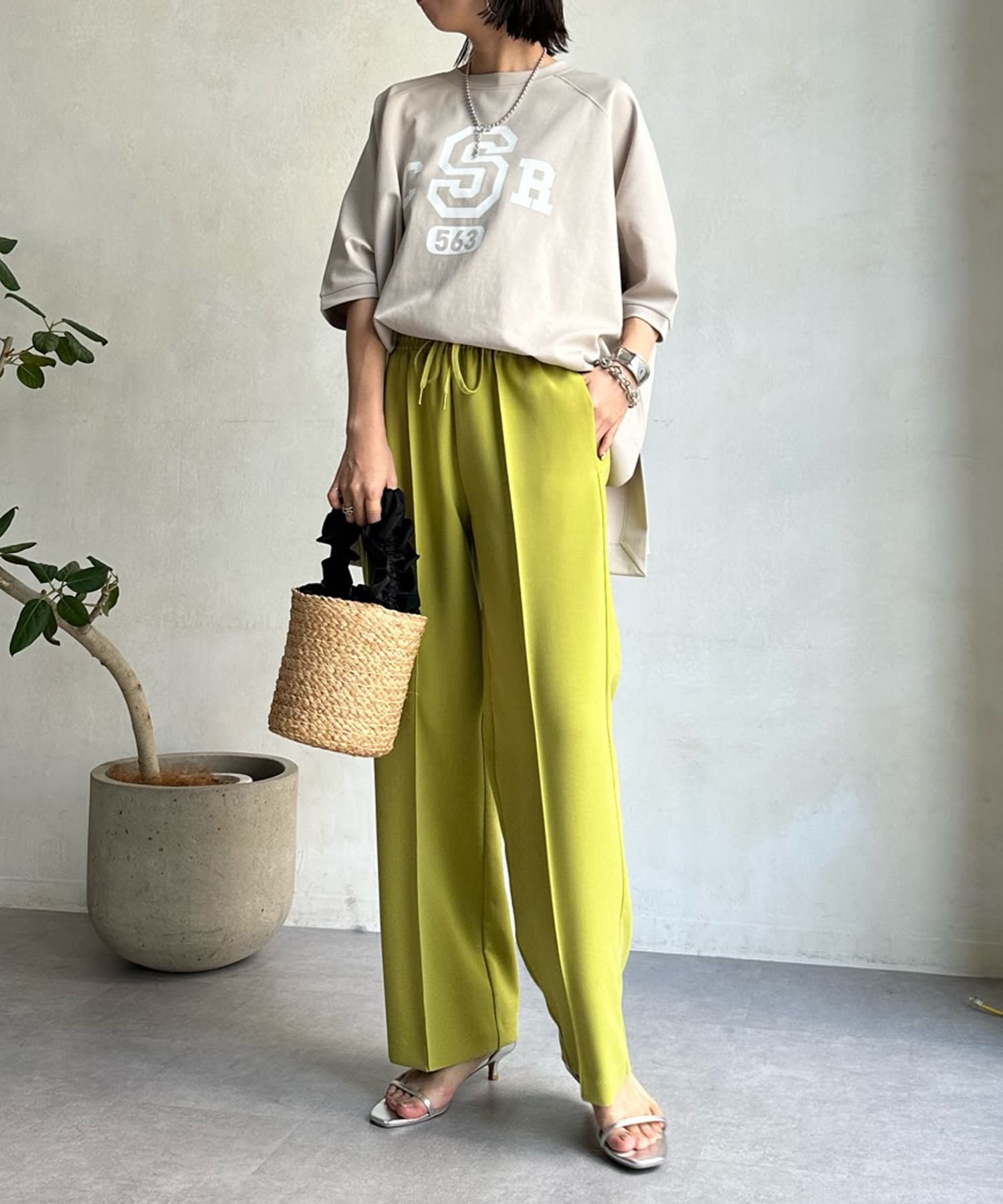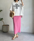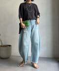 スカートからパンツまで幅広いアイテムとマッチ。フロントのみボトムインしたスタイルもおすすめですよ◎