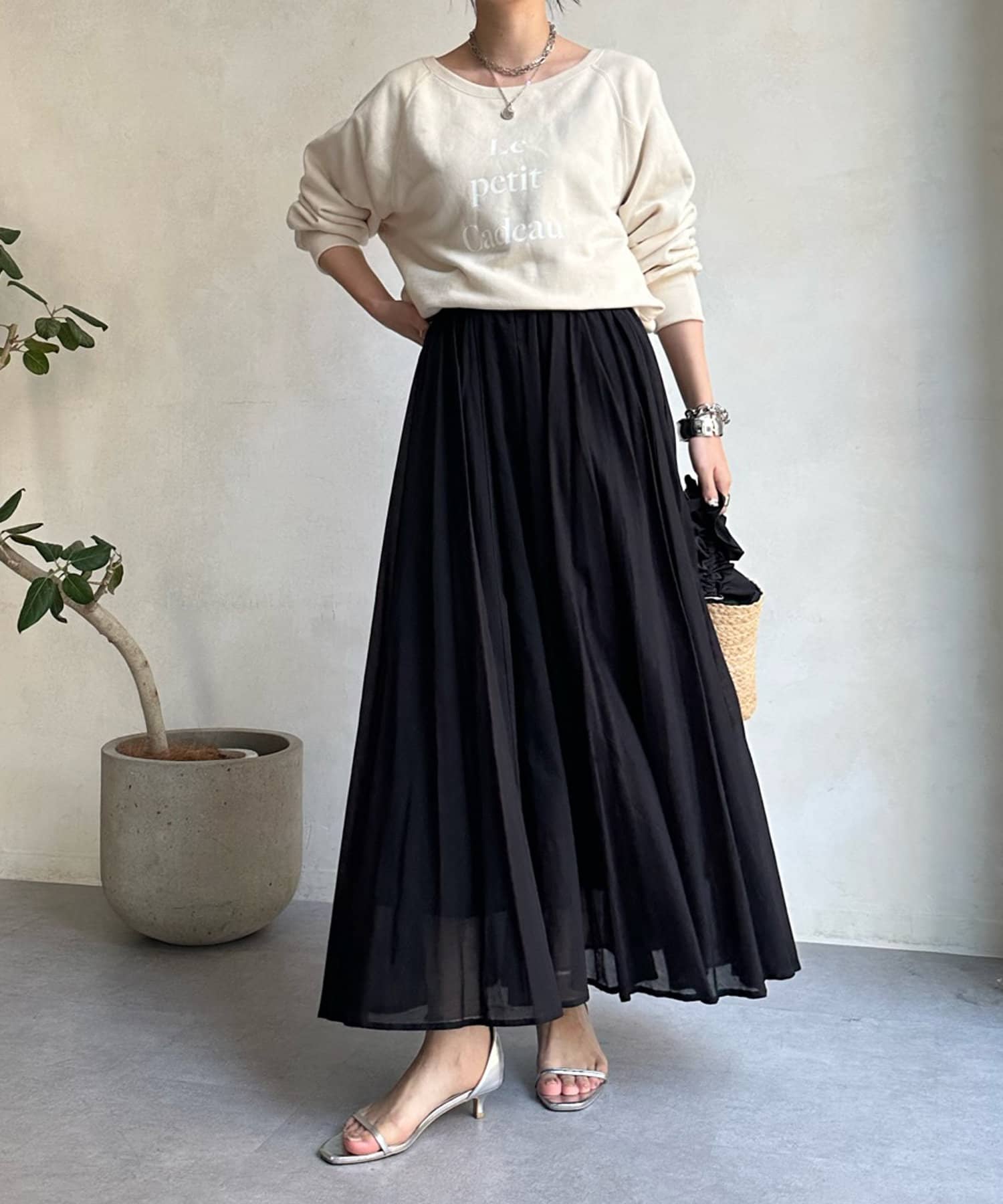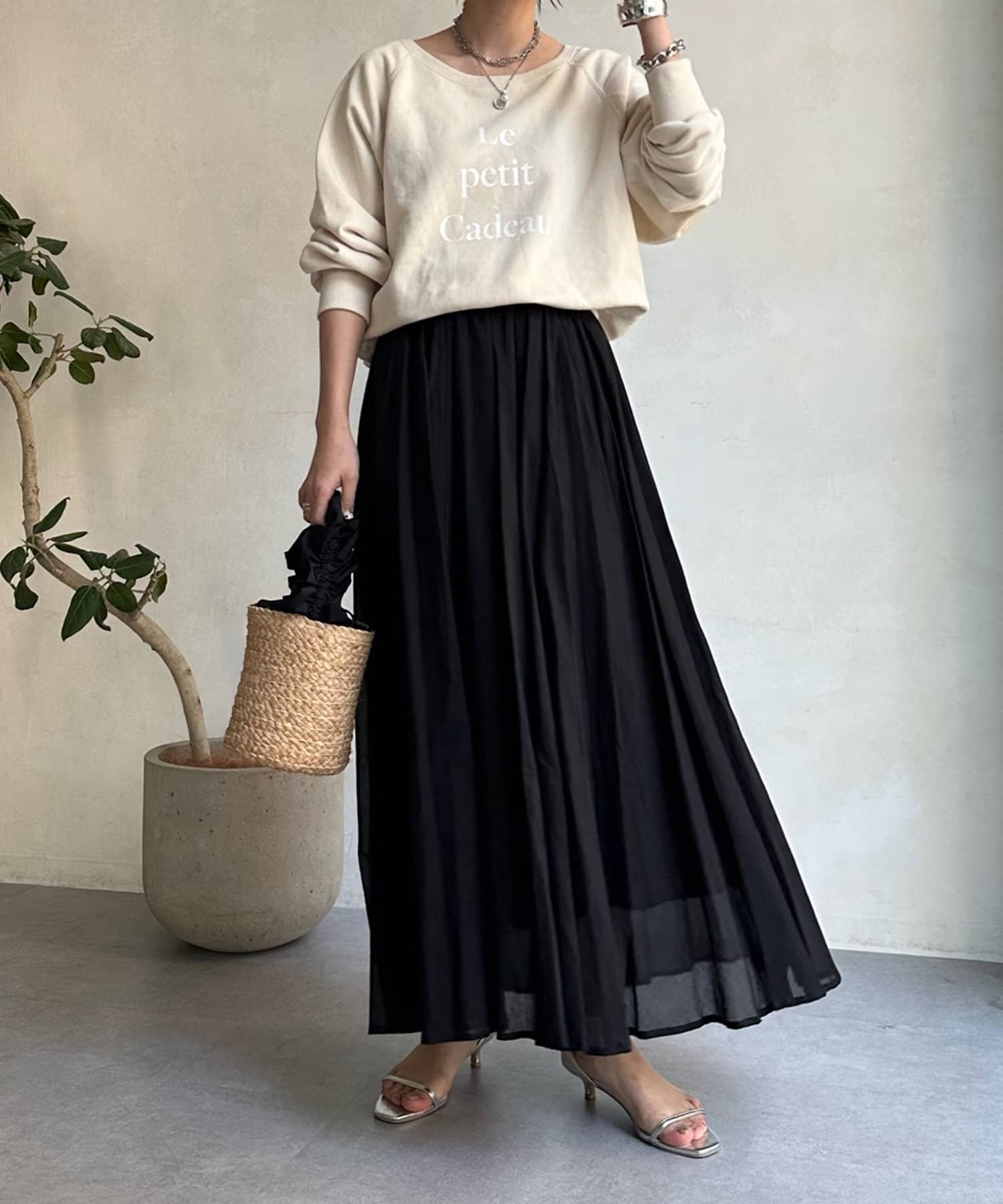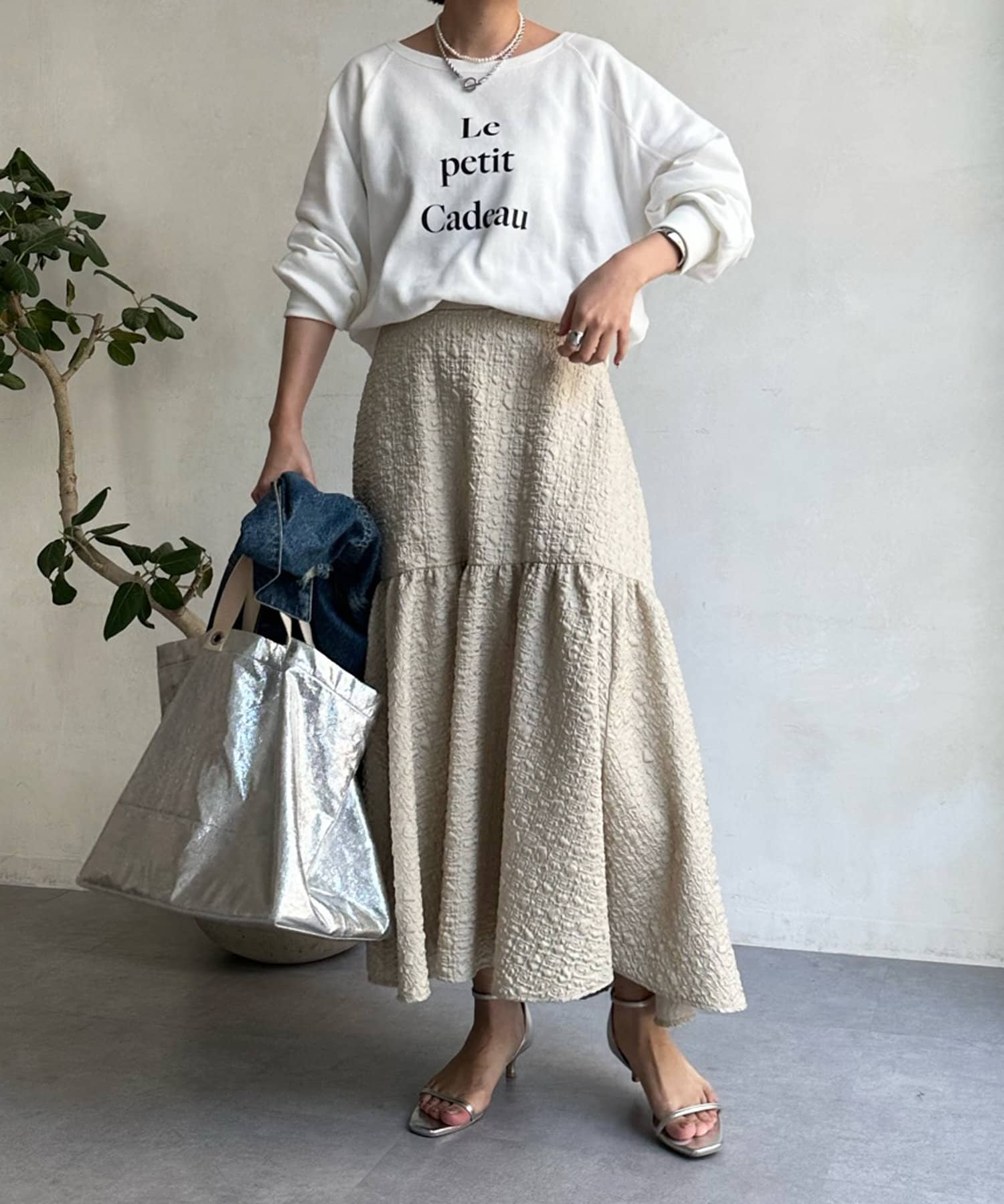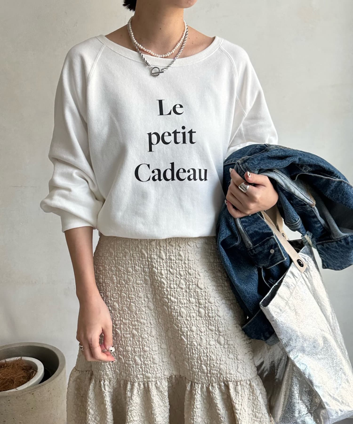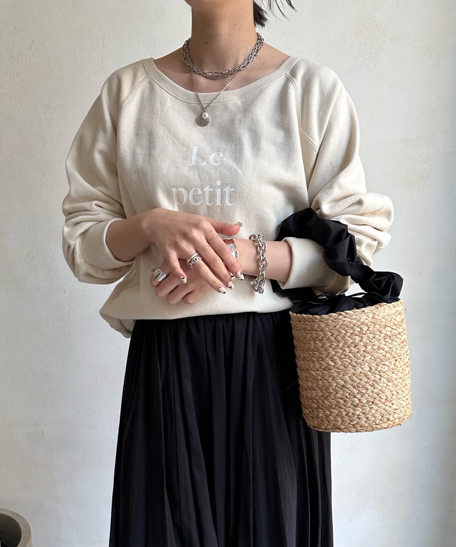ショート丈だけど短すぎない絶妙な丈感と、カジュアルになりすぎないロゴのデザインが大人らしく着られるポイント。