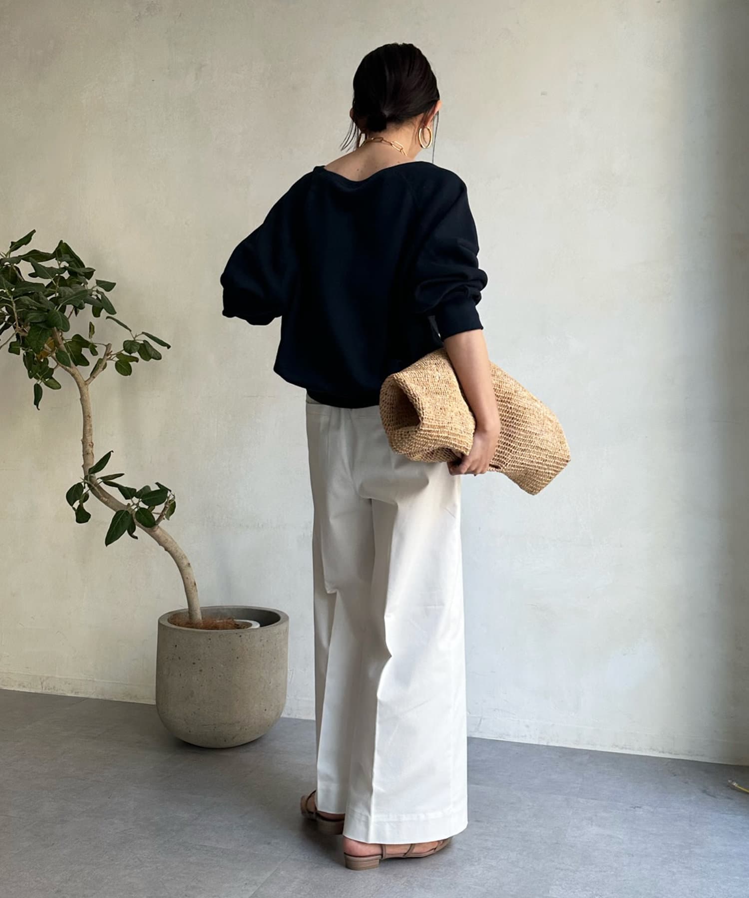 シンプルなデザインですが、お袖部分の切り替えデザインや肩回りをすっきりと見せるラグランスリーブなど、さり気ないデザイン性のある、こだわりの詰まった1着です。