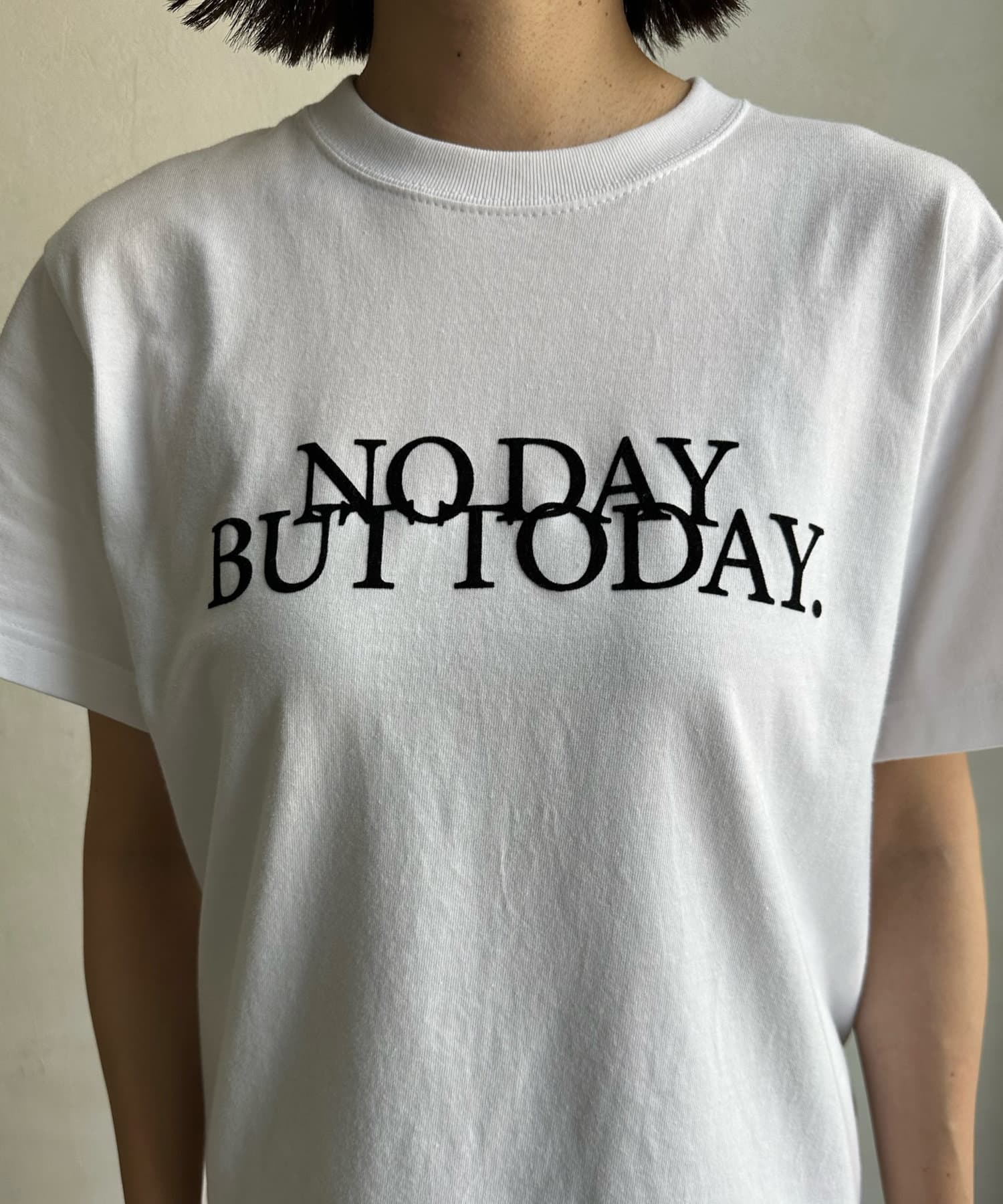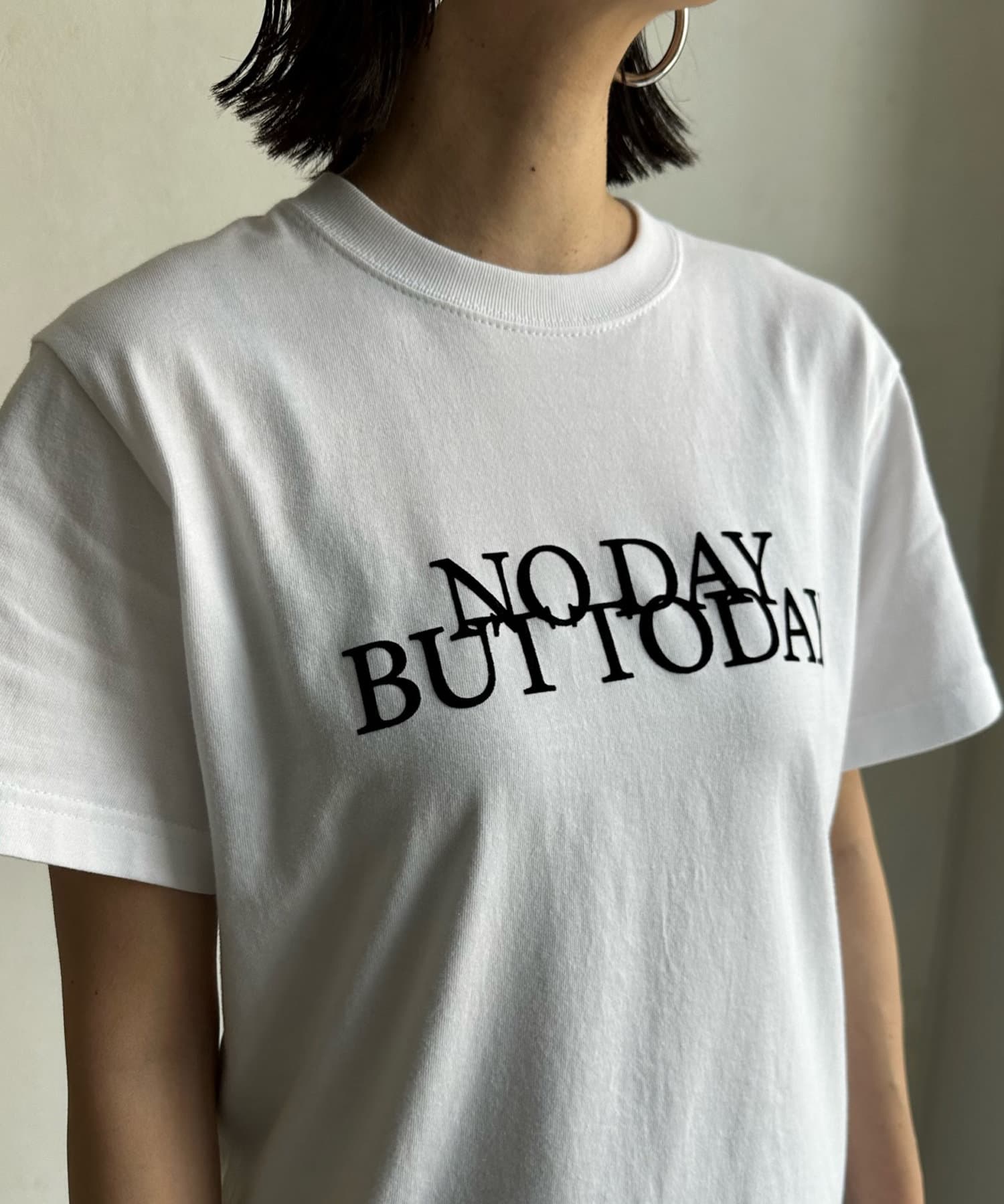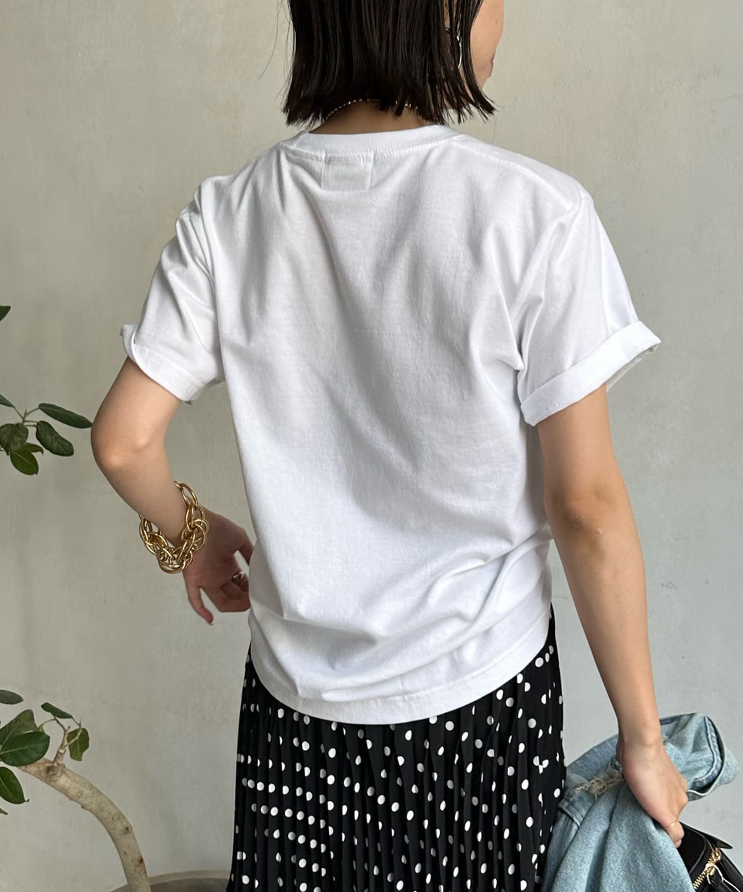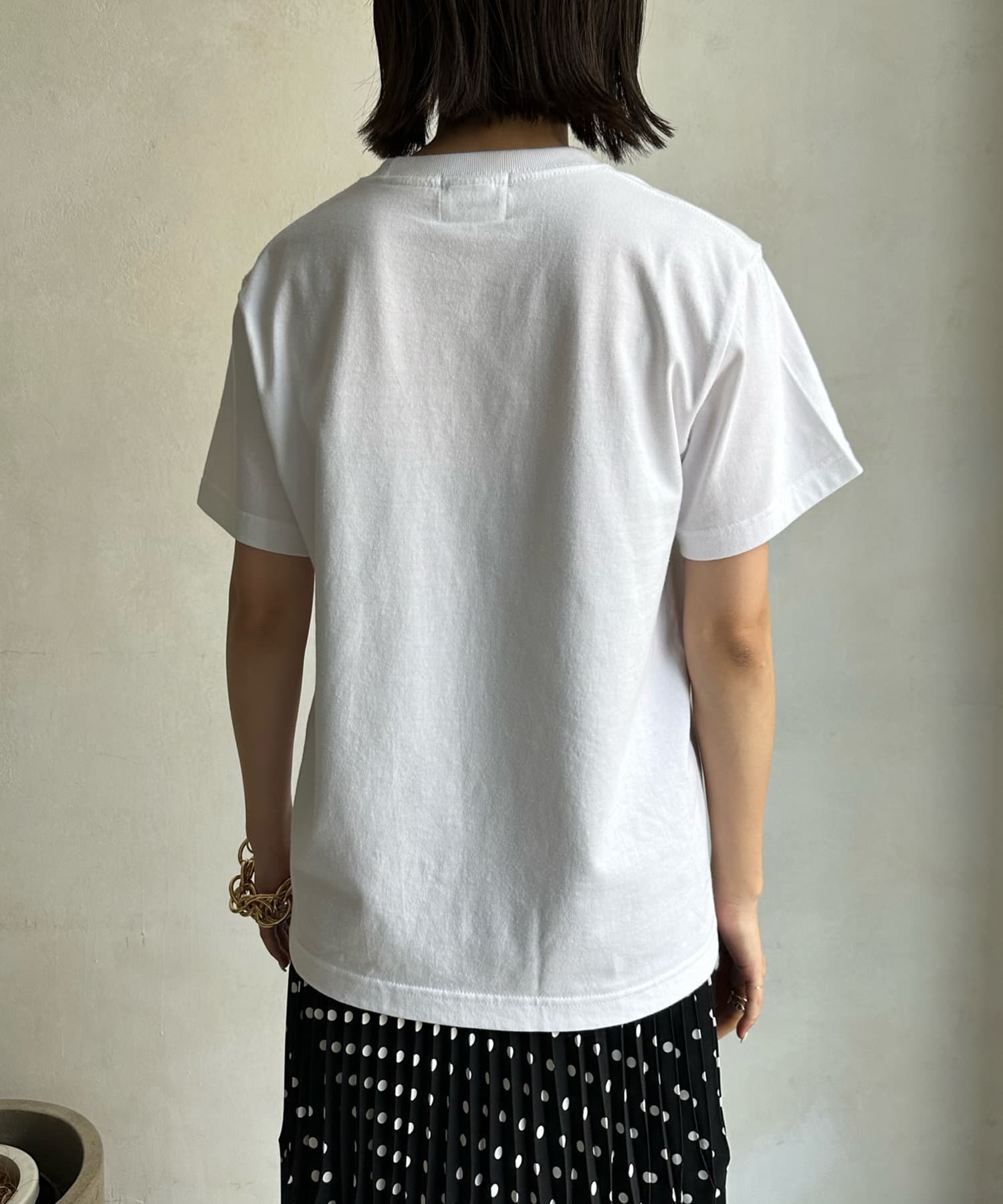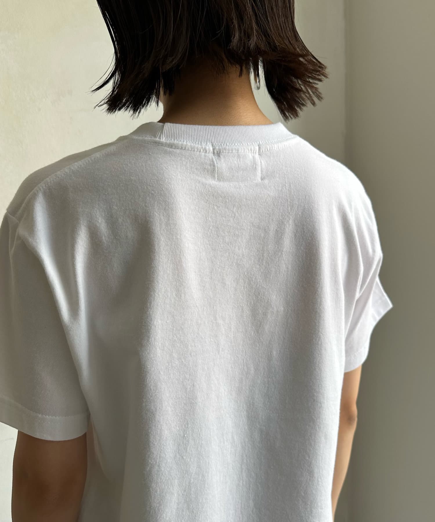 表面感のあるフロッキーロゴがアクセントのシンプルTシャツ。