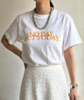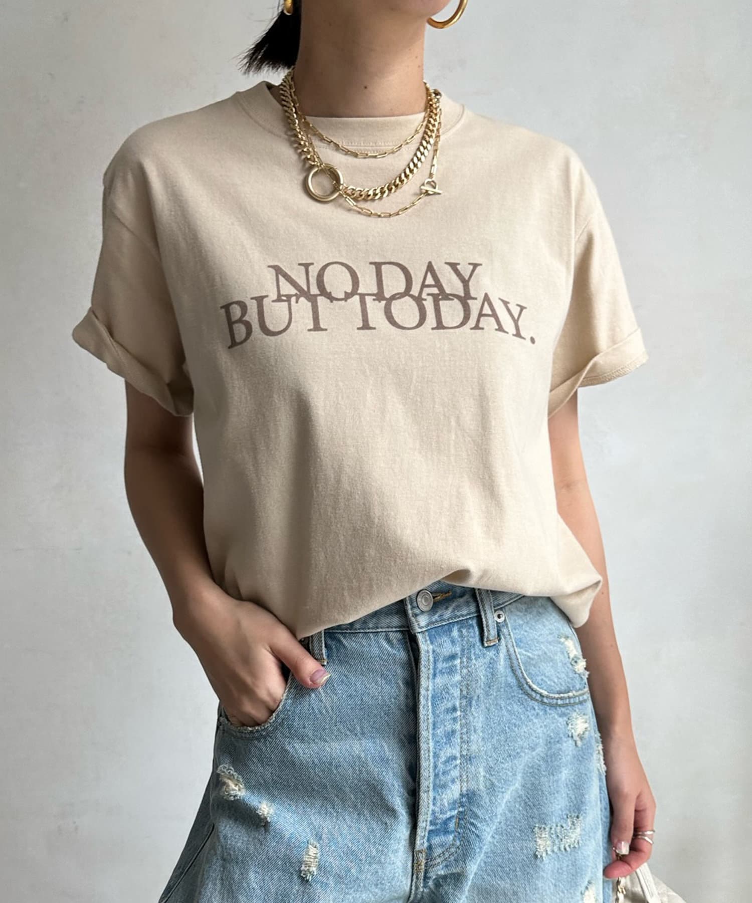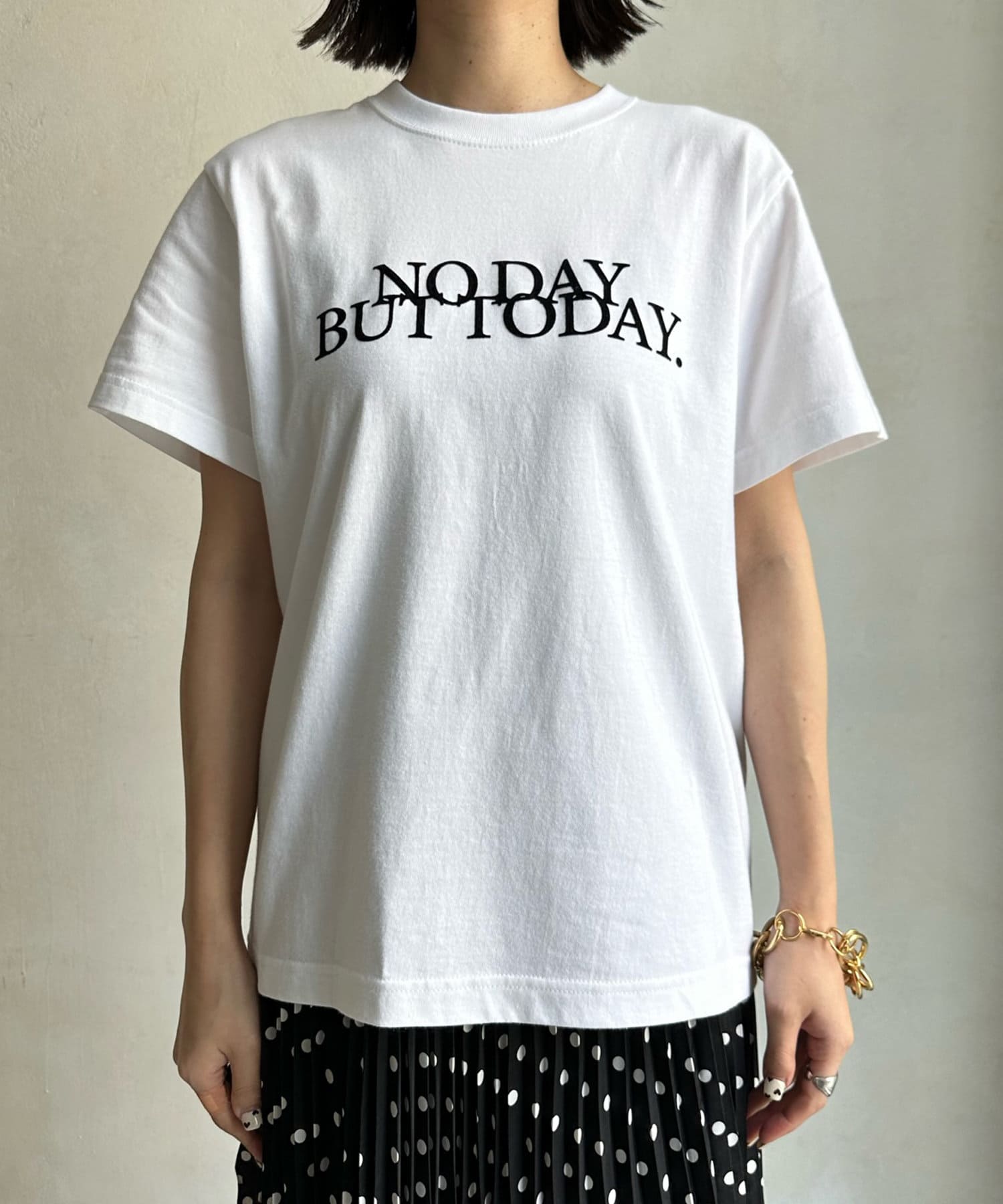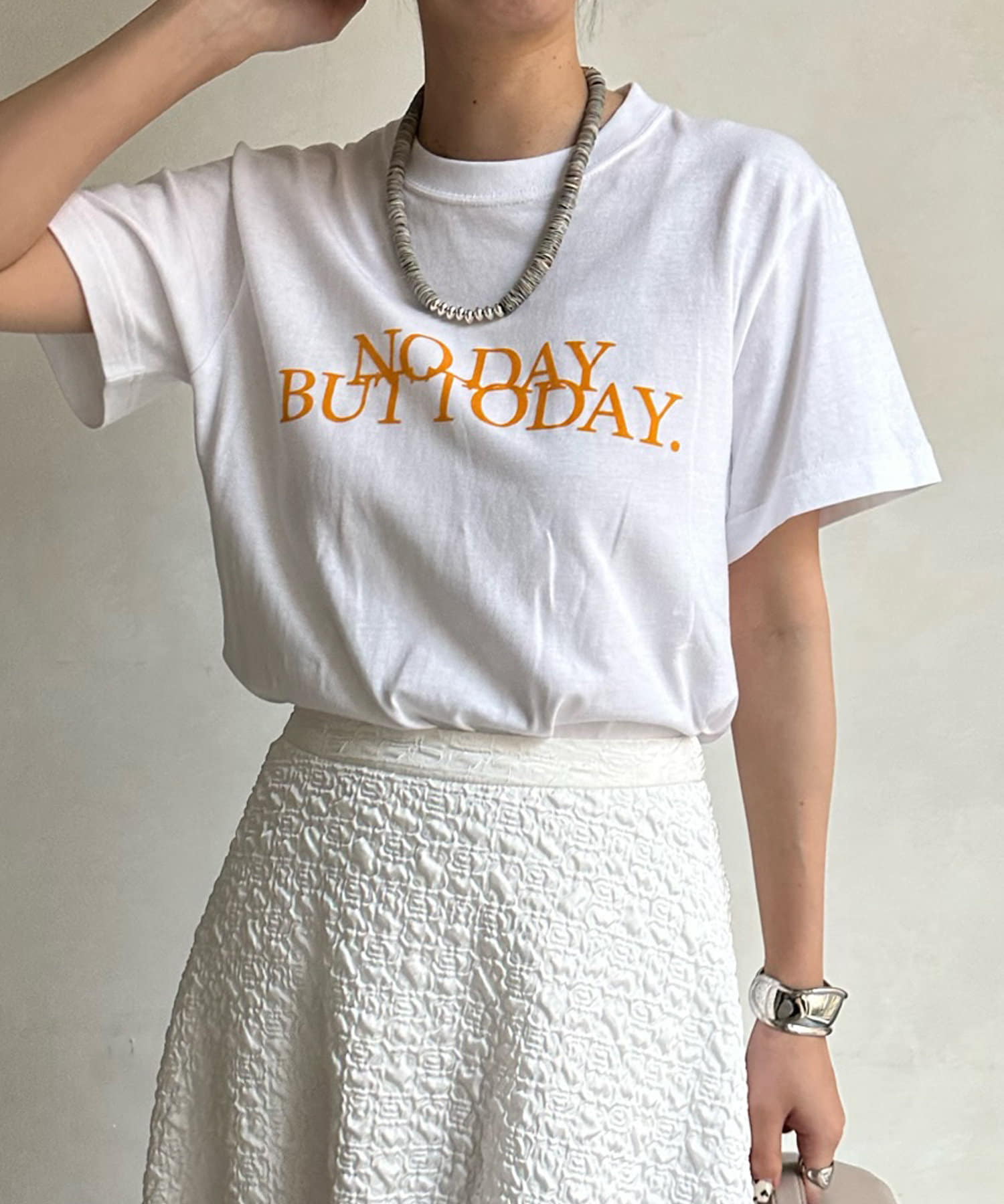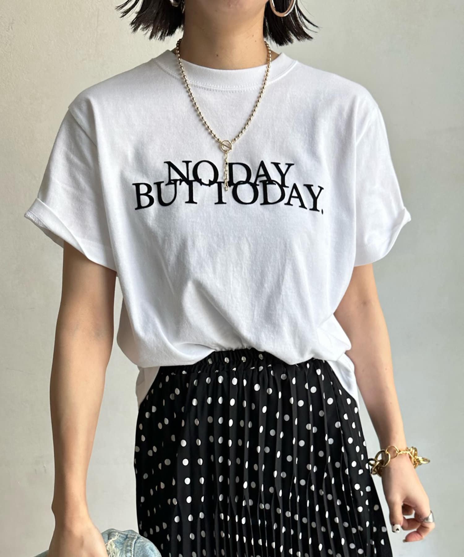表面感のあるフロッキーロゴがアクセントのシンプルTシャツ。