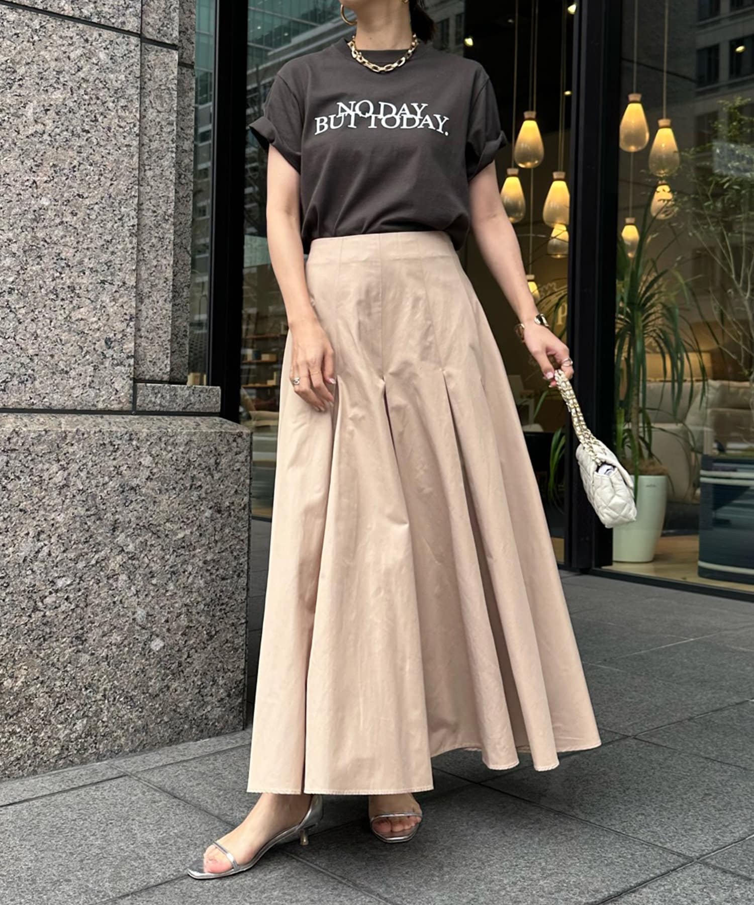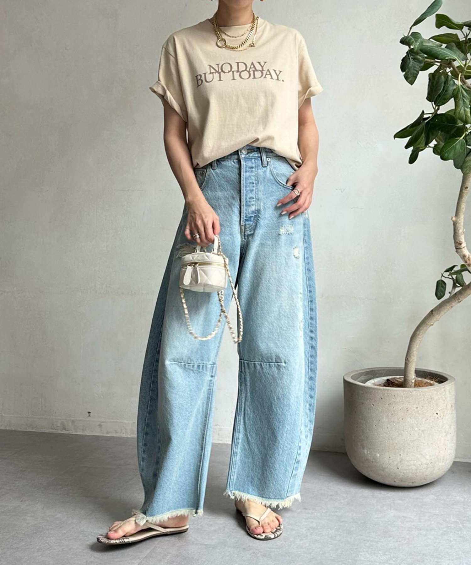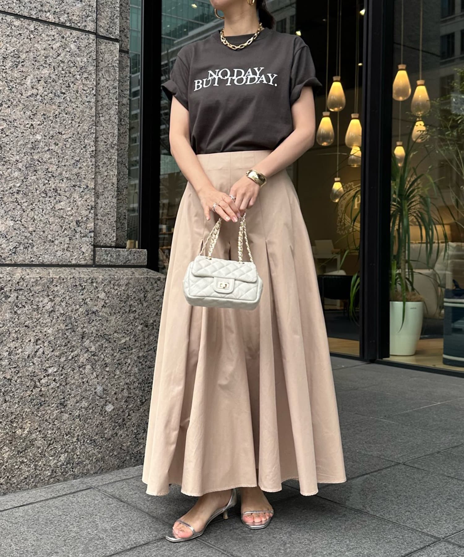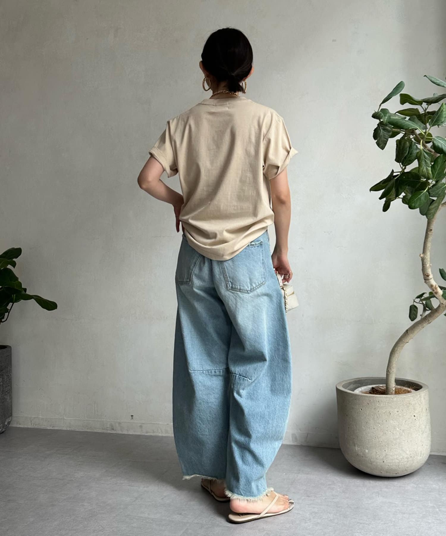 主張が強すぎないシンプルなロゴがカジュアルになり過ぎず、大人なスタイリングにもマッチして着ていただけます。