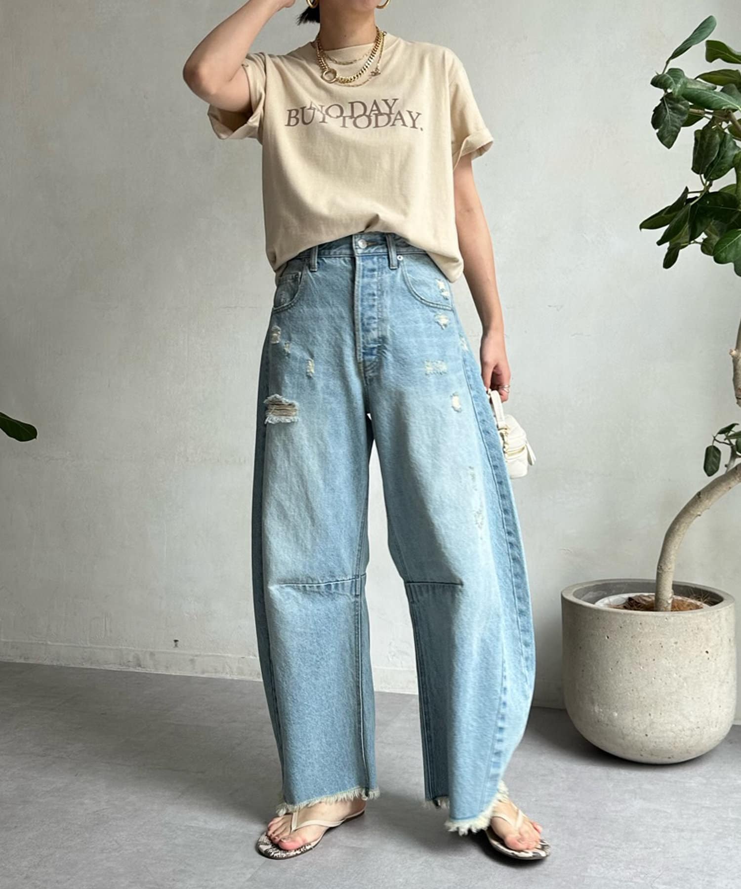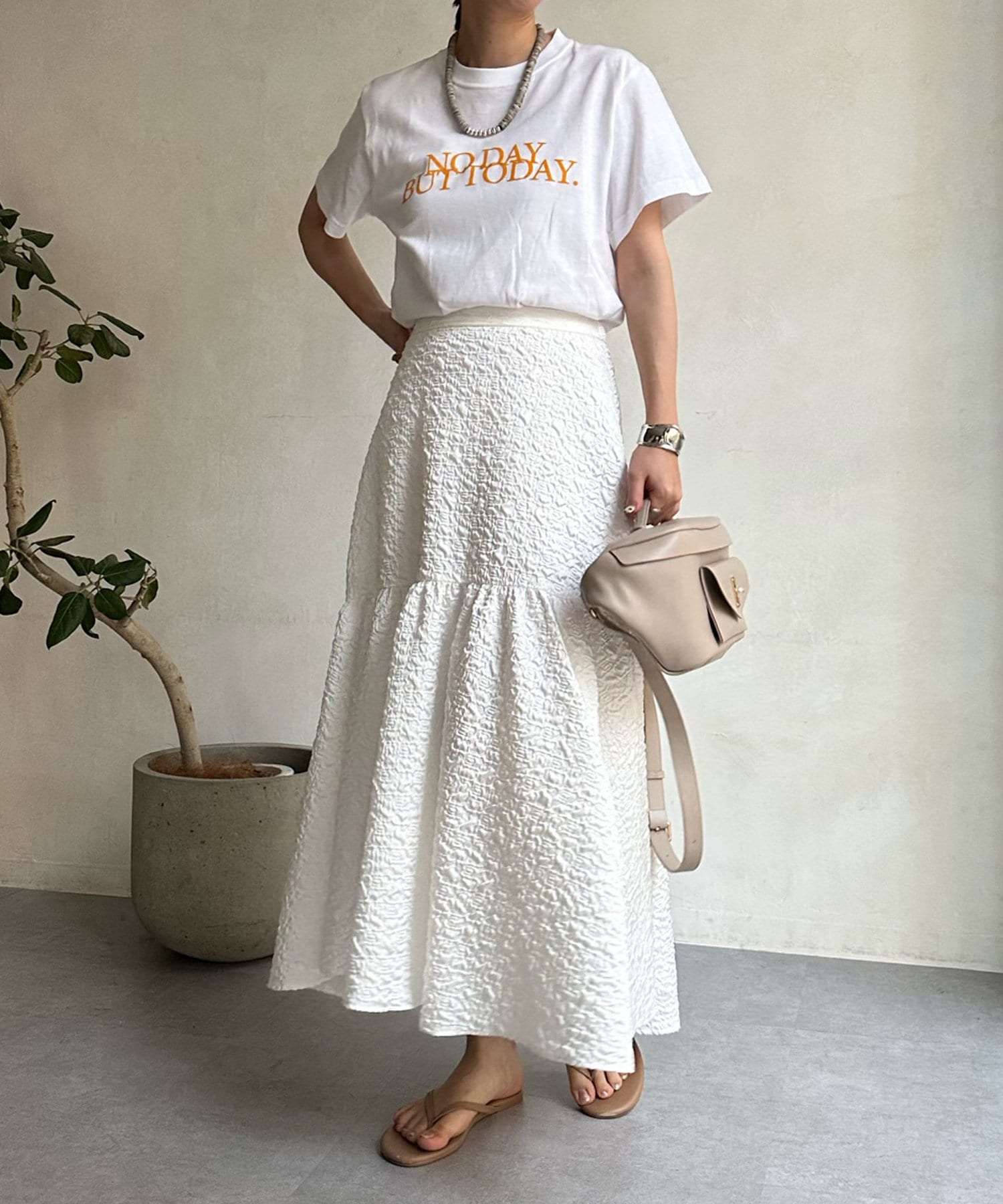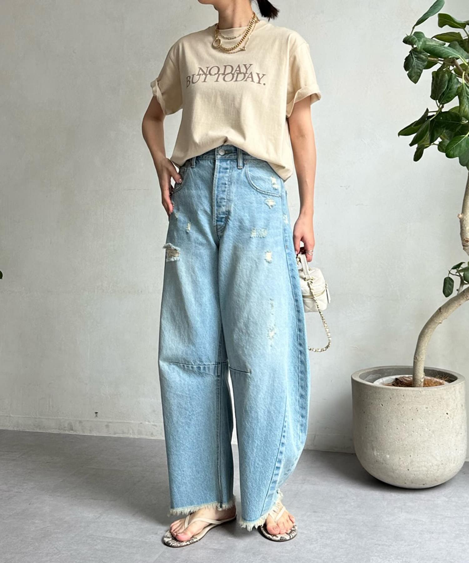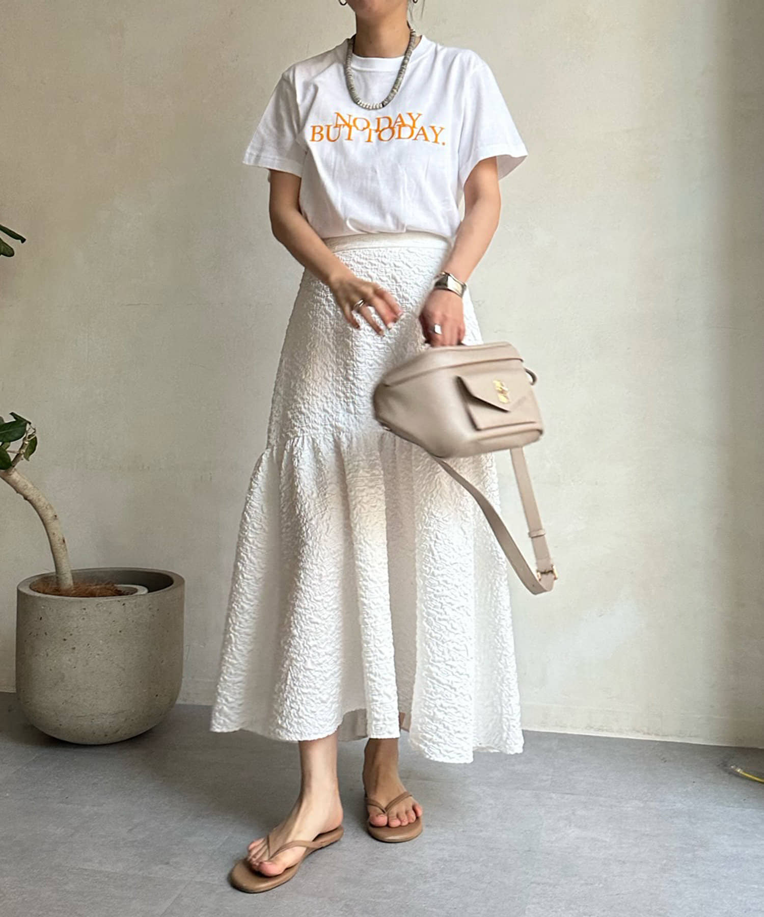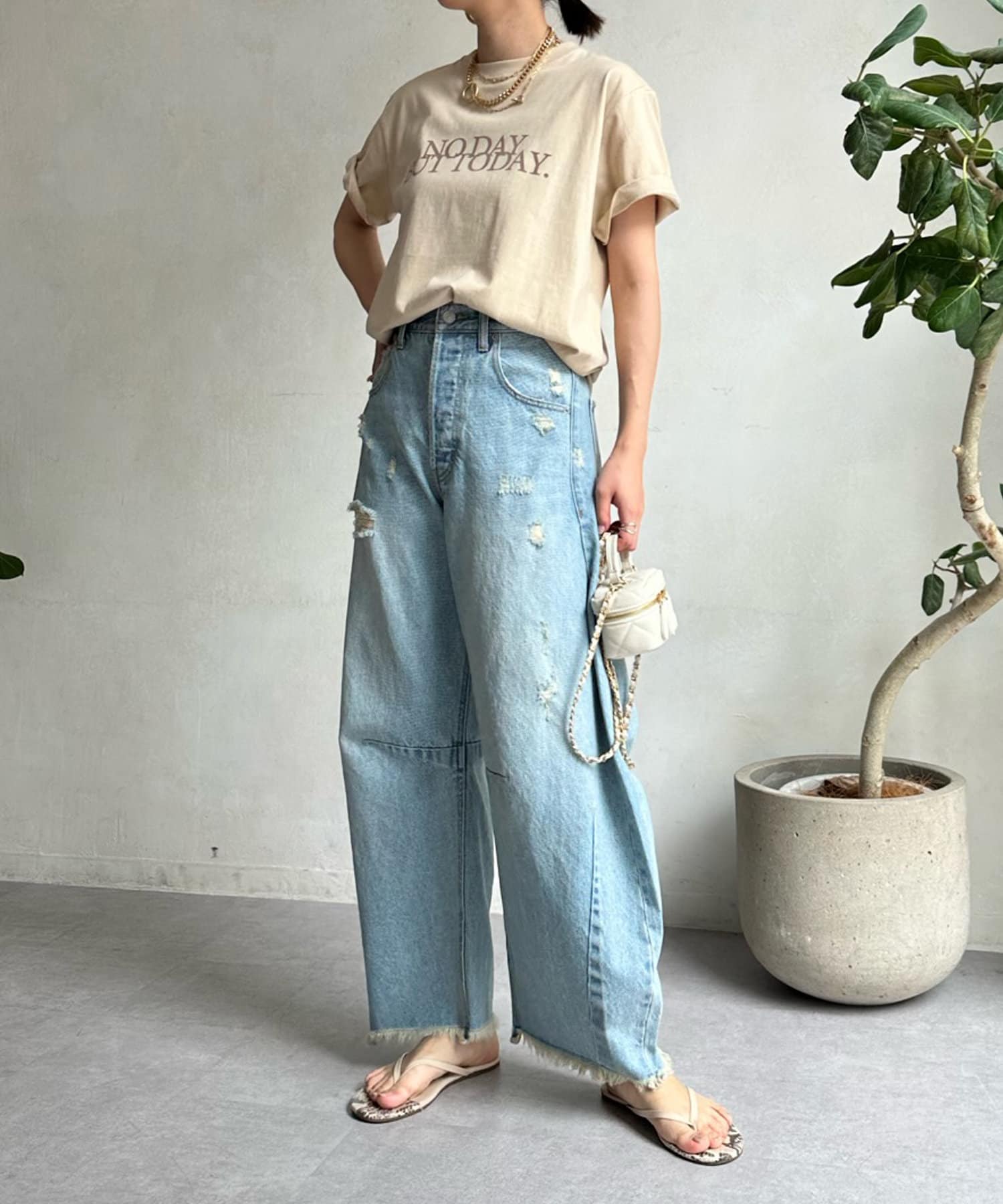 主張が強すぎないシンプルなロゴがカジュアルになり過ぎず、大人なスタイリングにもマッチして着ていただけます。