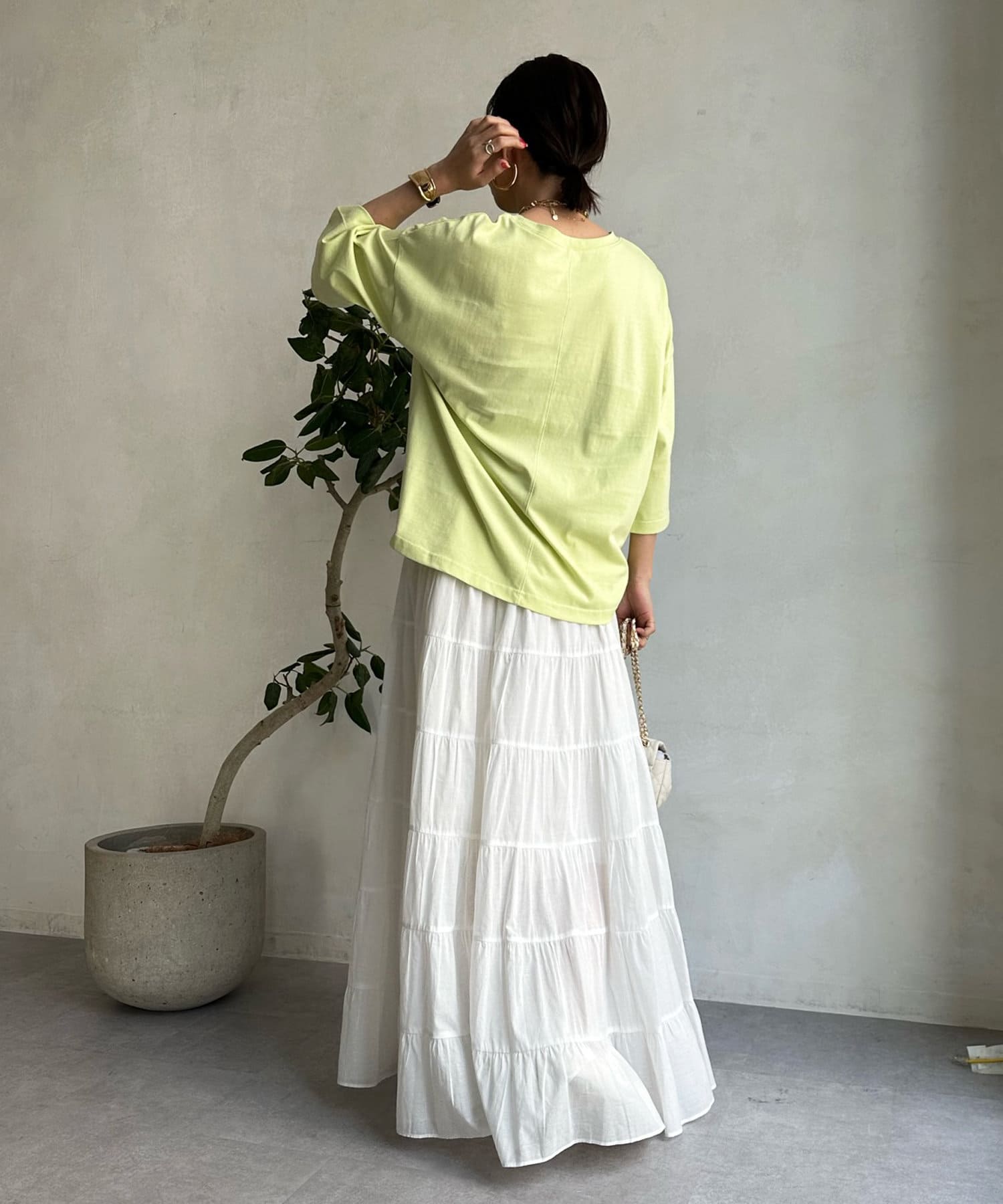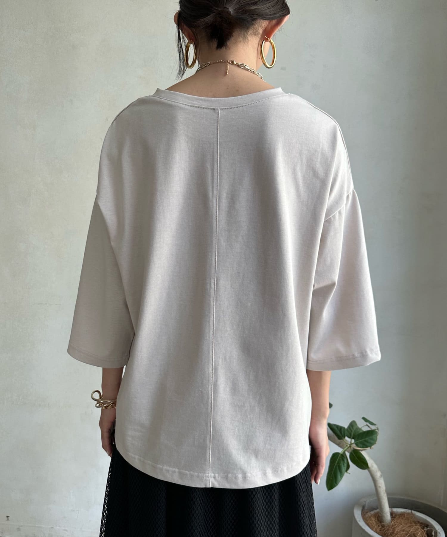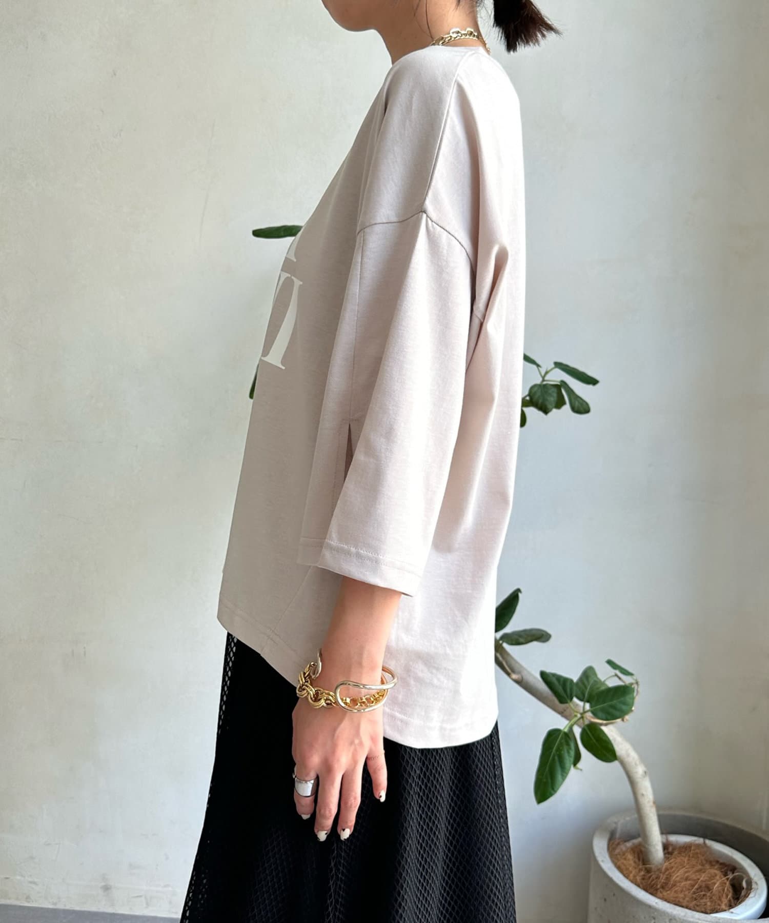 春先から着回していただきやすい七分袖に加え、袖にはスリットが入っており、これまでのカットソーとは異なるこなれた印象に。