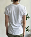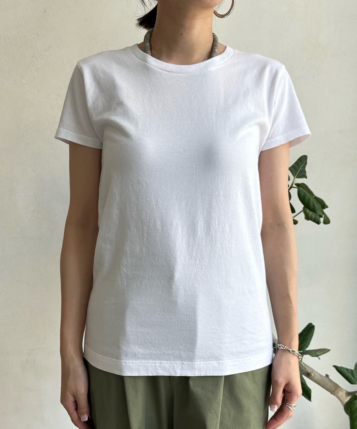 時代のニーズにマッチした厚さと素材感が特長の「透けにくい5.3オンス」を使用。脇に縫い目のない丸胴編みで、ガーメントウォッシュ加工をしています。