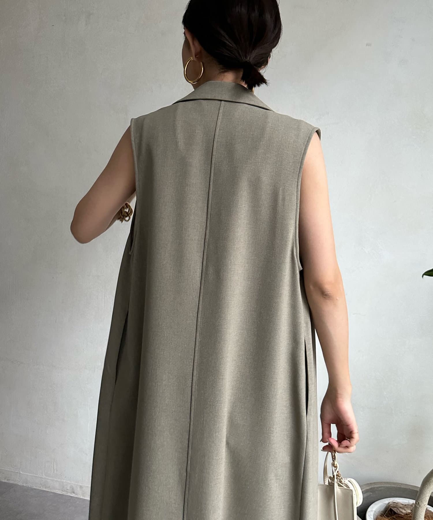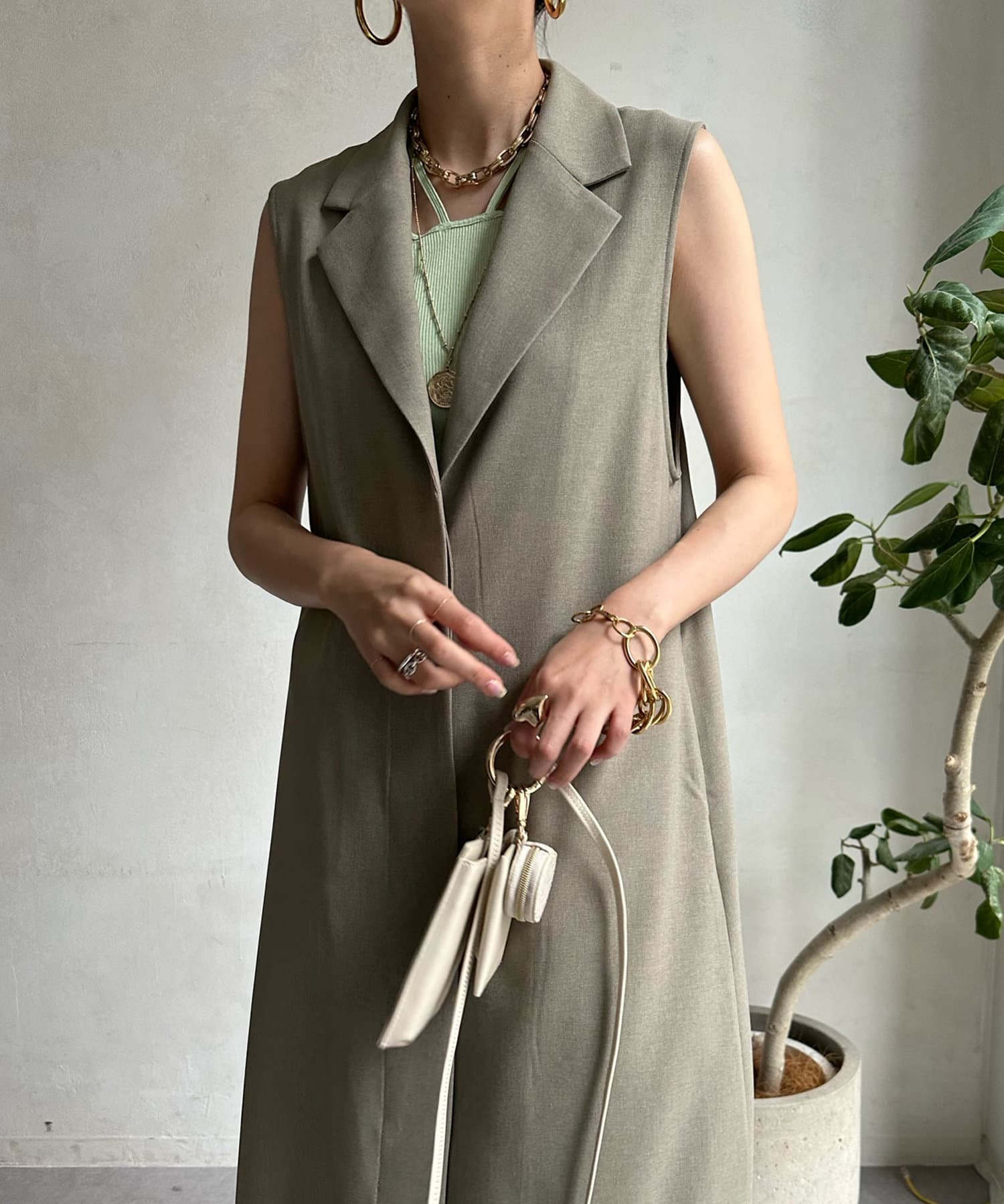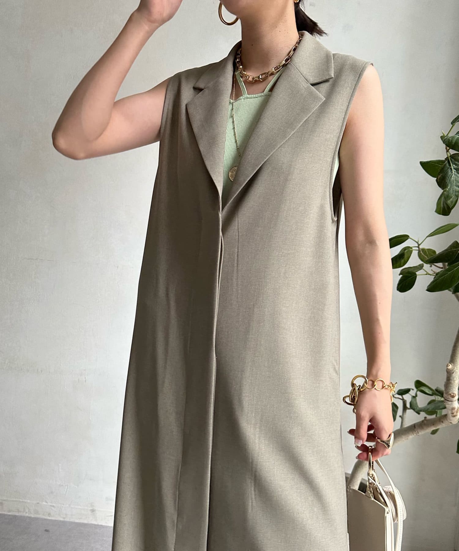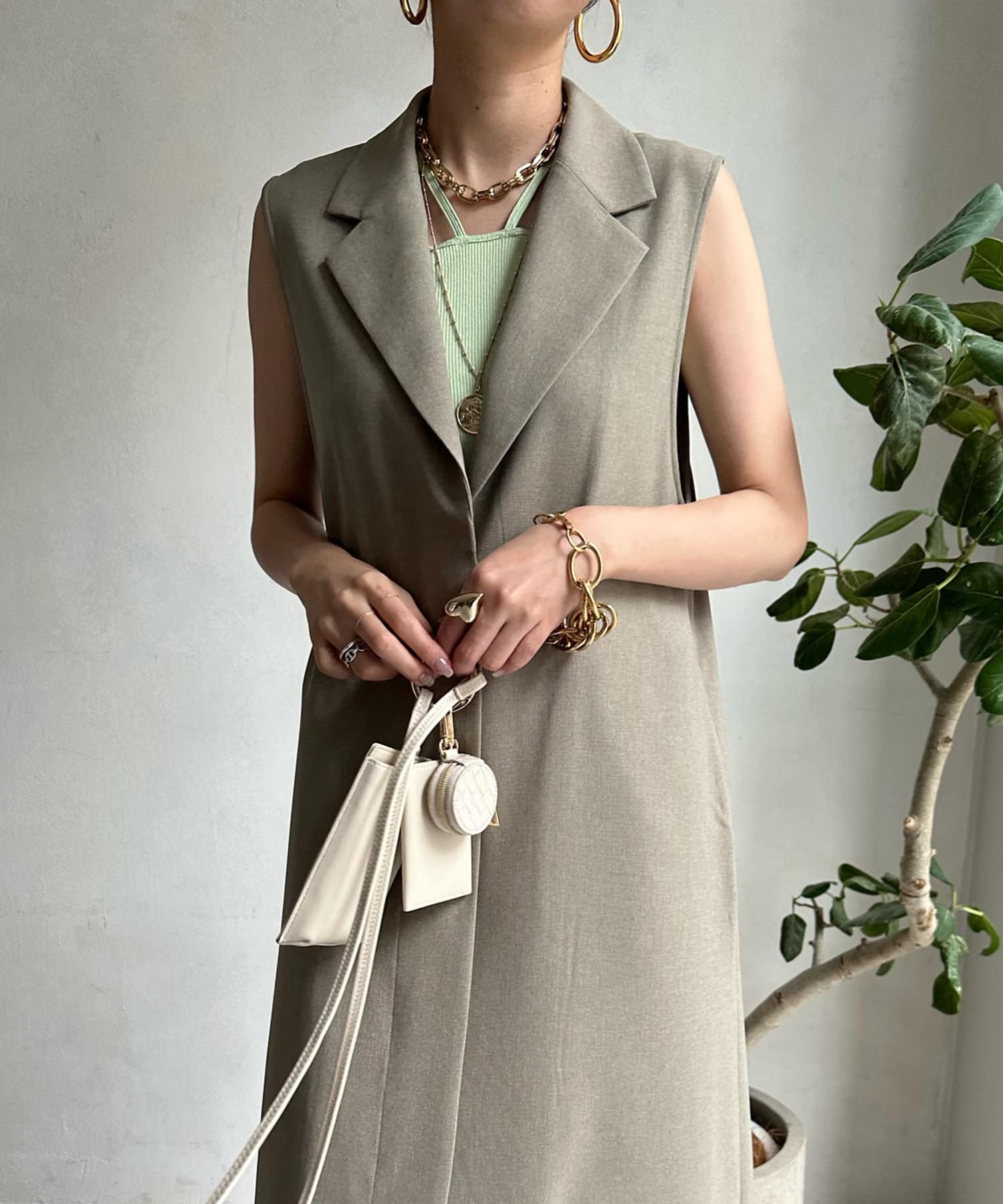 ロング丈シルエットが大人可愛く仕上がるジレワンピース。