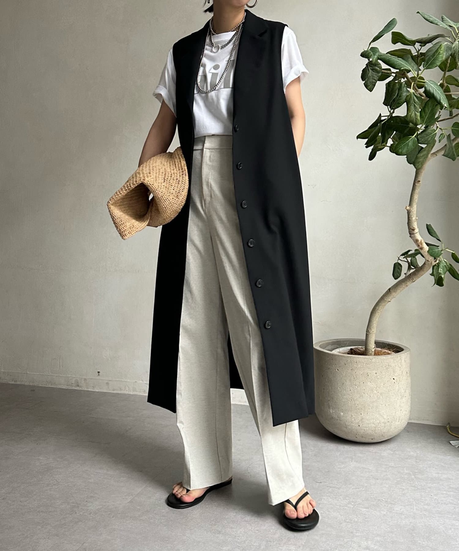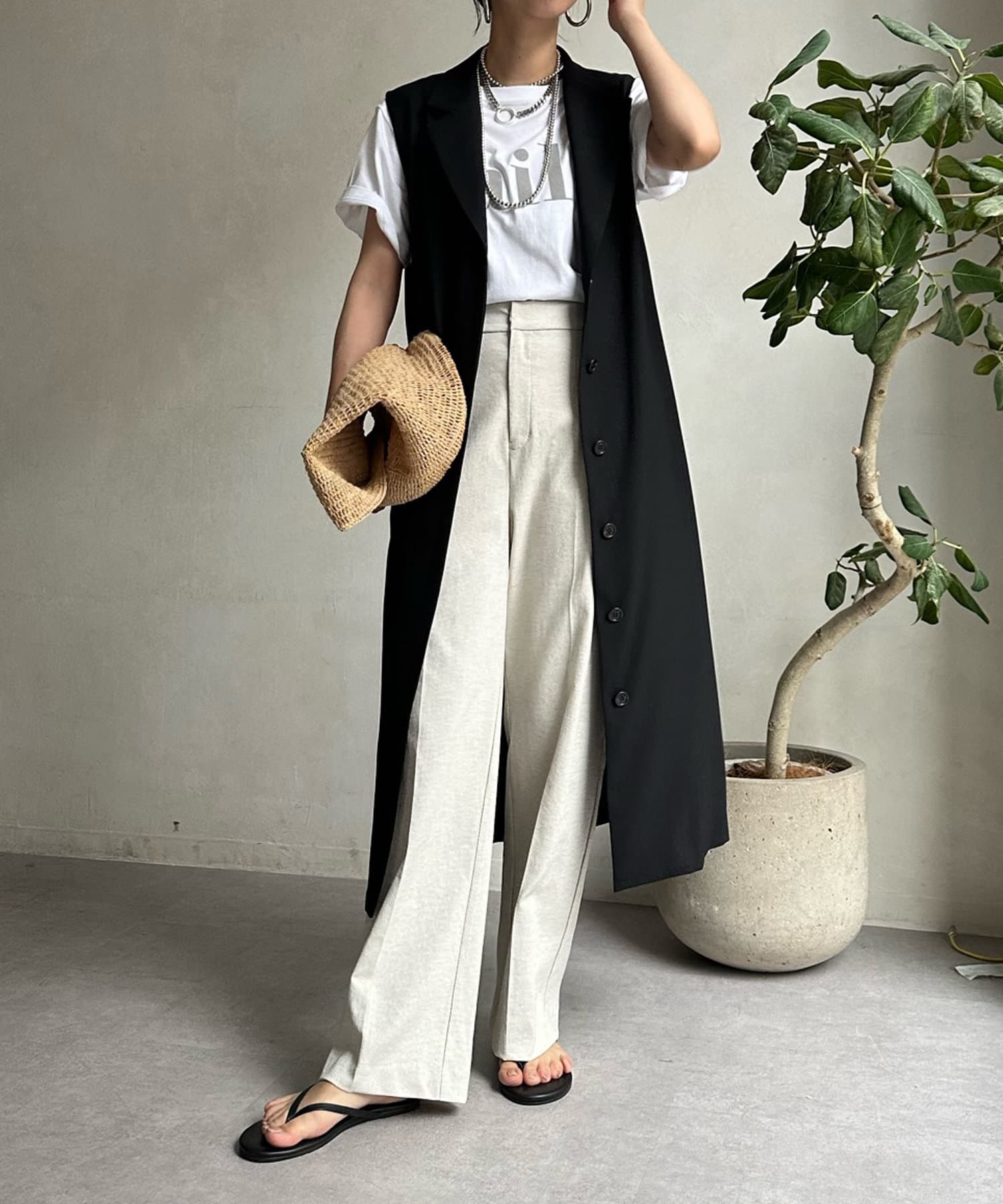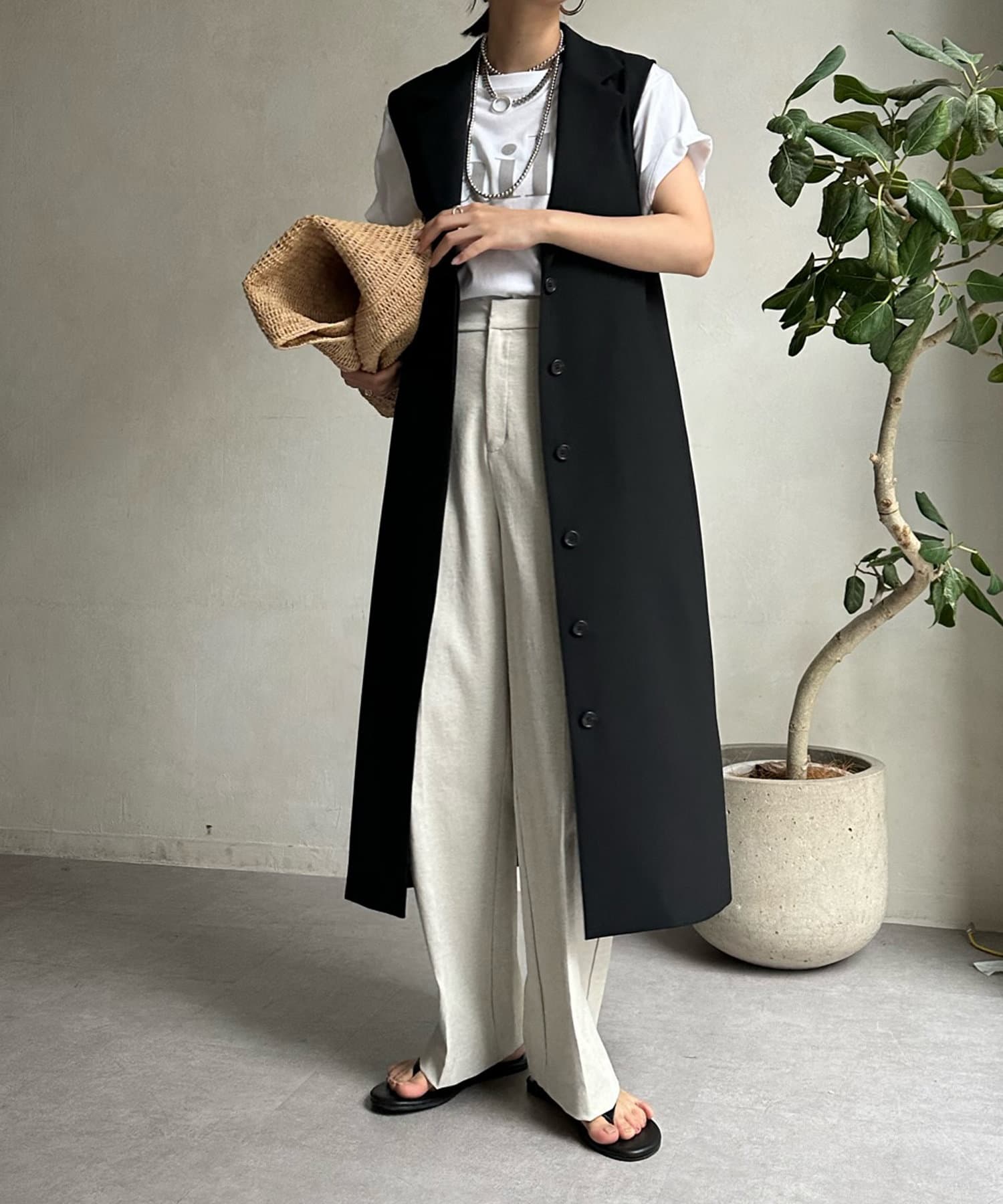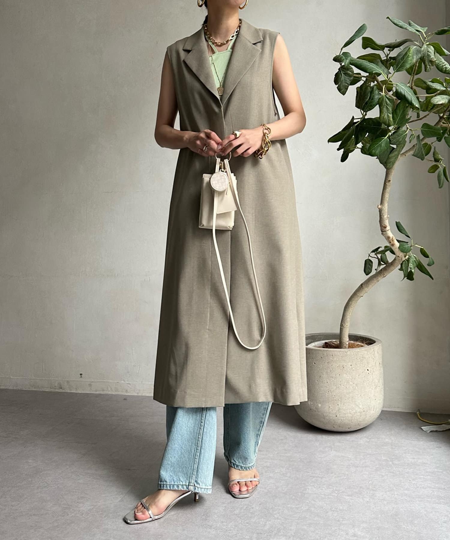 ロング丈シルエットが大人可愛く仕上がるジレワンピース。