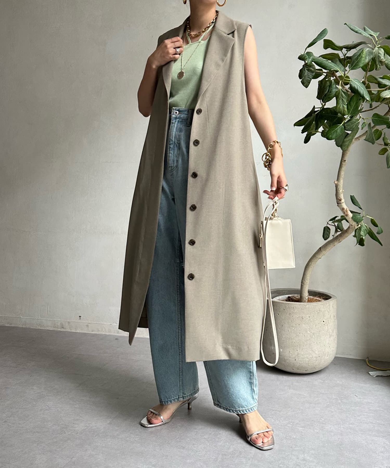 インナー次第でロングシーズン着回しが効き、2WAY仕様でボタンを取ればジレとしてもご着用いただけます。