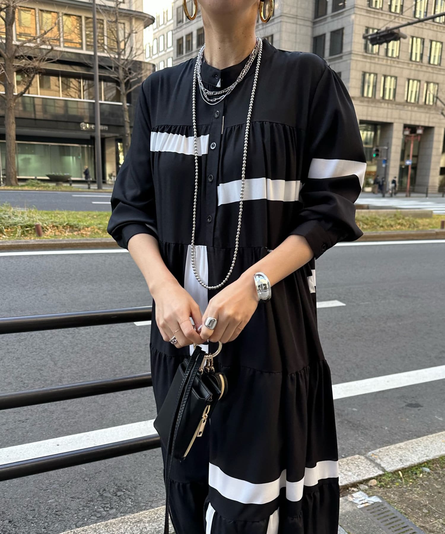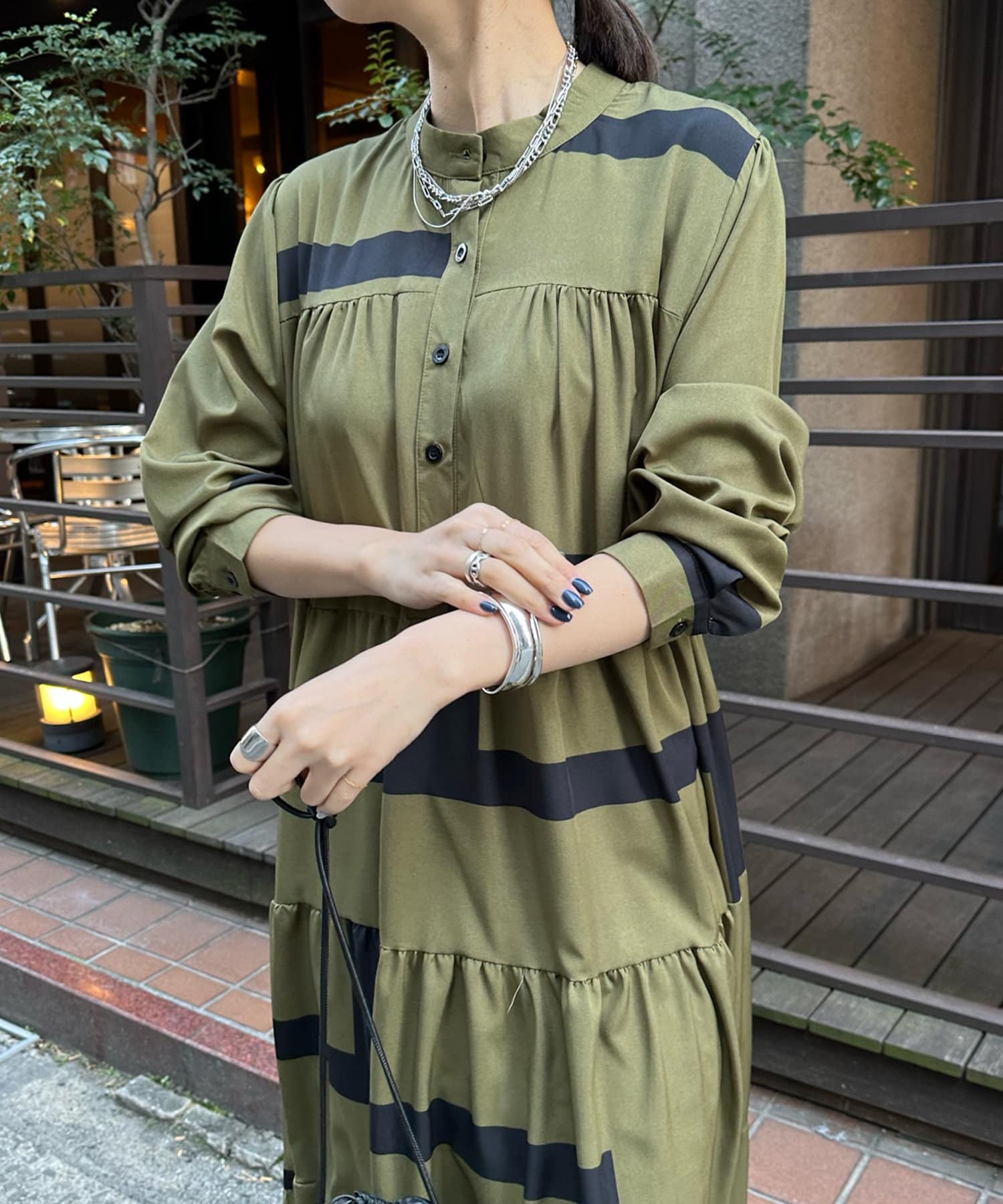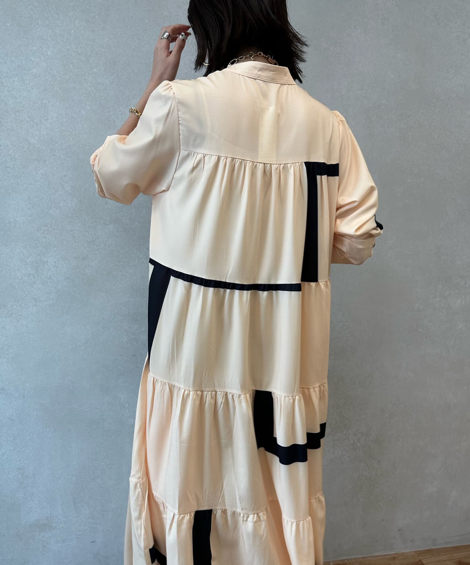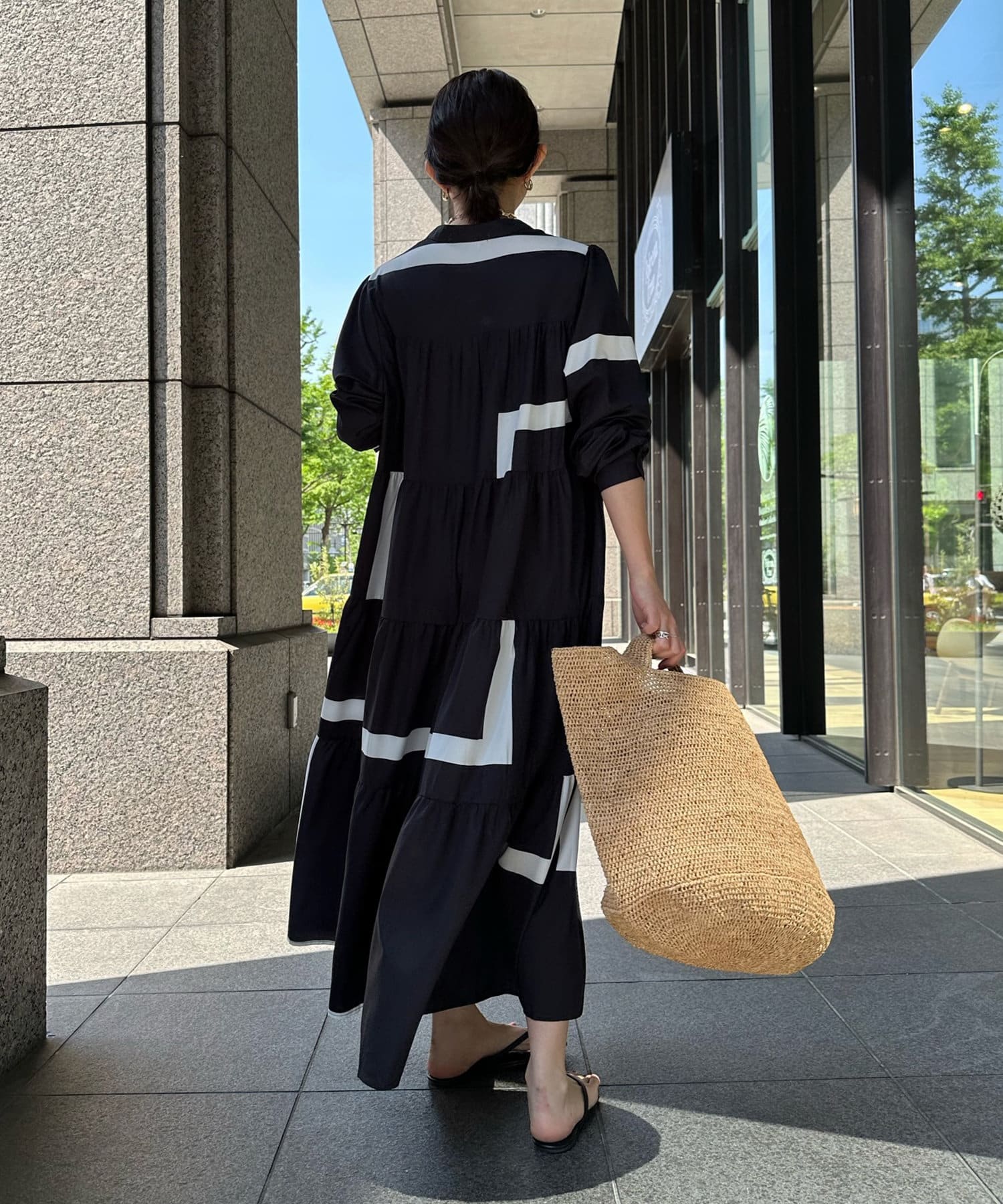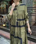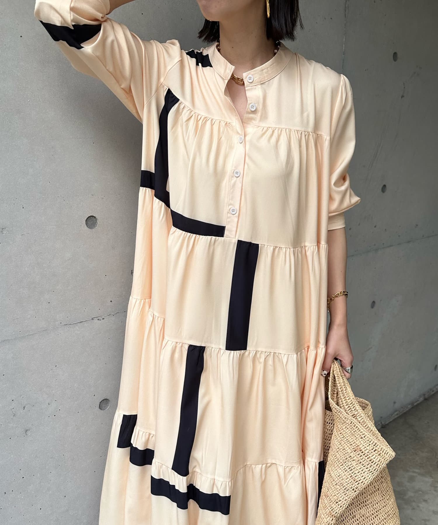 裾に向かって広がりの出るシルエットで、切り替えのティアードシルエットが大人ガーリーな雰囲気を醸し出します。