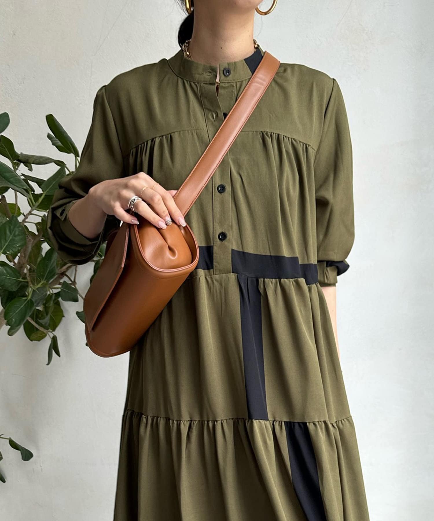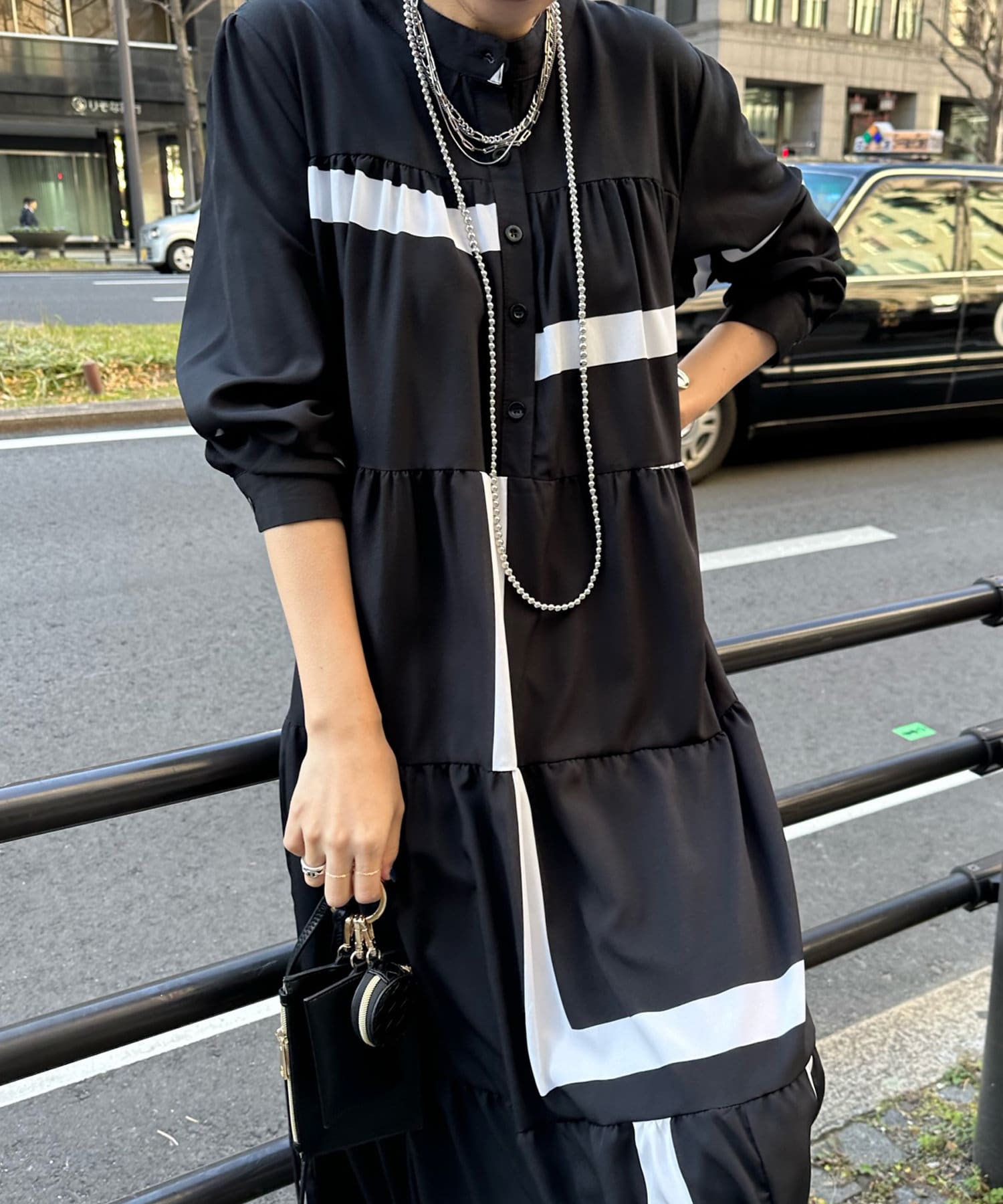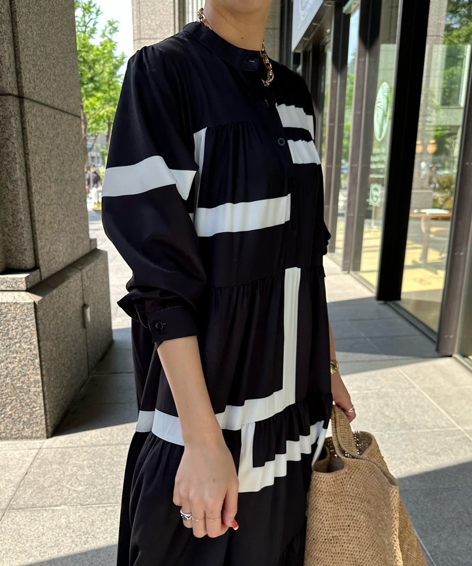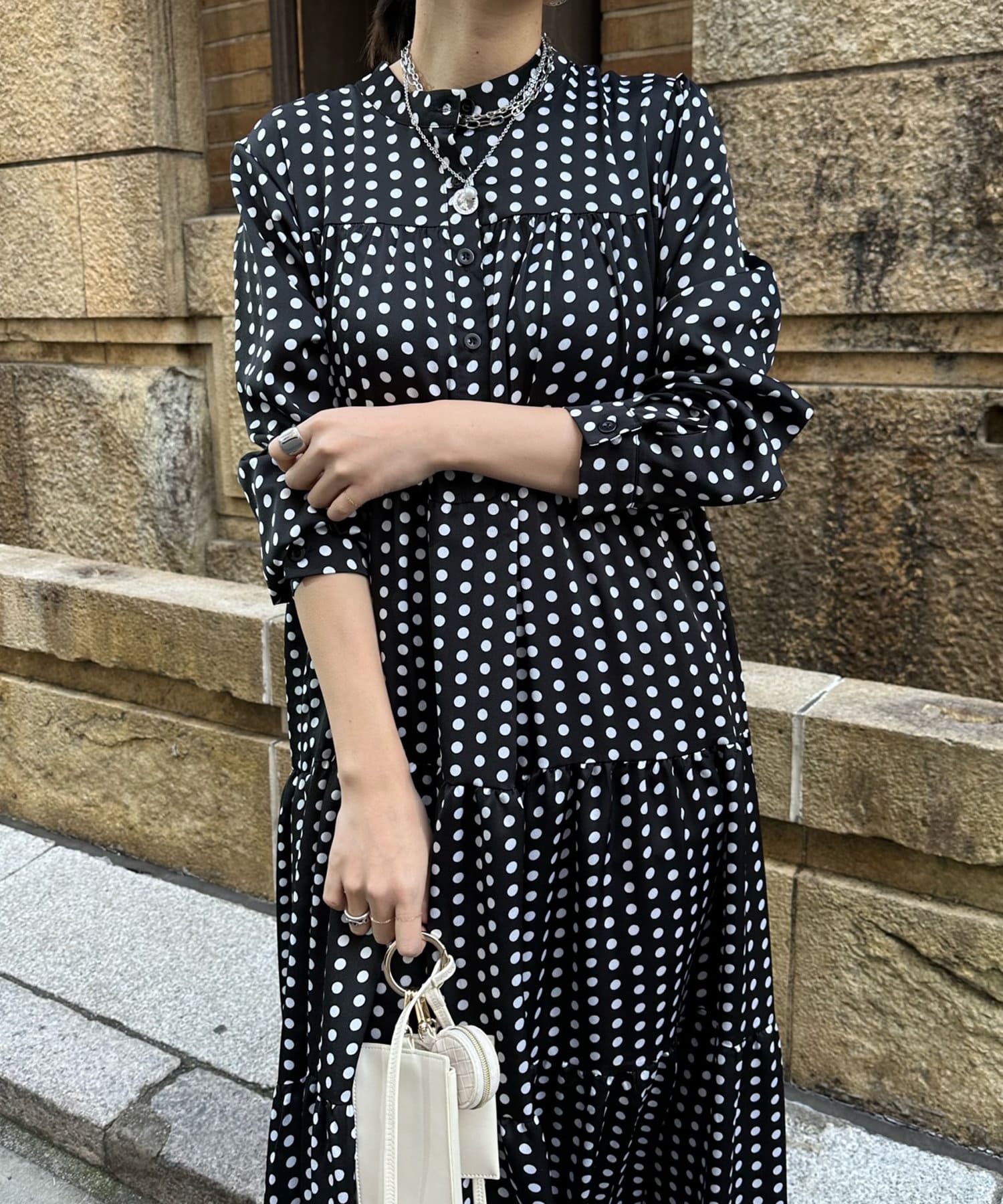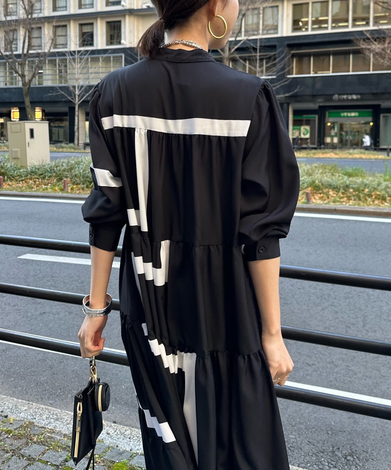 裾に向かって広がりの出るシルエットで、切り替えのティアードシルエットが大人ガーリーな雰囲気を醸し出します。