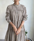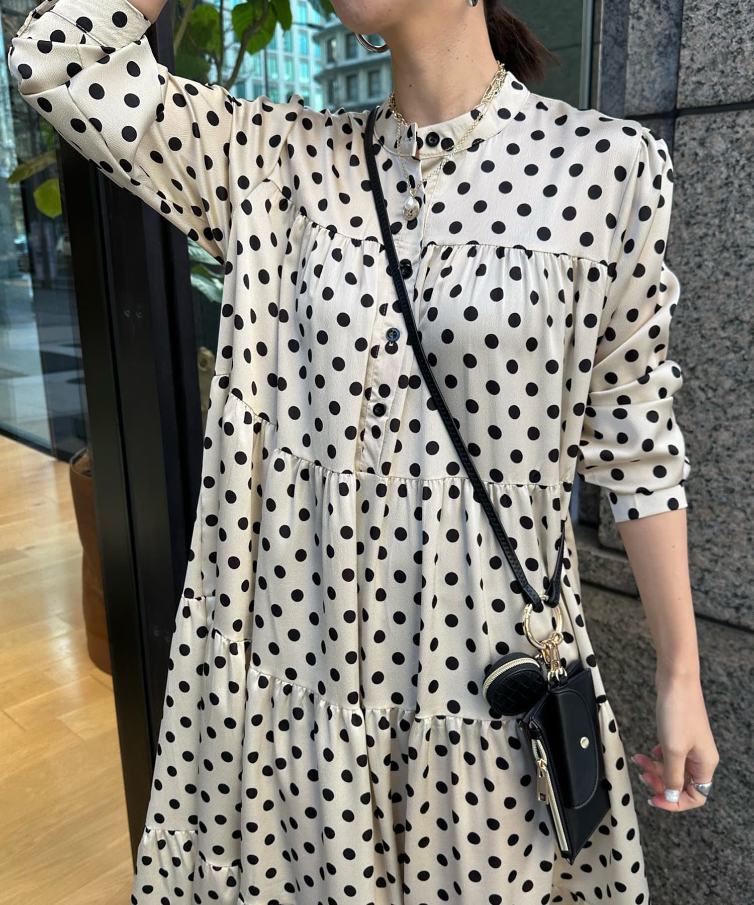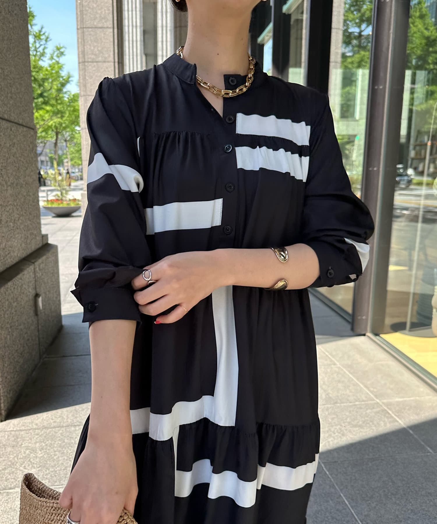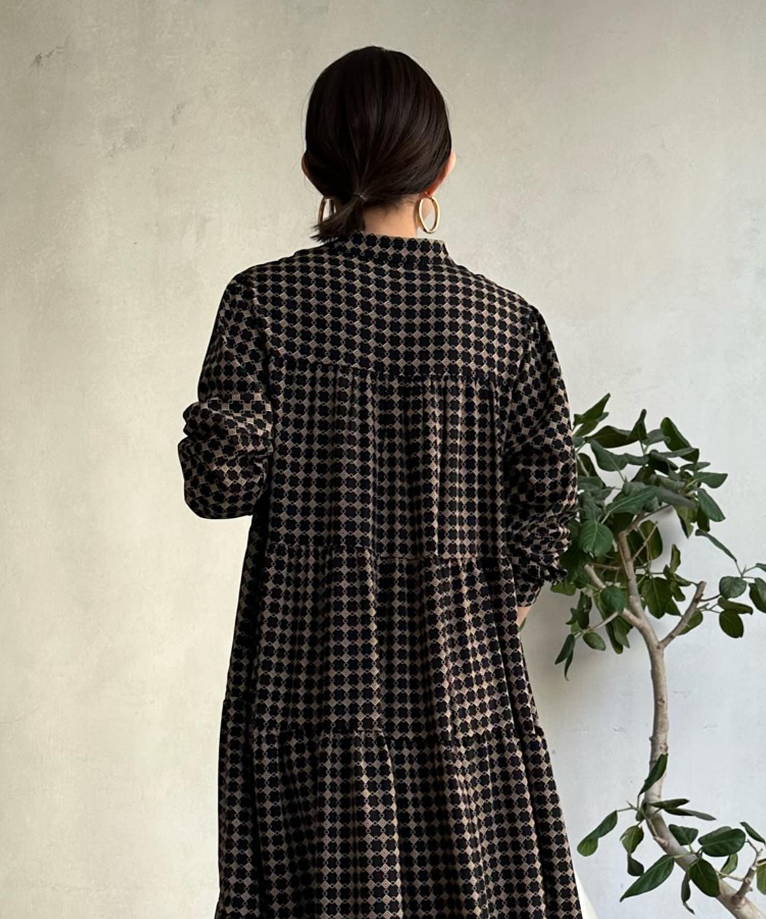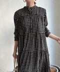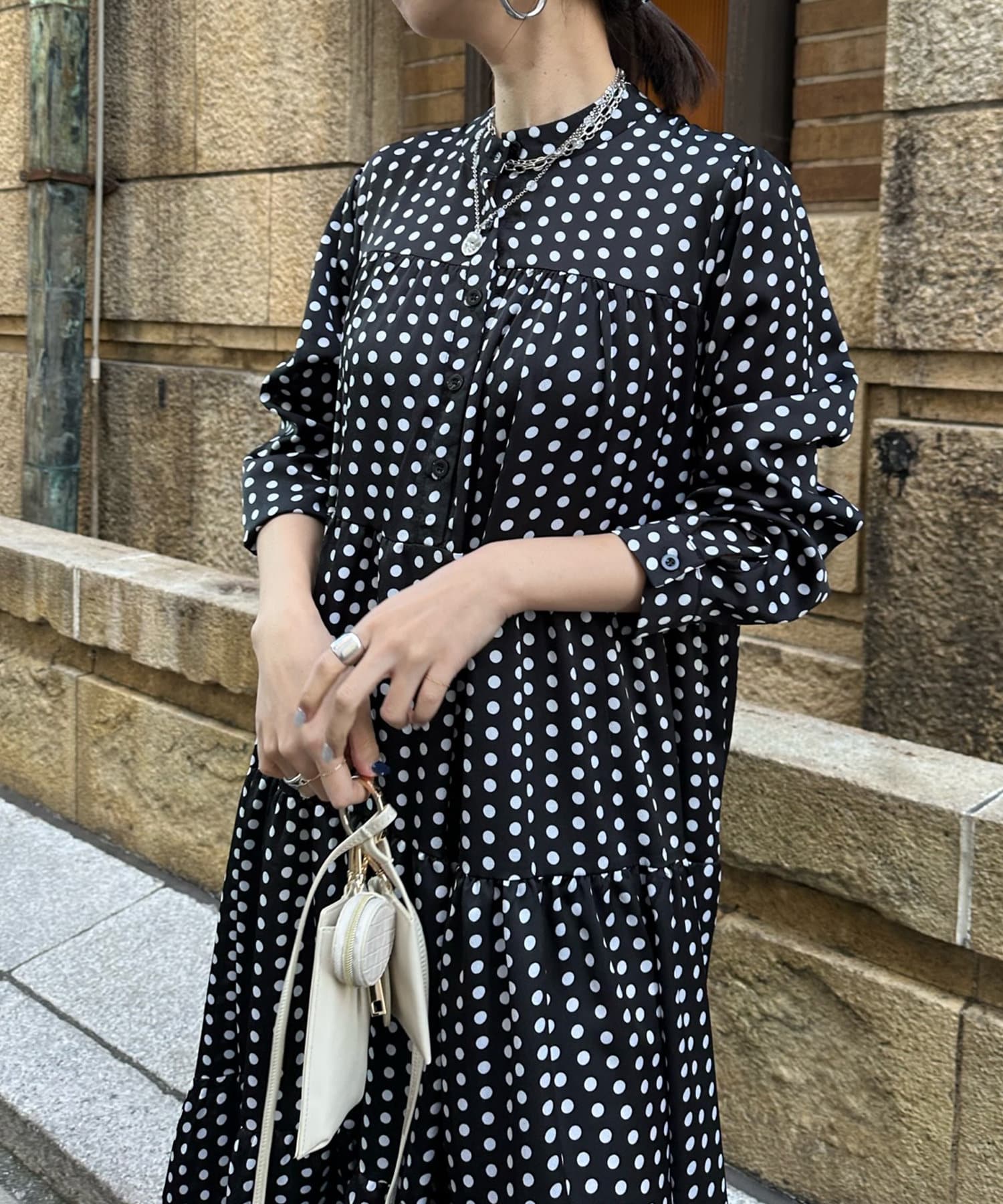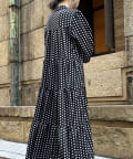 裾に向かって広がりの出るシルエットで、切り替えのティアードシルエットが大人ガーリーな雰囲気を醸し出します。
