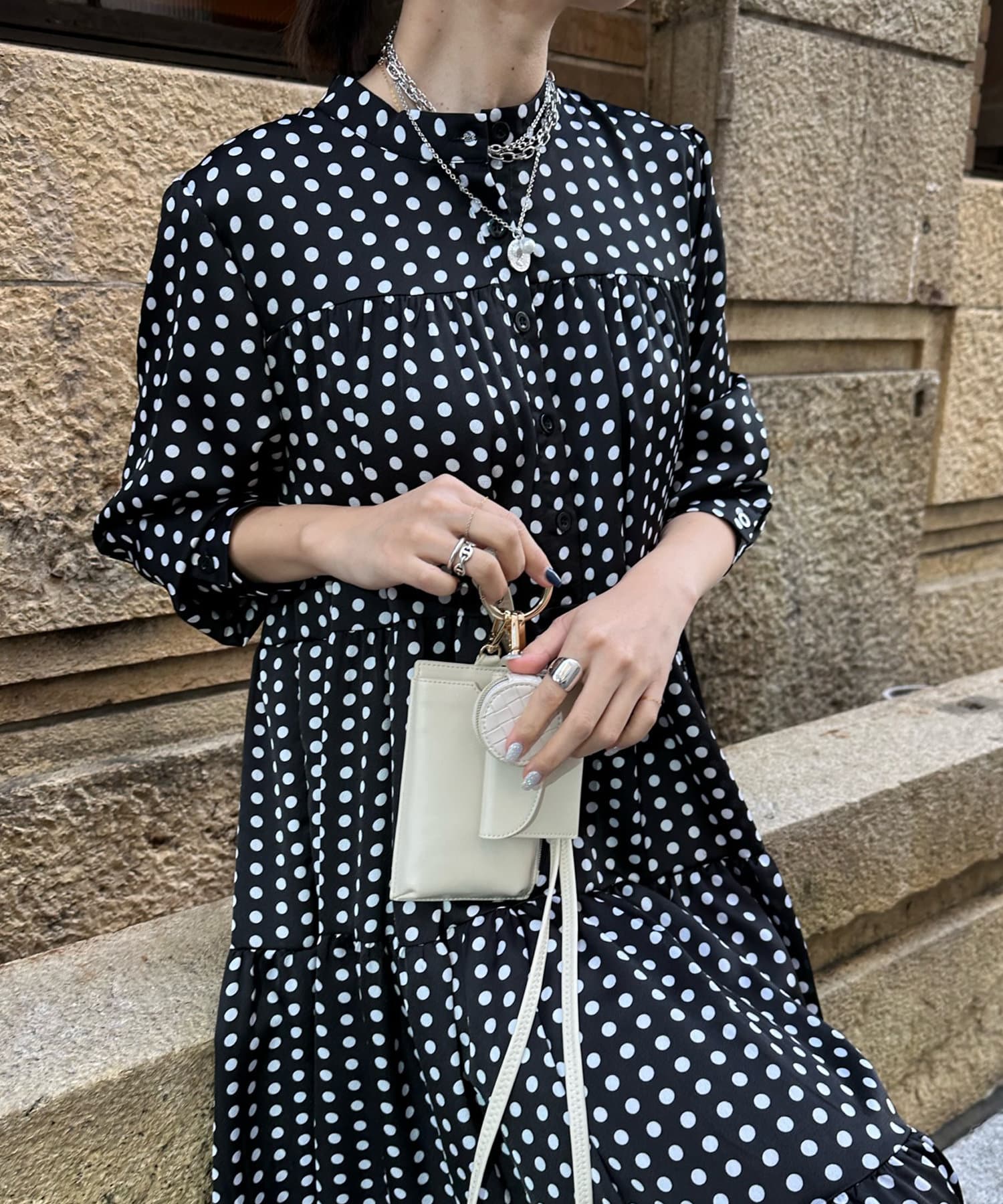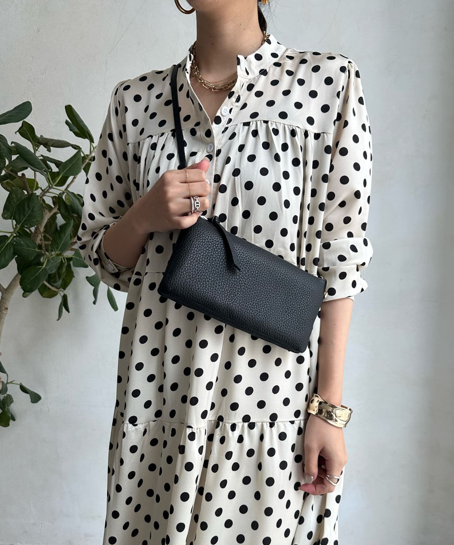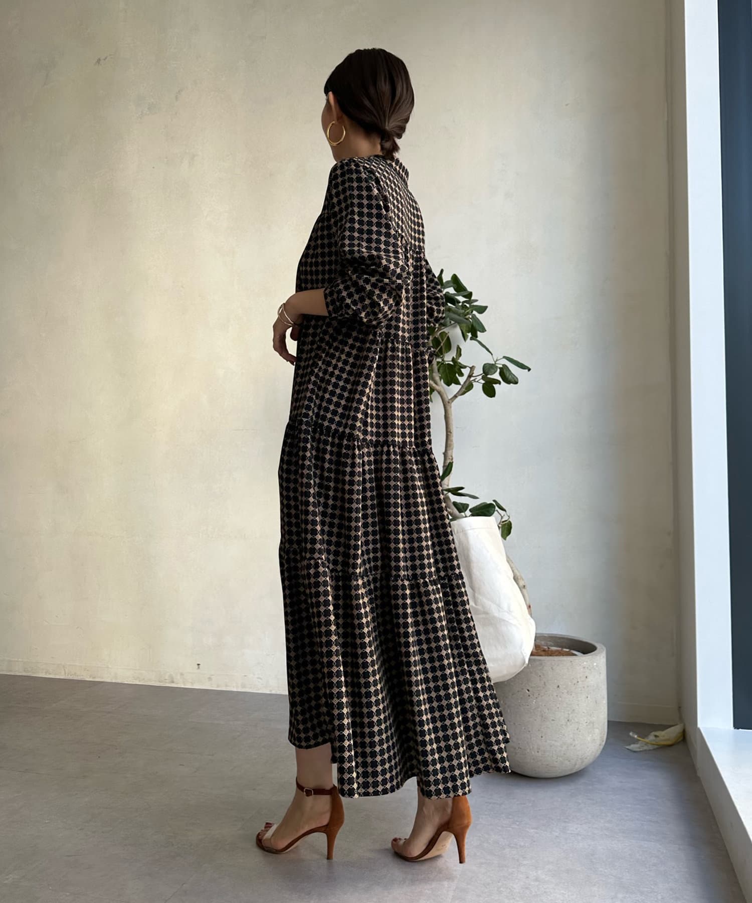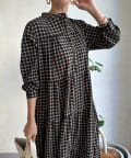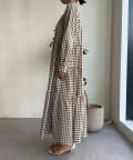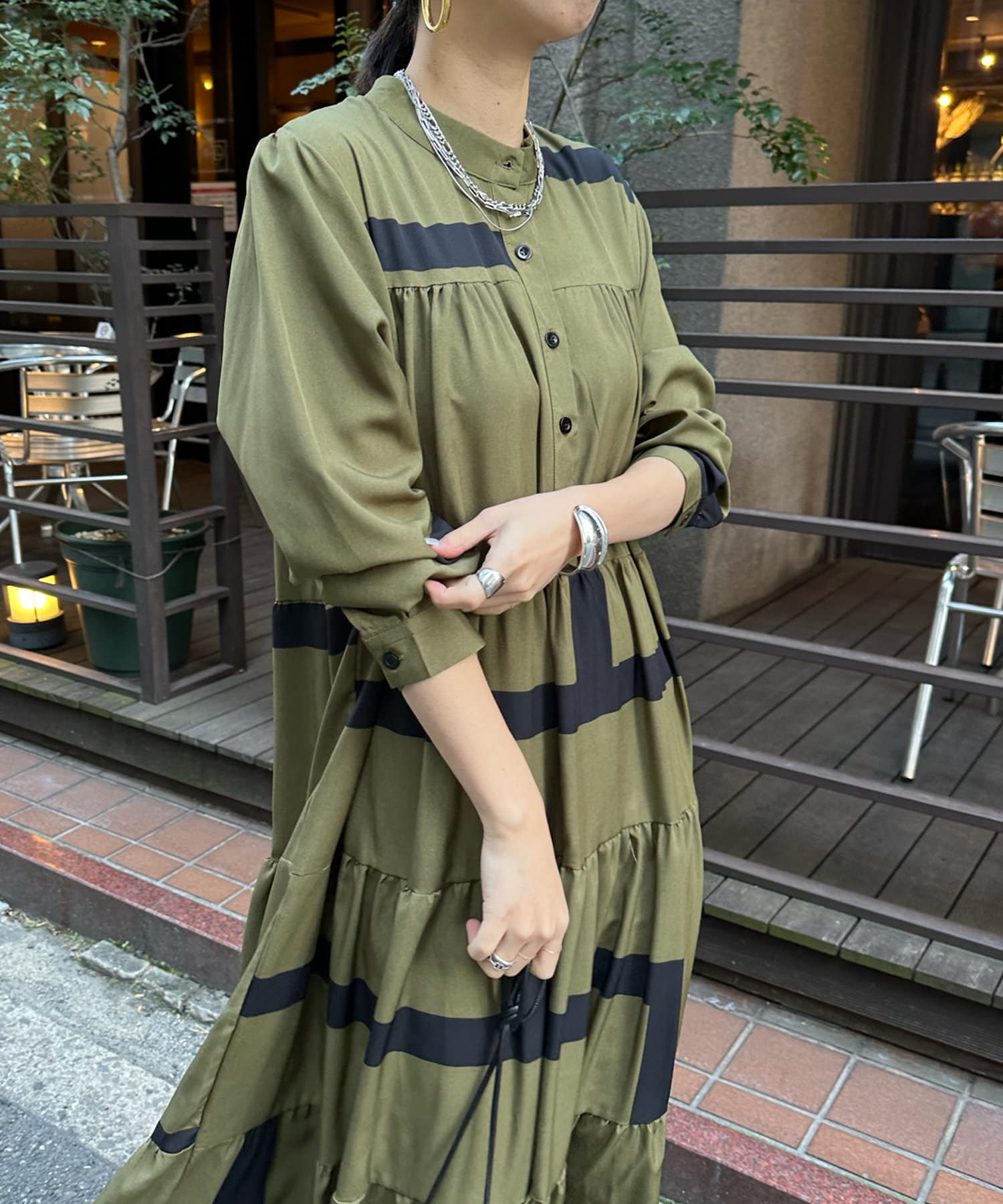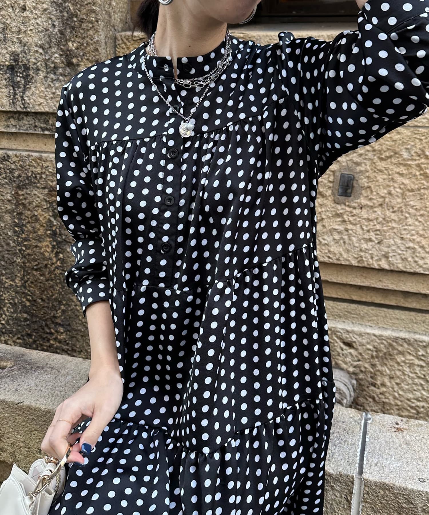 裾に向かって広がりの出るシルエットで、切り替えのティアードシルエットが大人ガーリーな雰囲気を醸し出します。