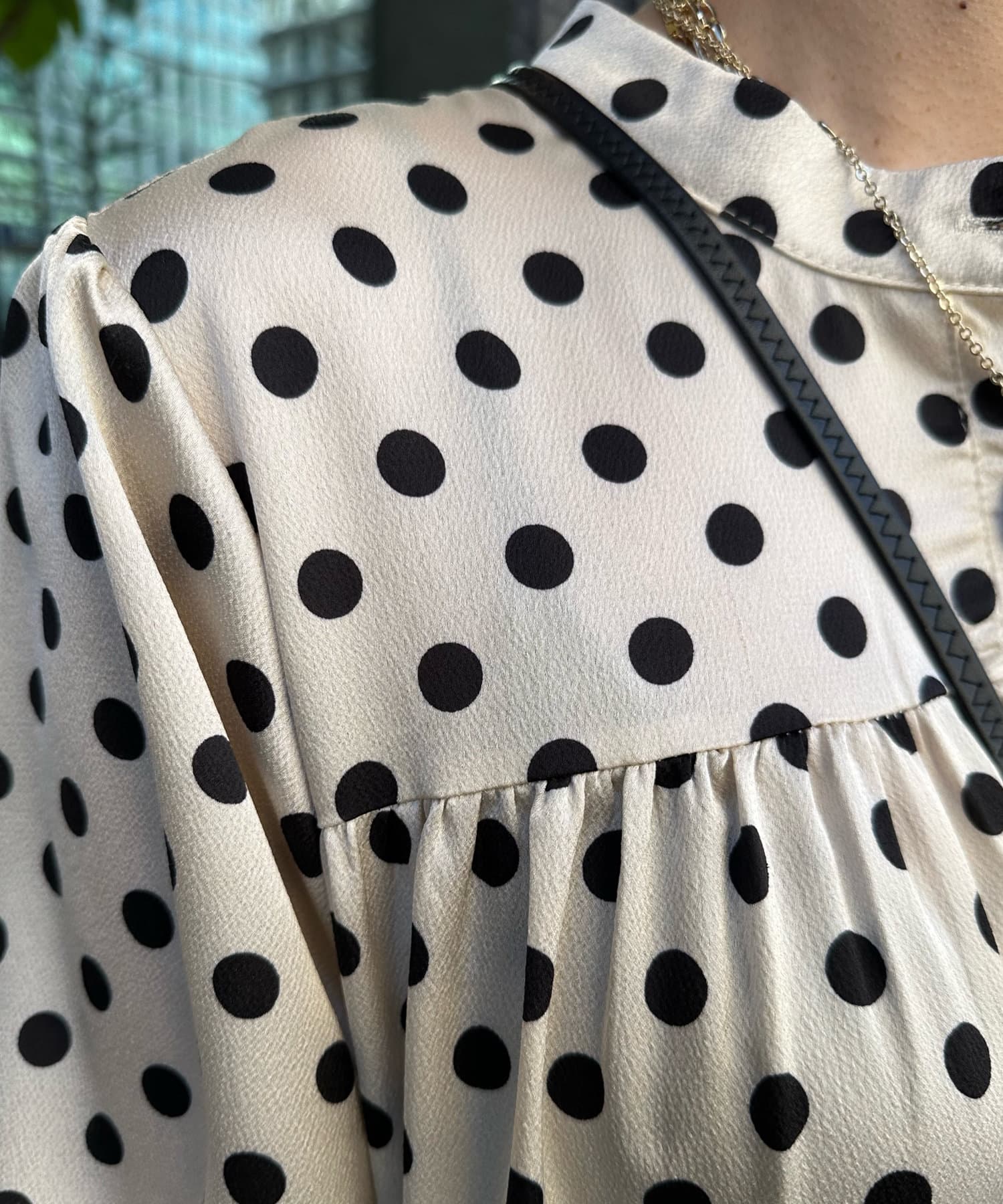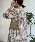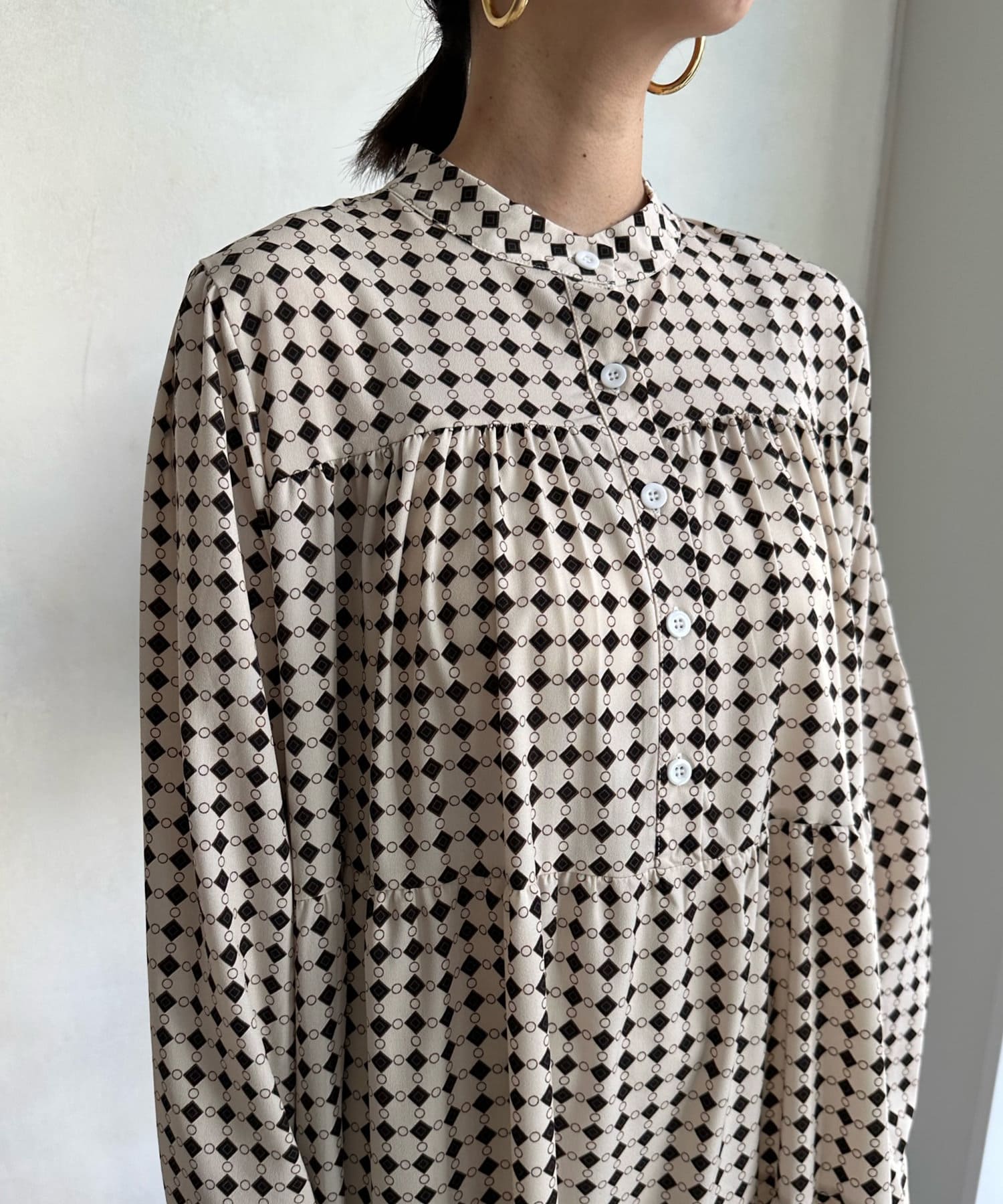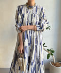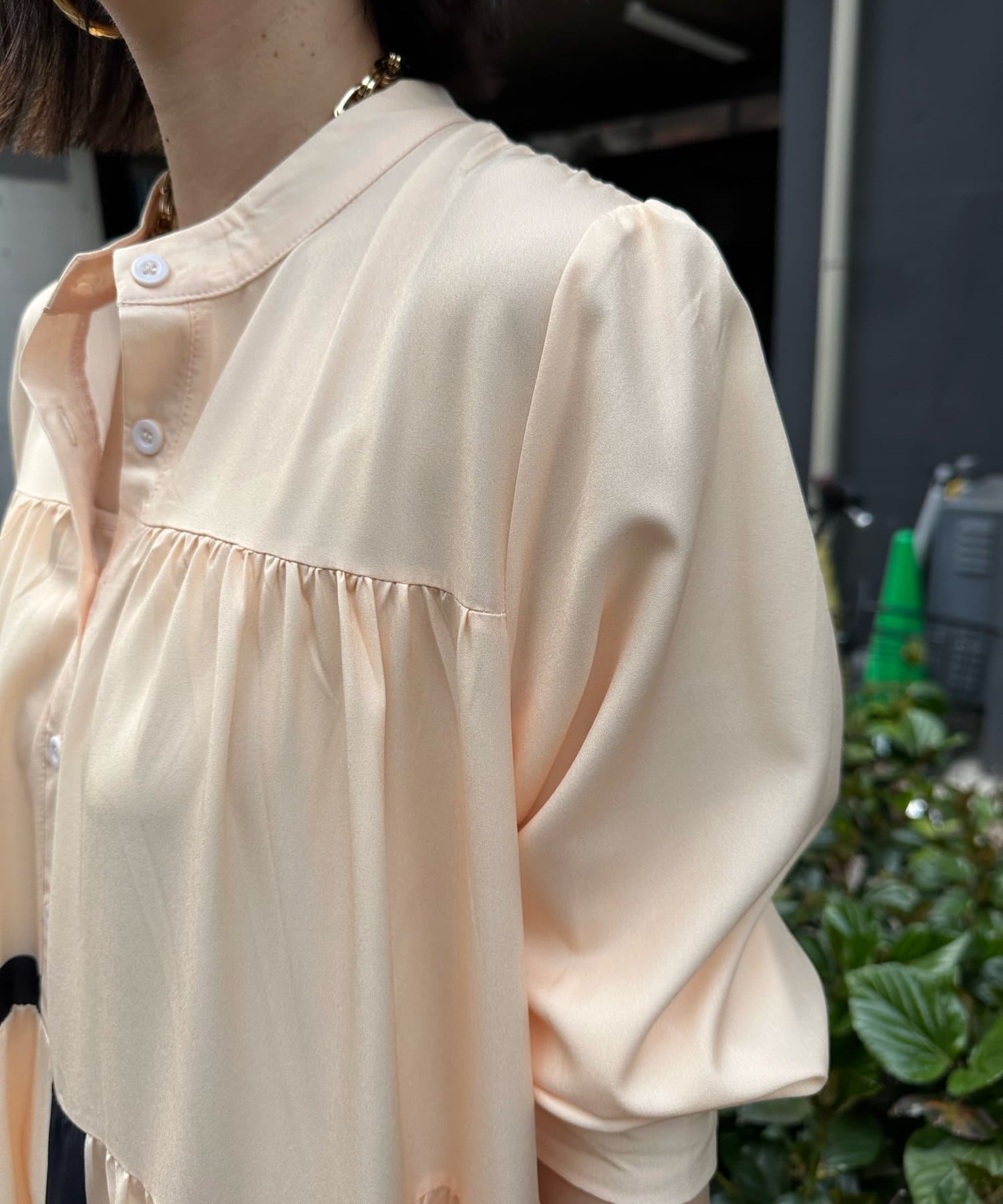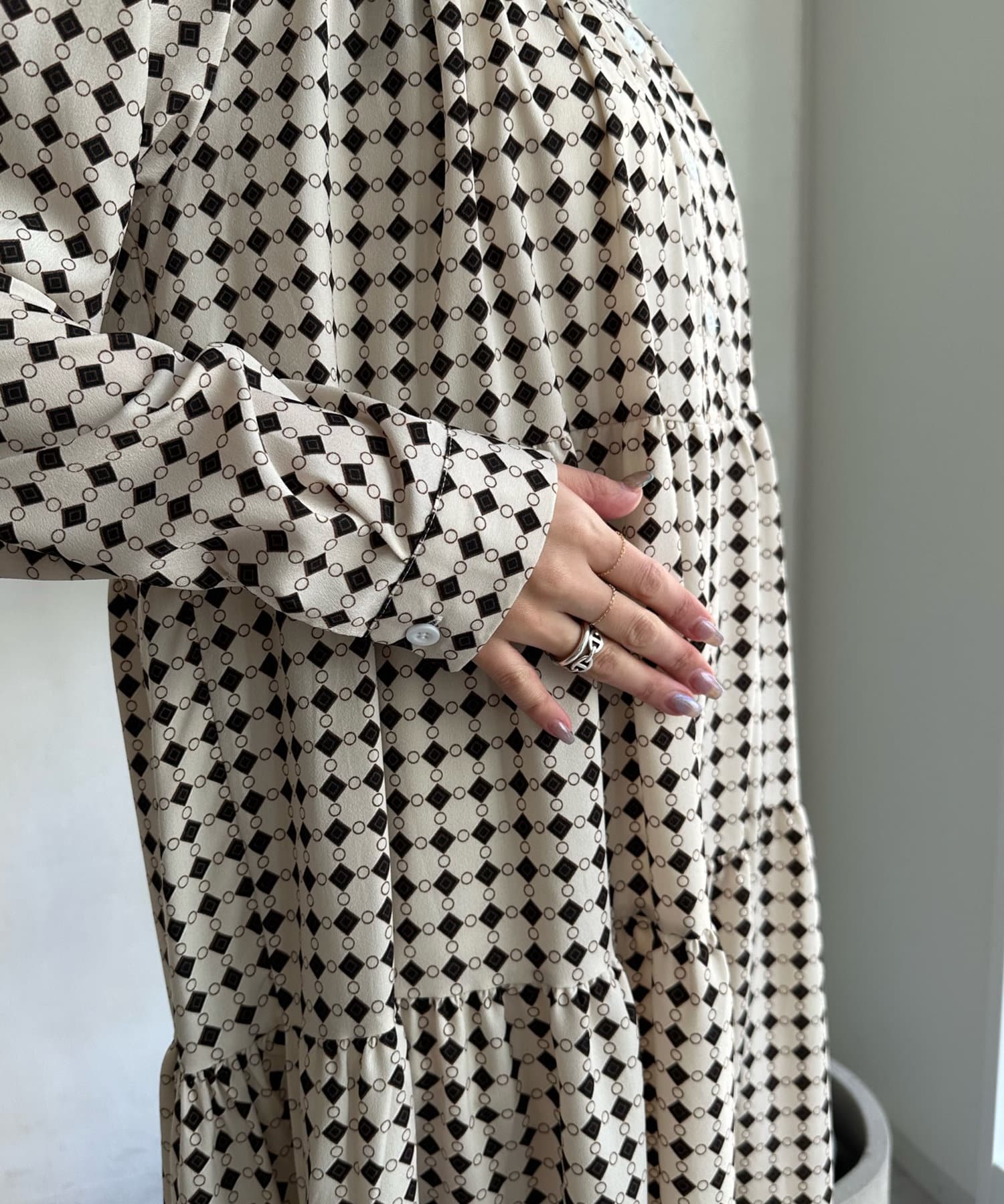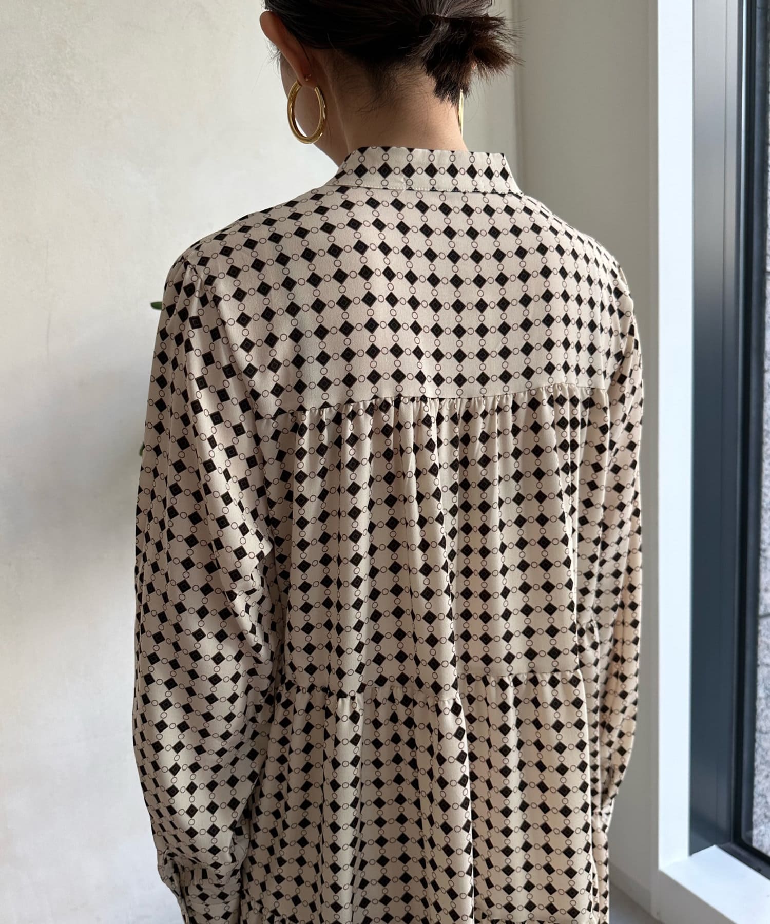 裾に向かって広がりの出るシルエットで、切り替えのティアードシルエットが大人ガーリーな雰囲気を醸し出します。