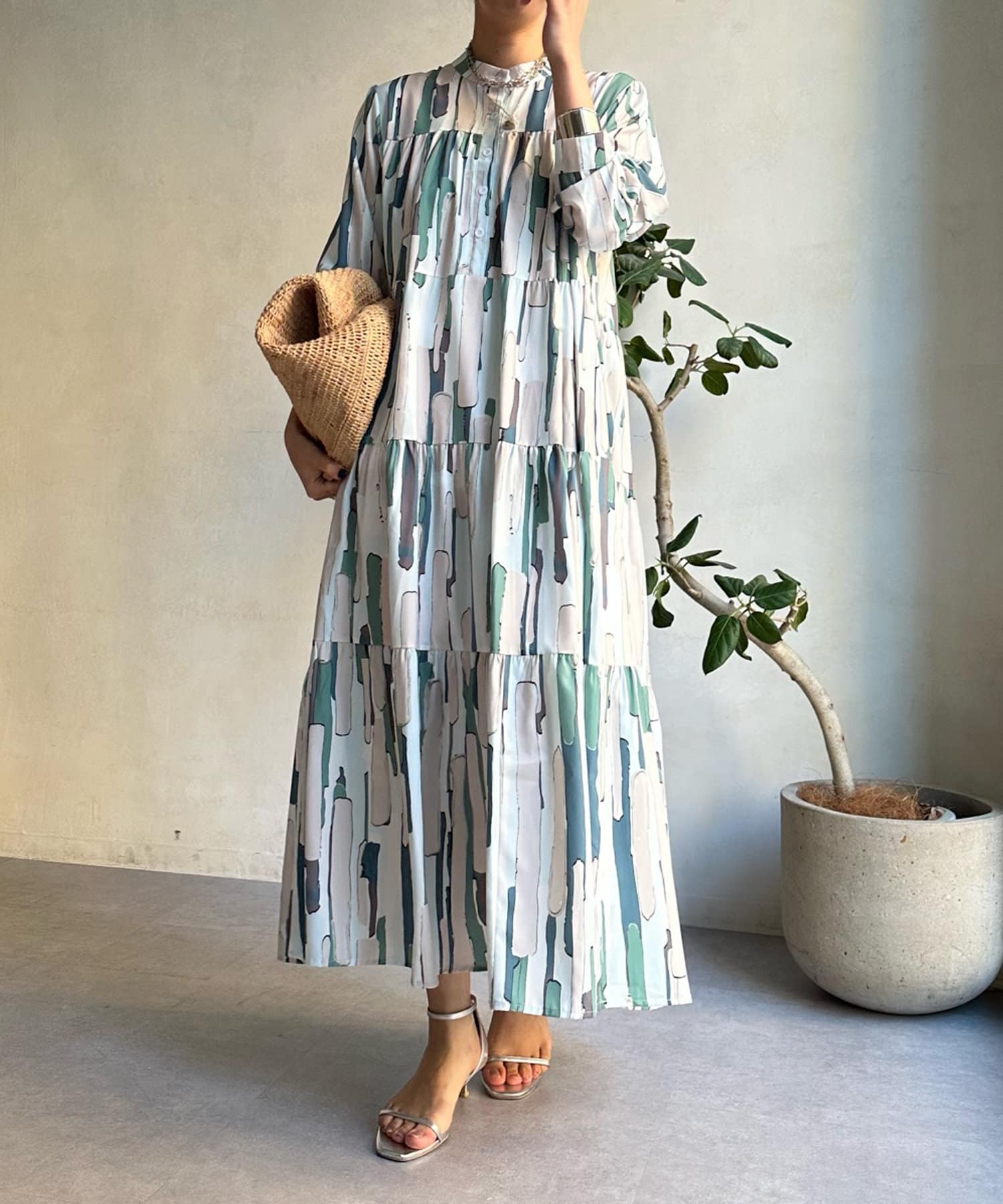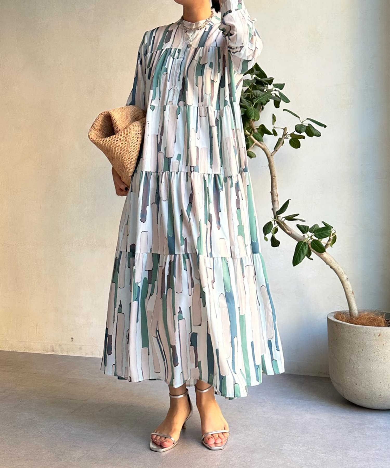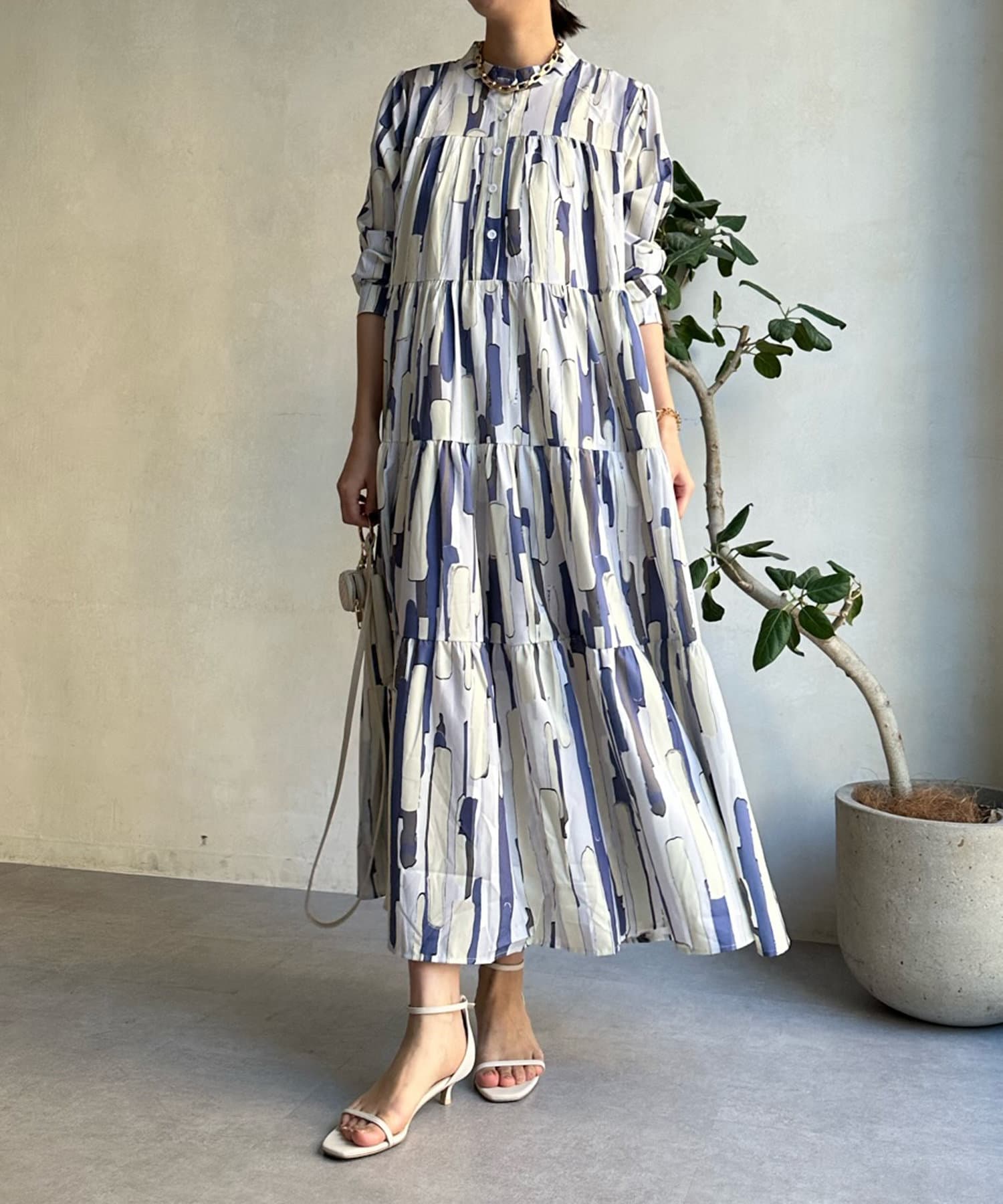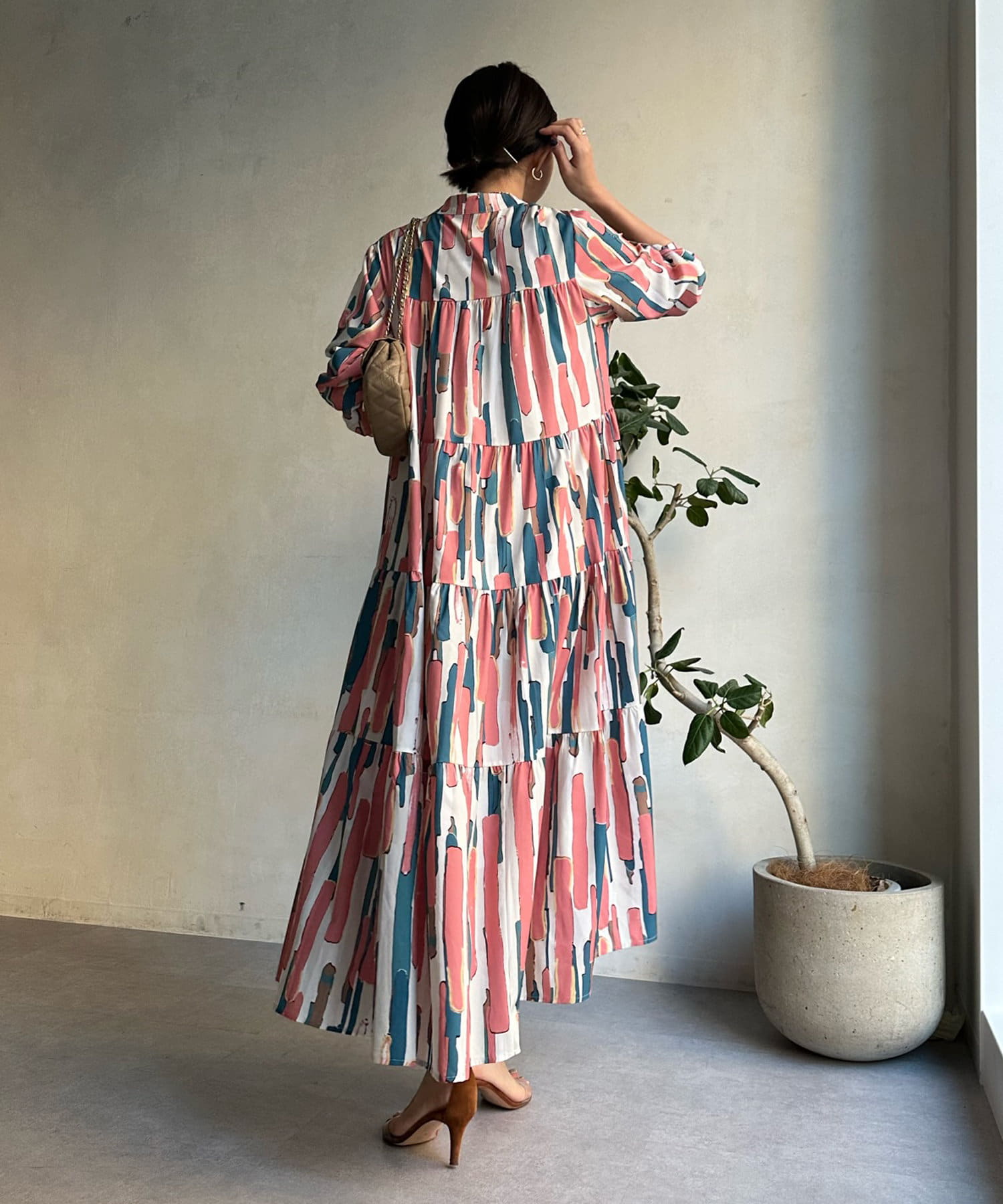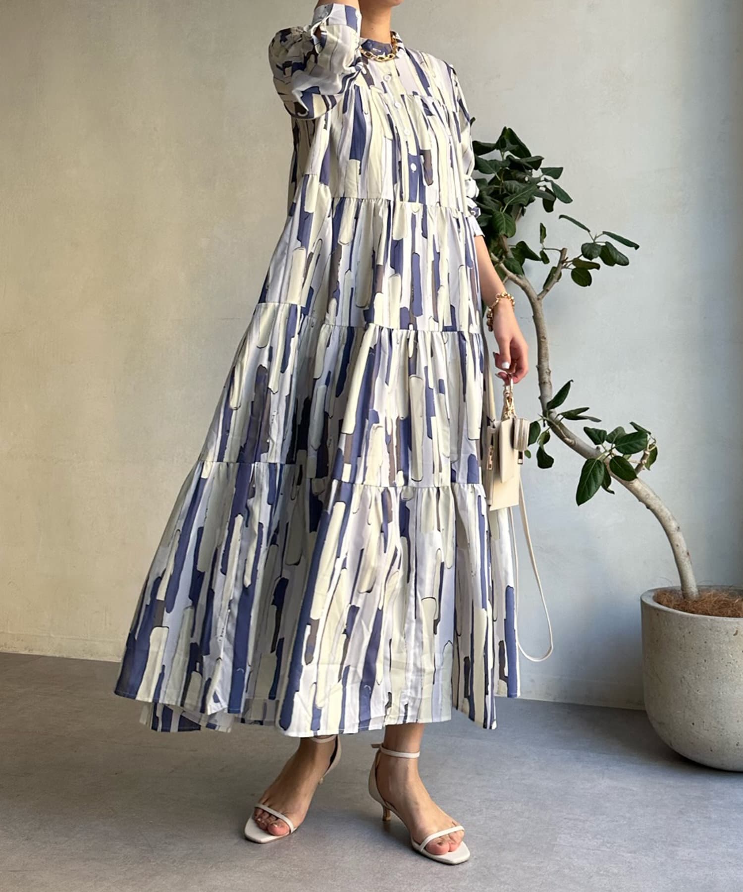 【大人気アイテム!】【WEB限定】 SSプリントティアードワンピース