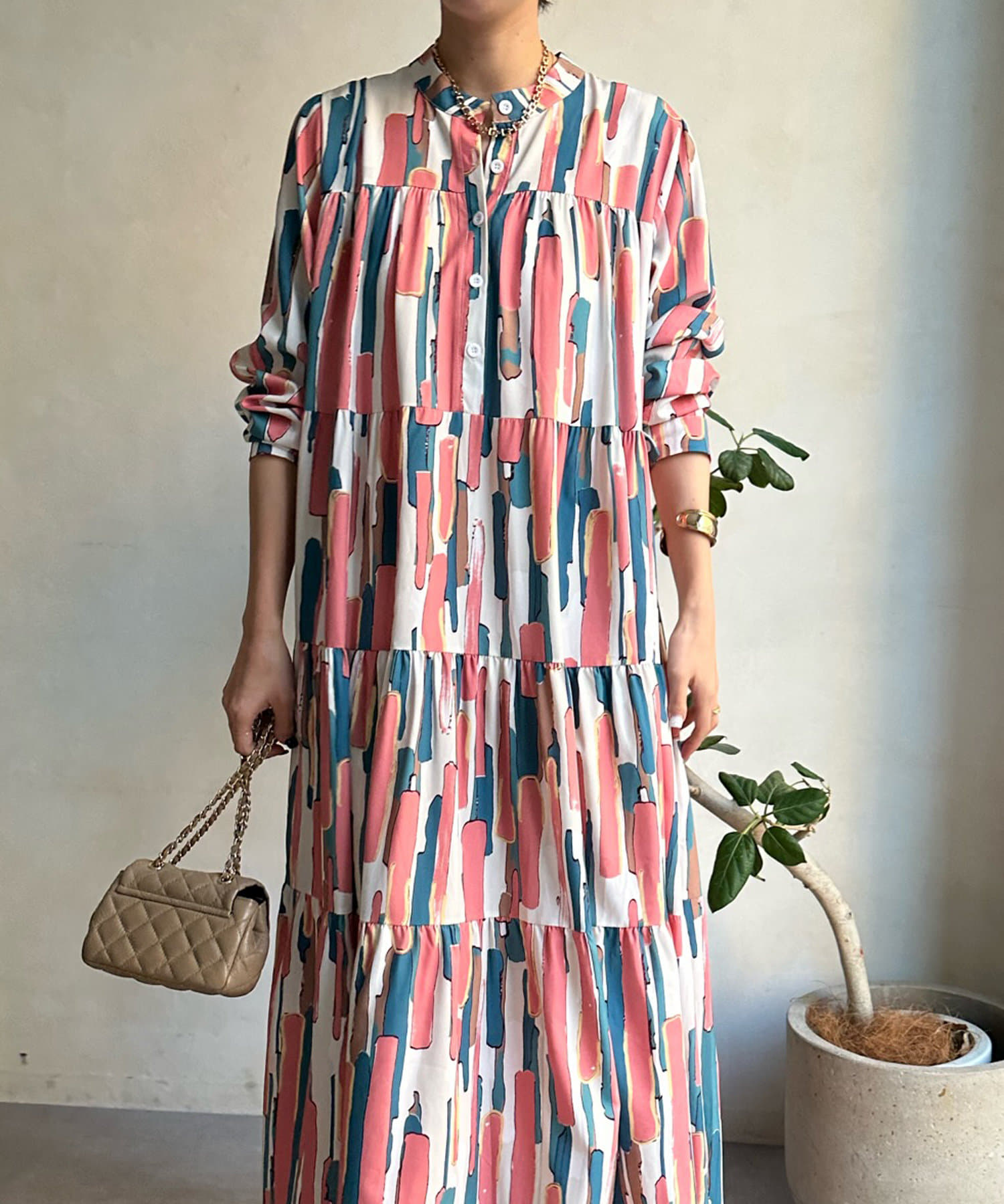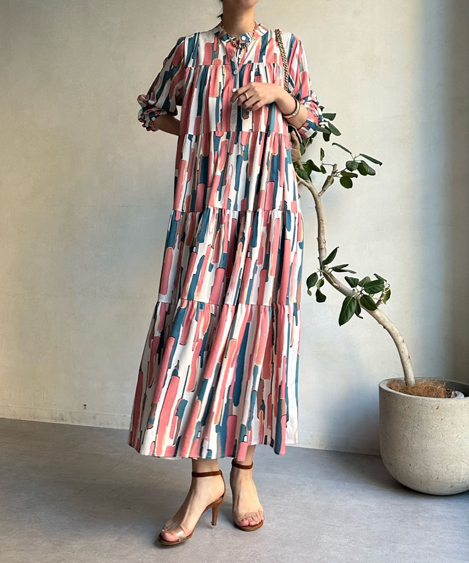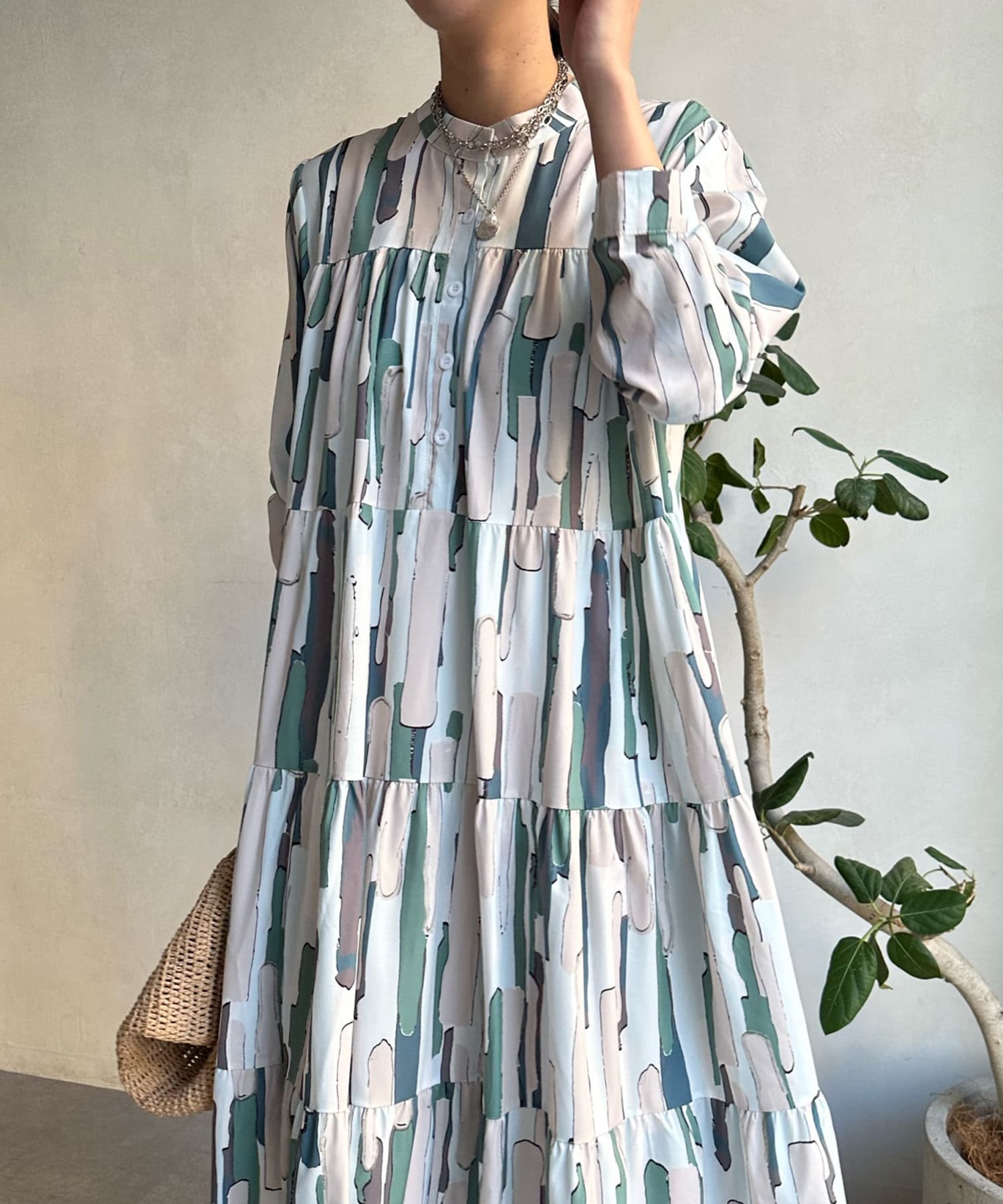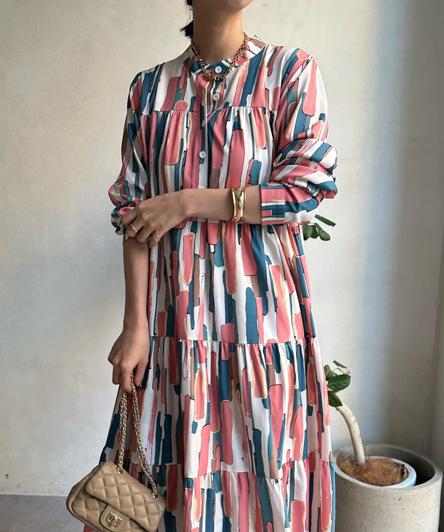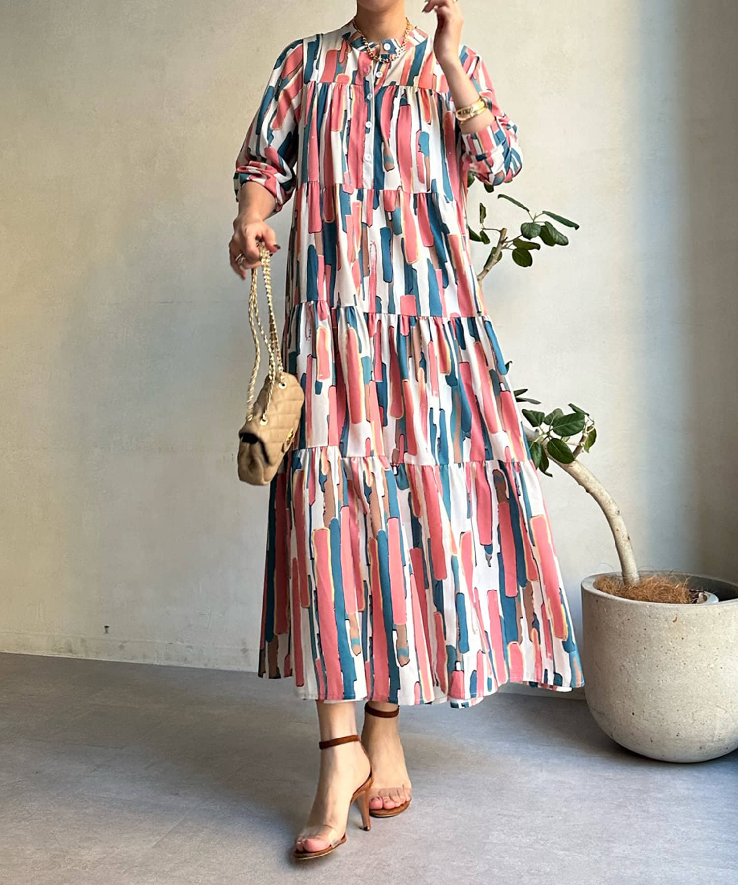 【大人気アイテム!】【WEB限定】 SSプリントティアードワンピース