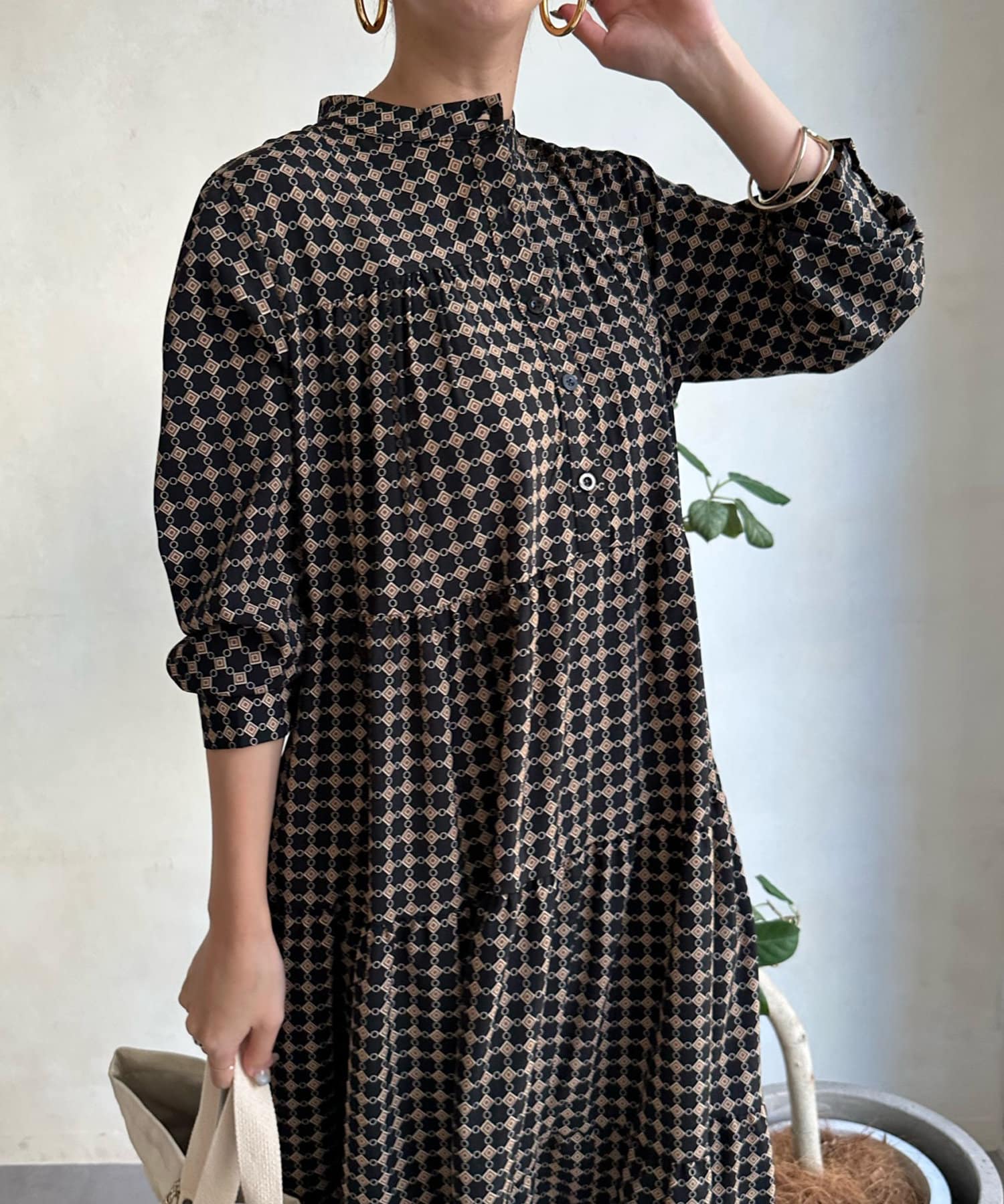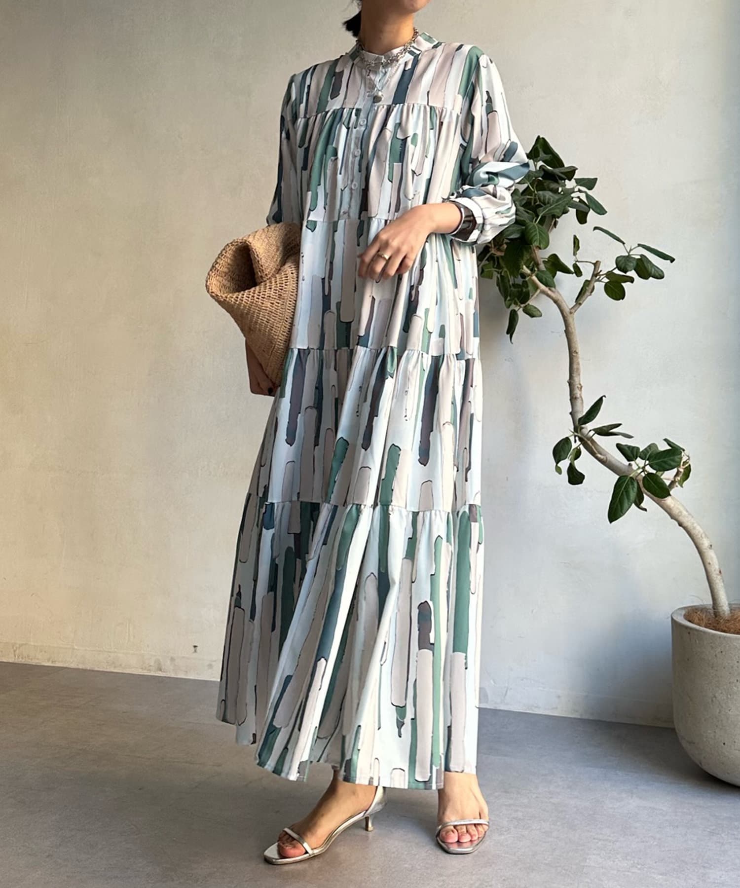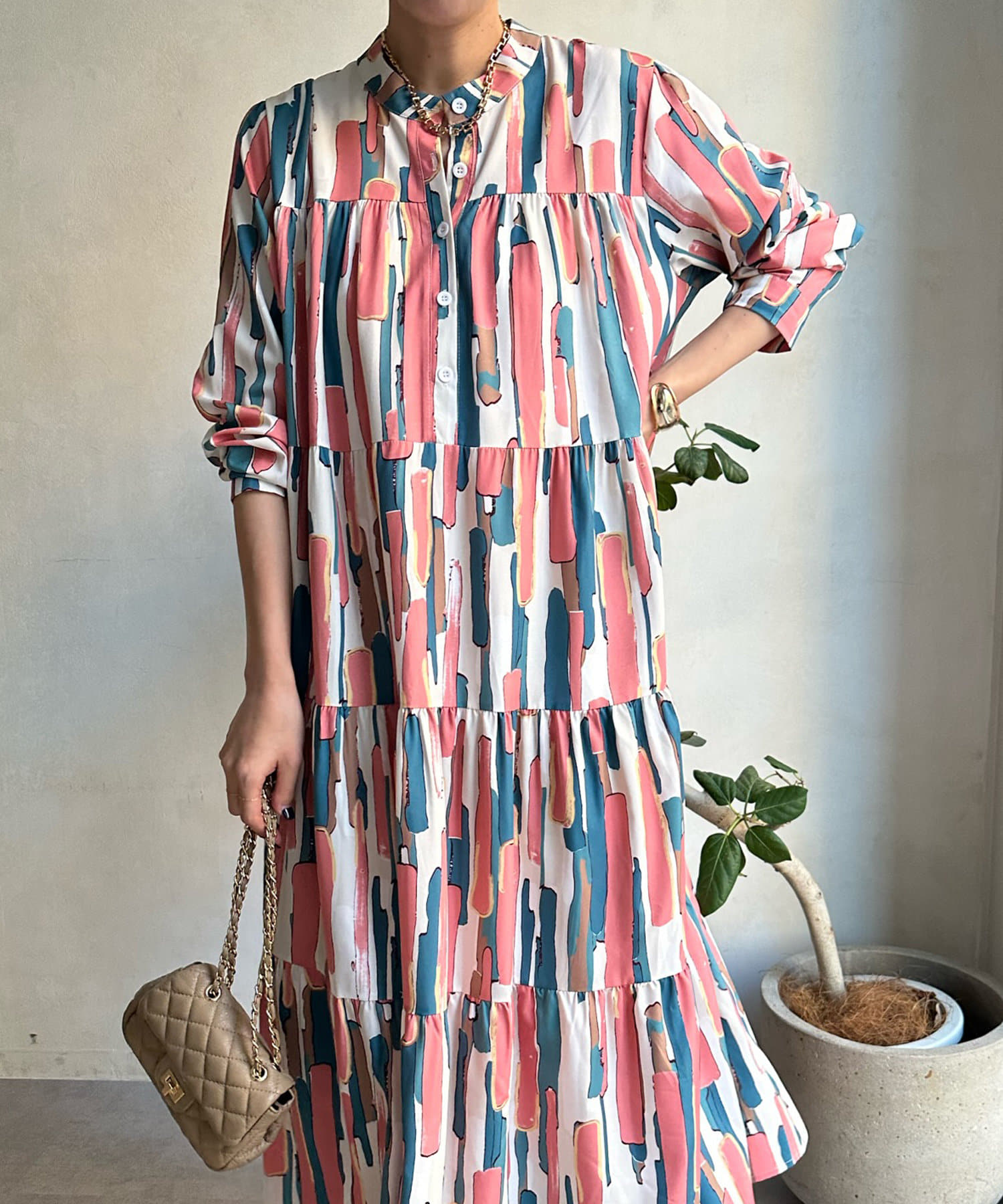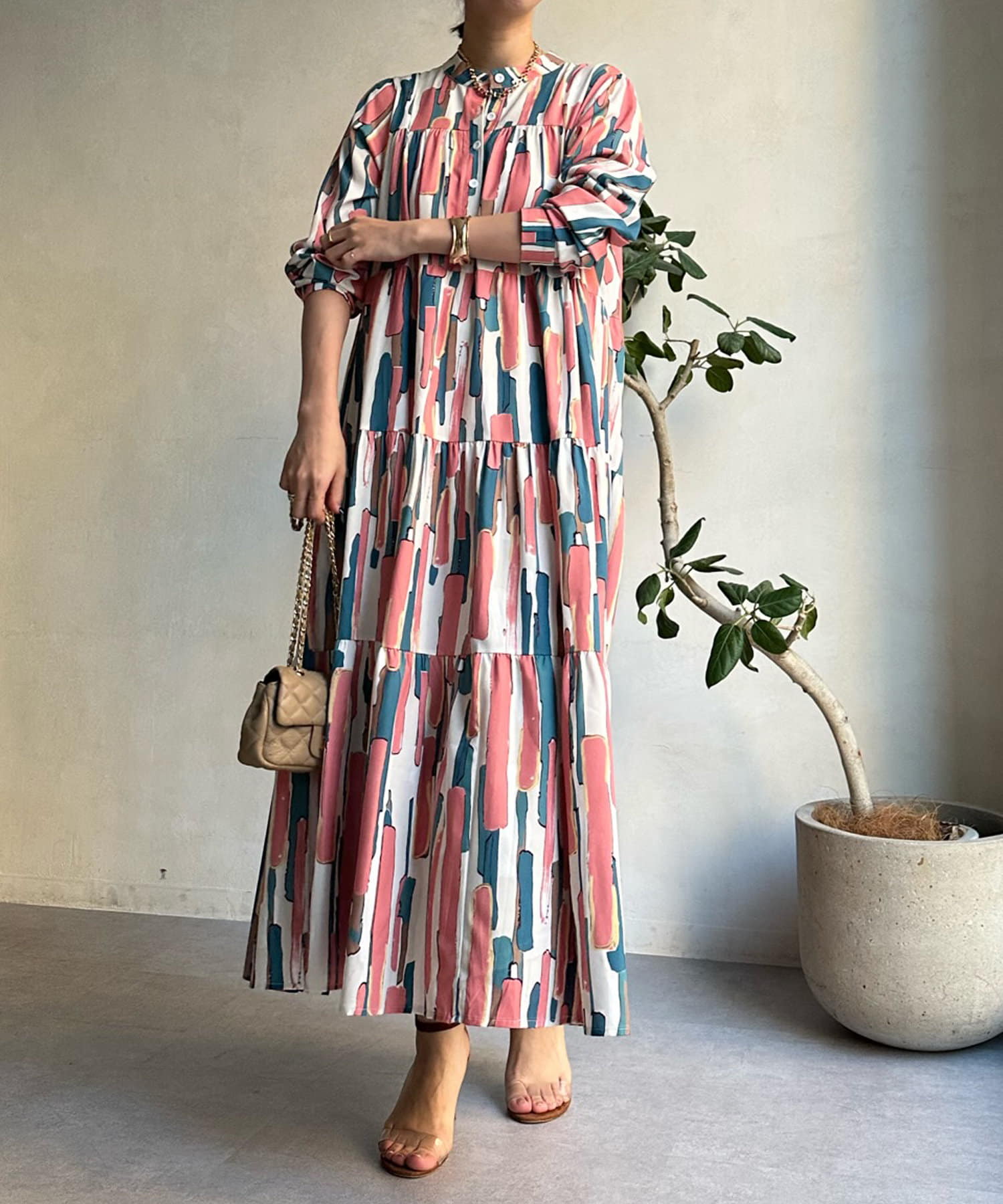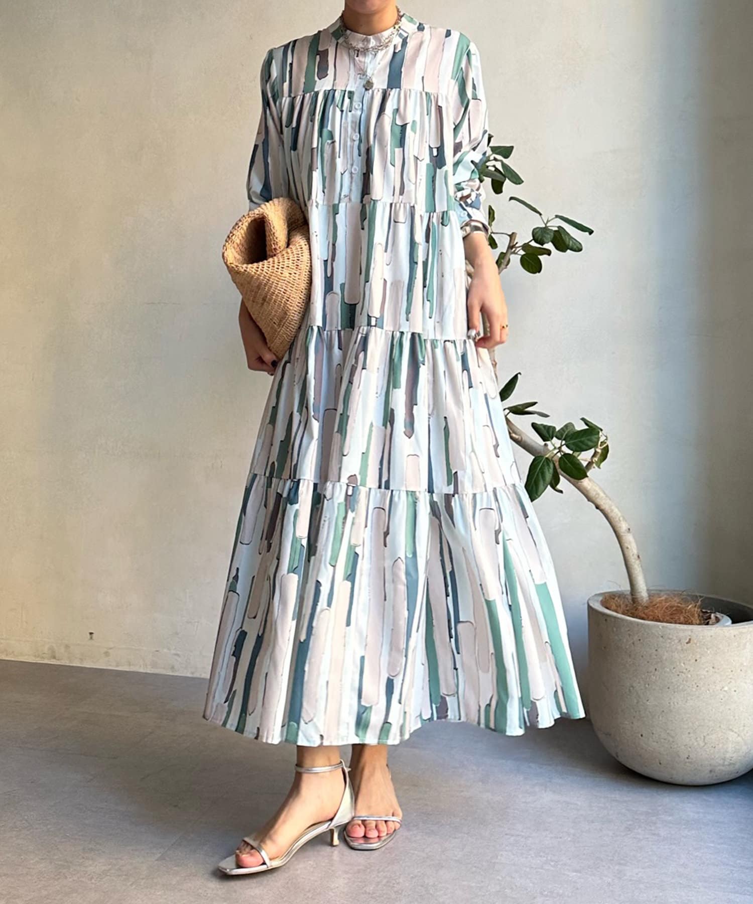 【大人気アイテム!】【WEB限定】 SSプリントティアードワンピース