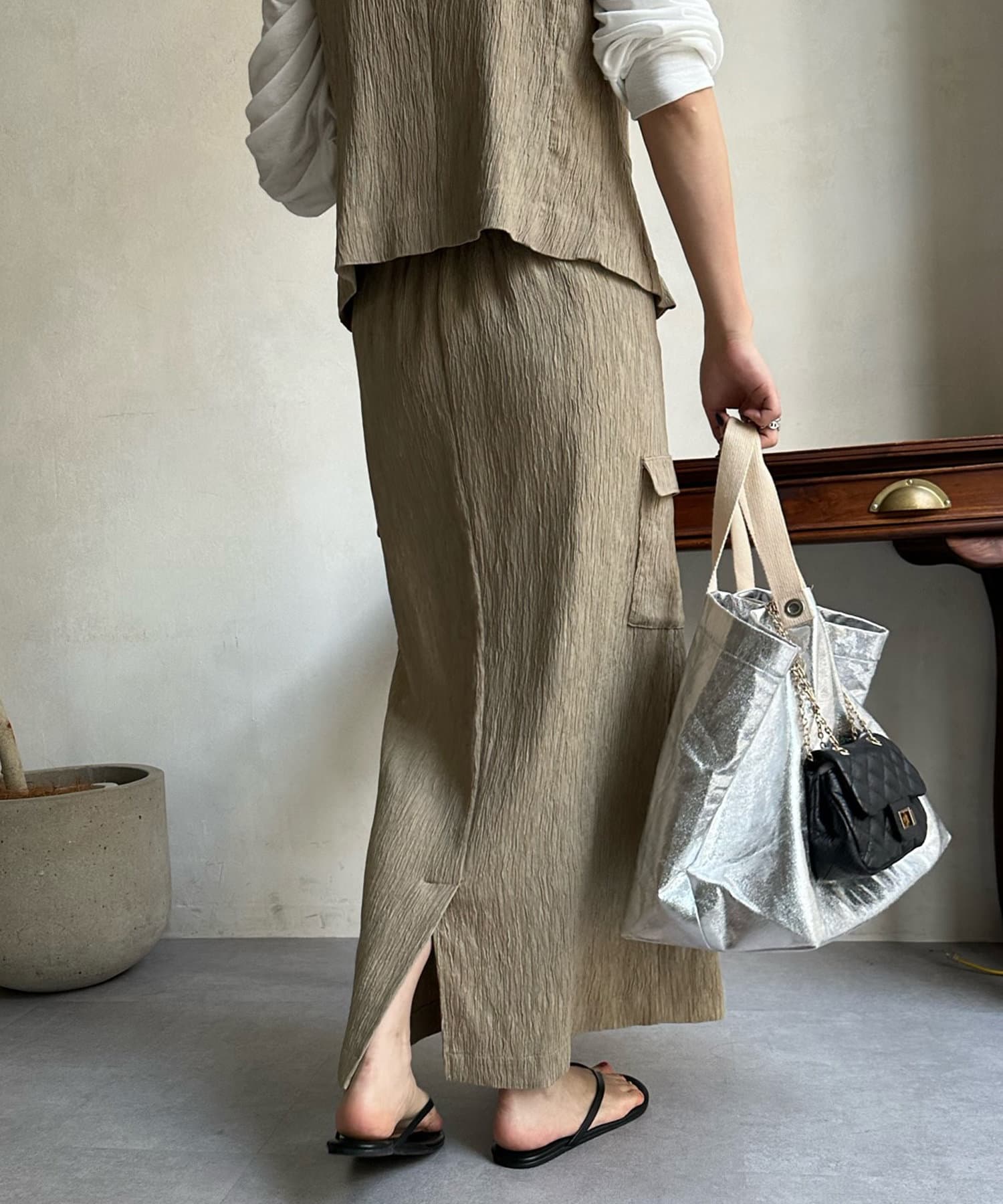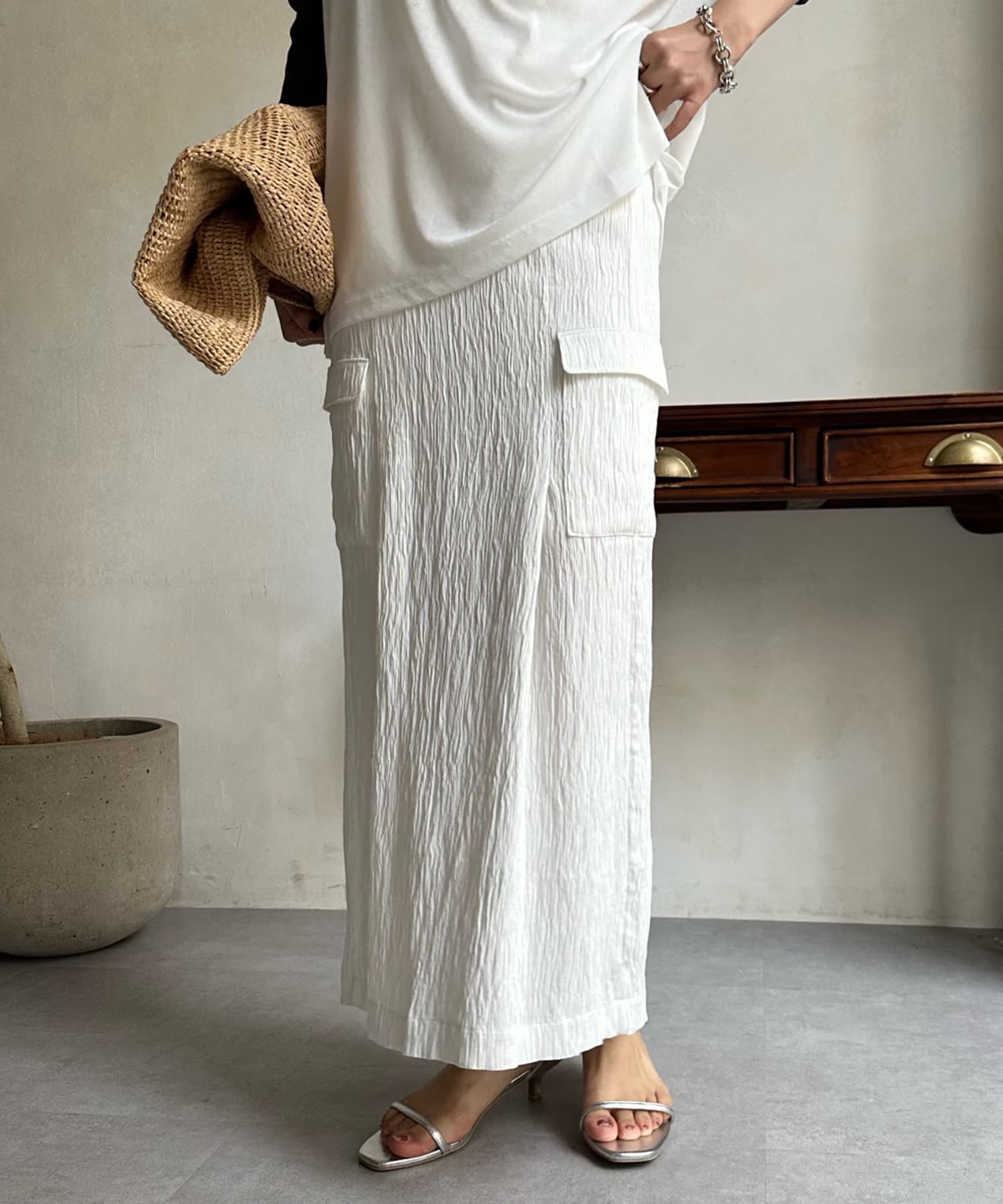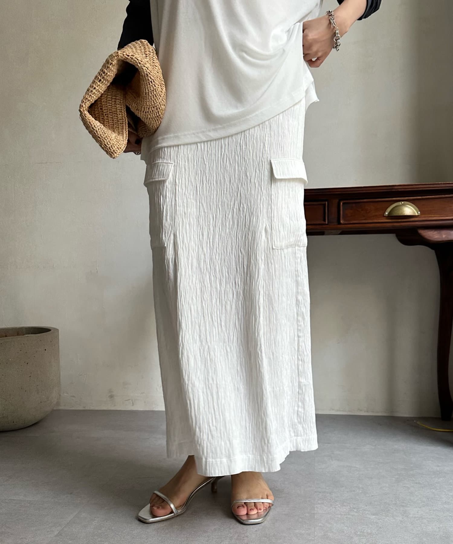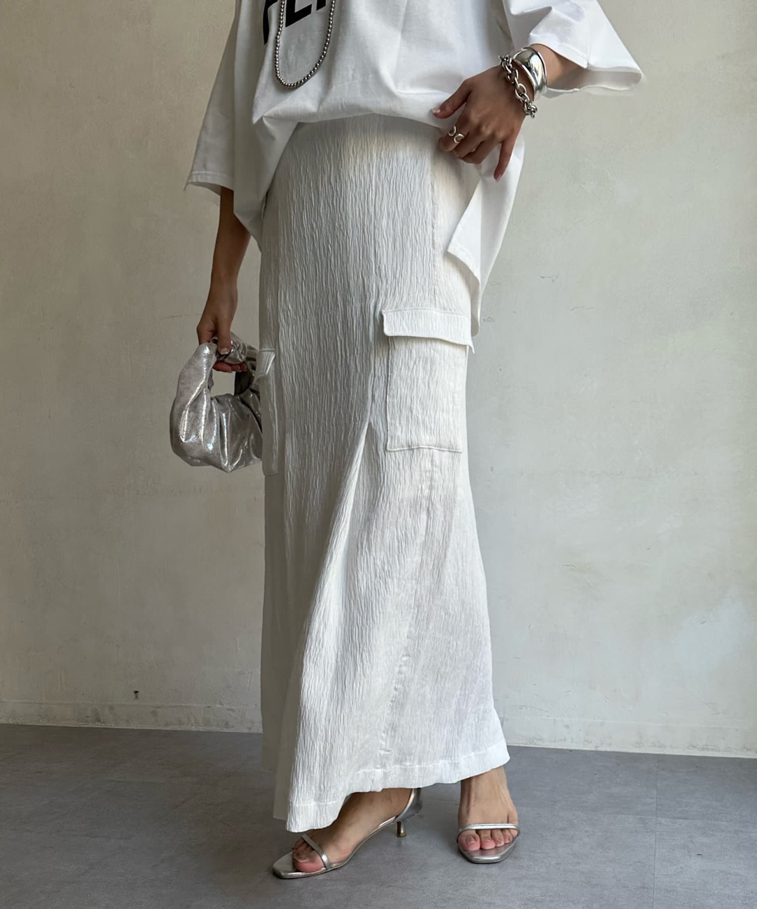 【WEB限定】シワ加工カーゴスカート