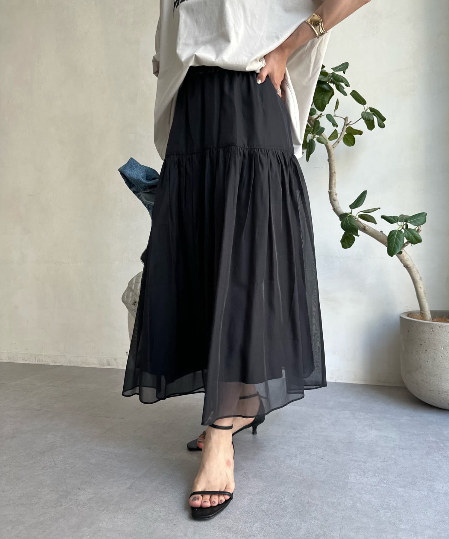 オーガンジーティアードスカート