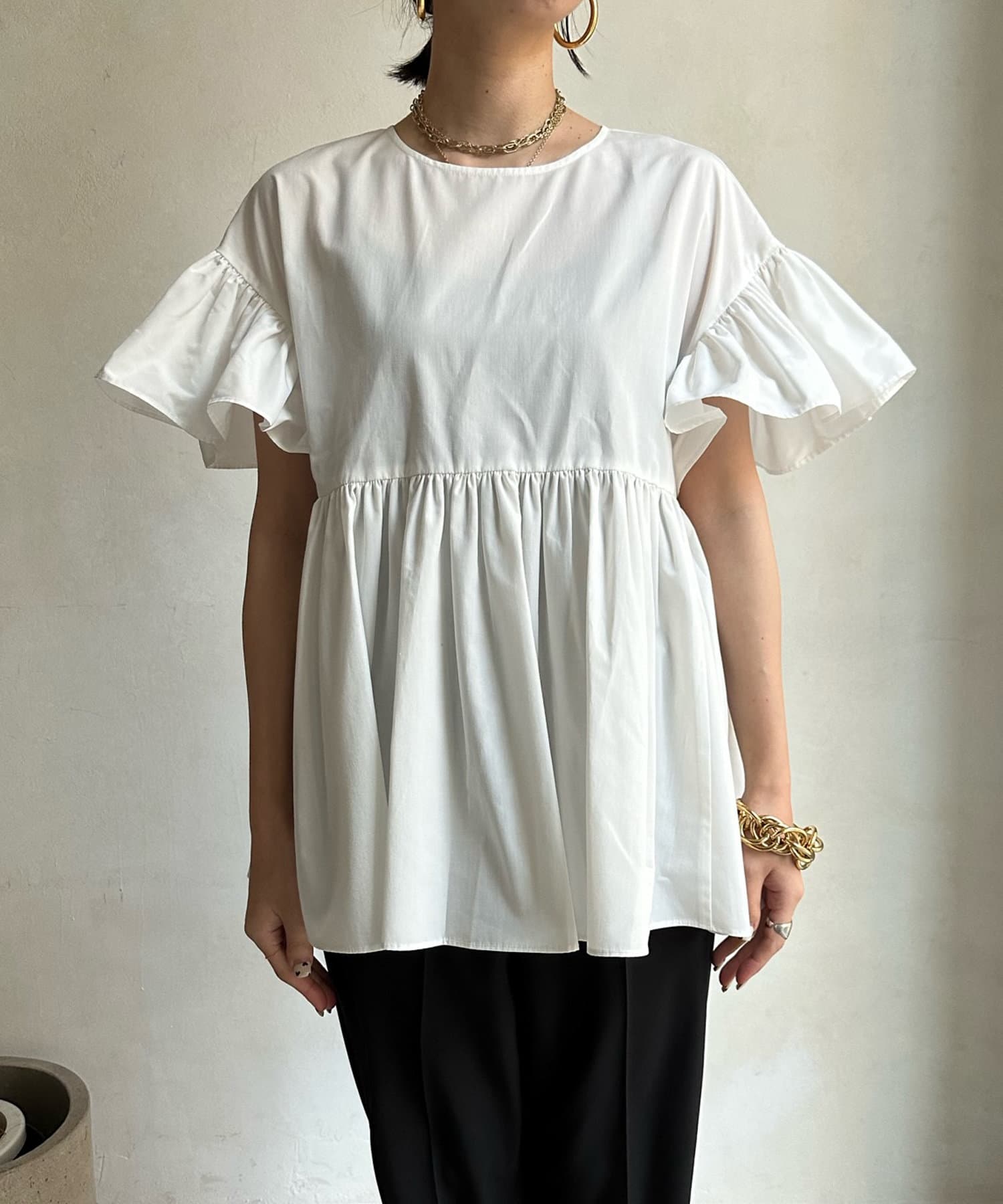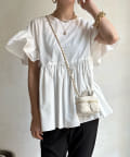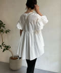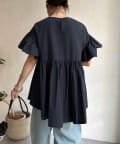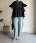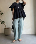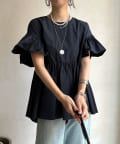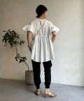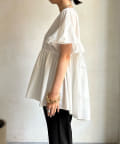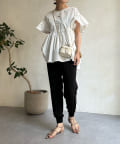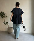 ハイウエスト切替からたっぷりのギャザーでペプラムなシルエットになっており、ウエスト、腰回りをきれいに隠してくれます。