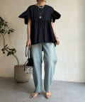 フェミニン要素満載のデザイントップスなので、シンプルなデニムやチノパン、カラースカートなどとあわせるだけでぱっと華やぎますよ。