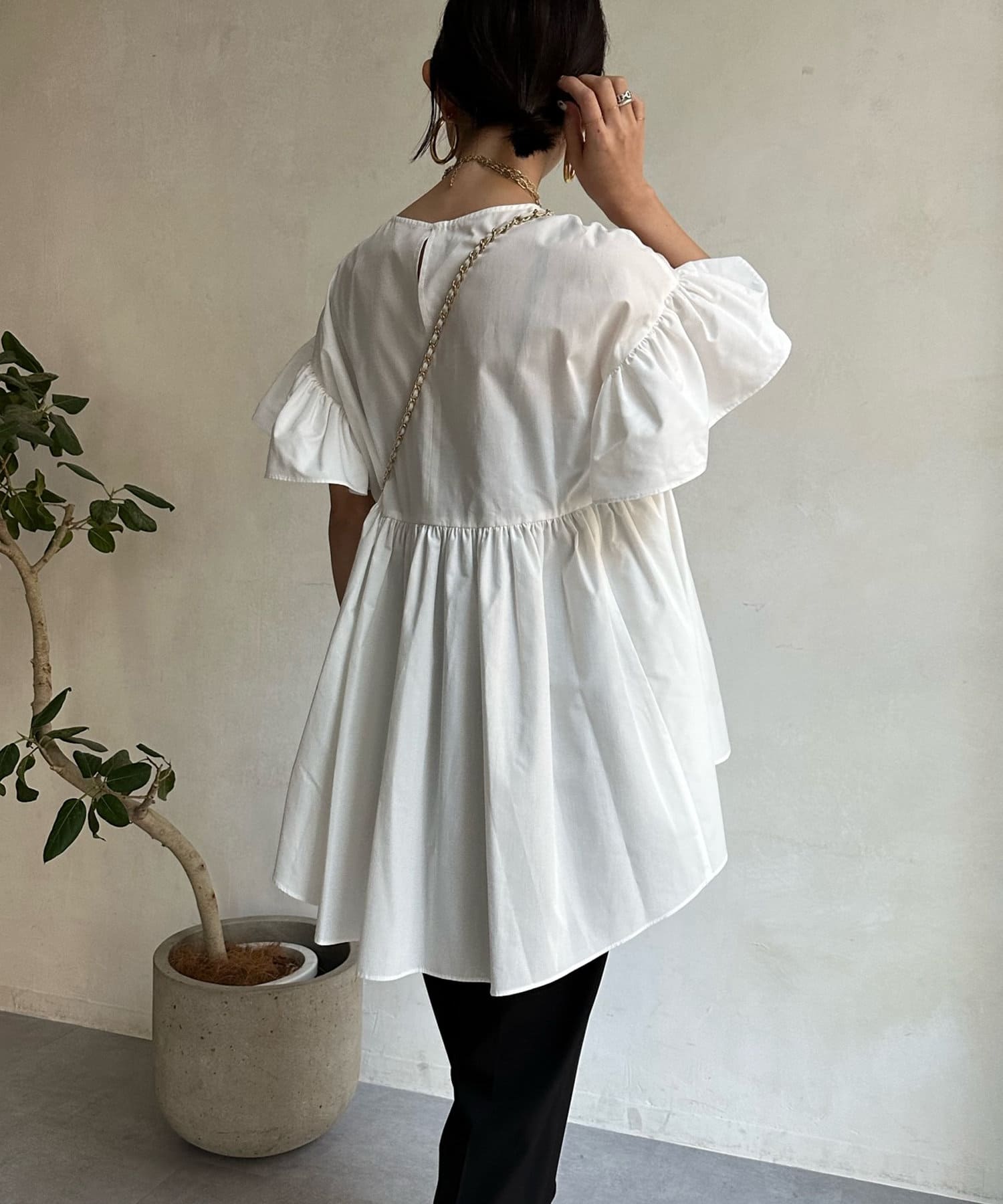 また、ボリューミーなフリル袖がさり気なく二の腕カバーにも◎