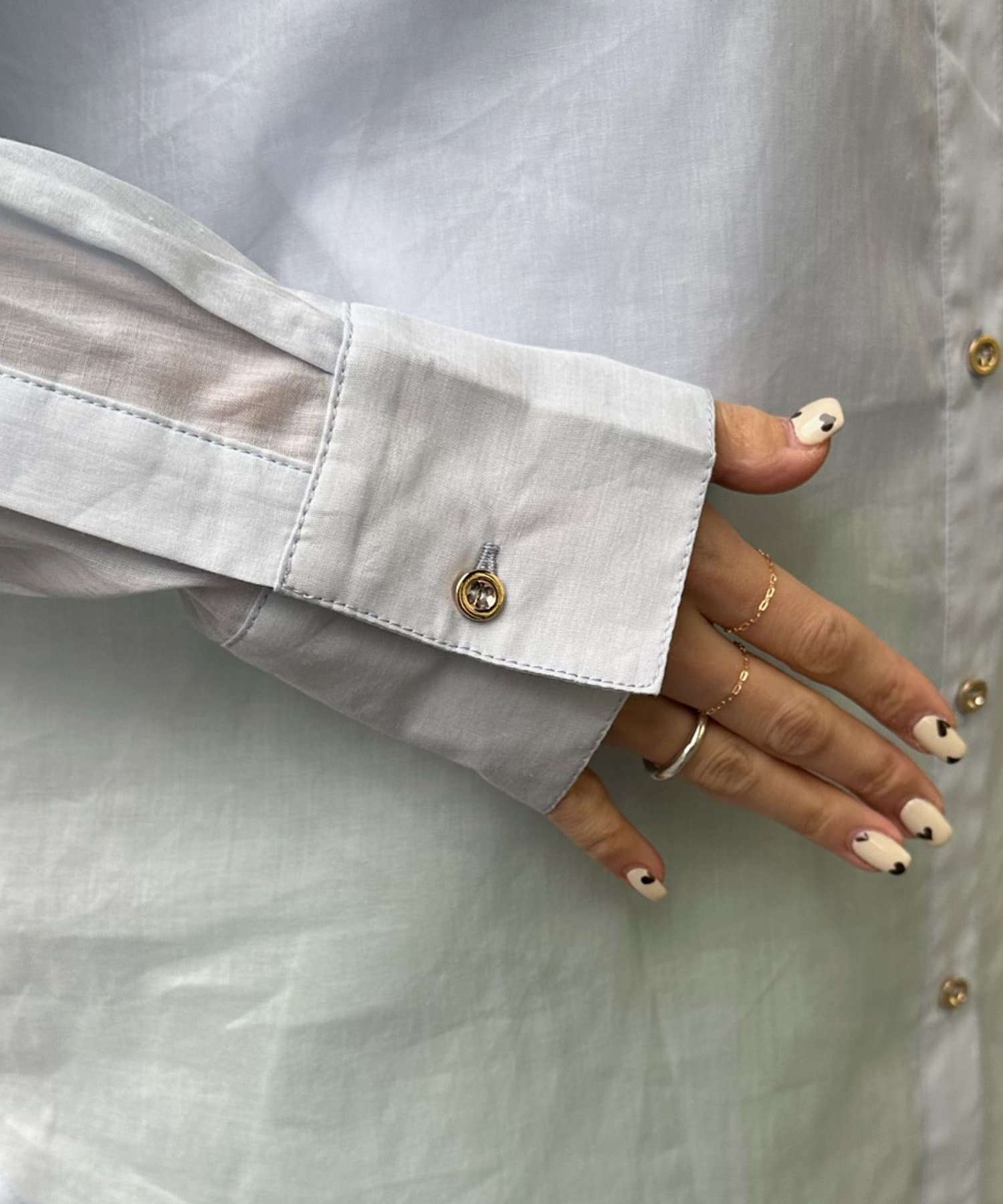 ゴールドのボタンもカジュアルな中でも女性らしさがあってお気に入りです。