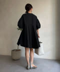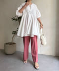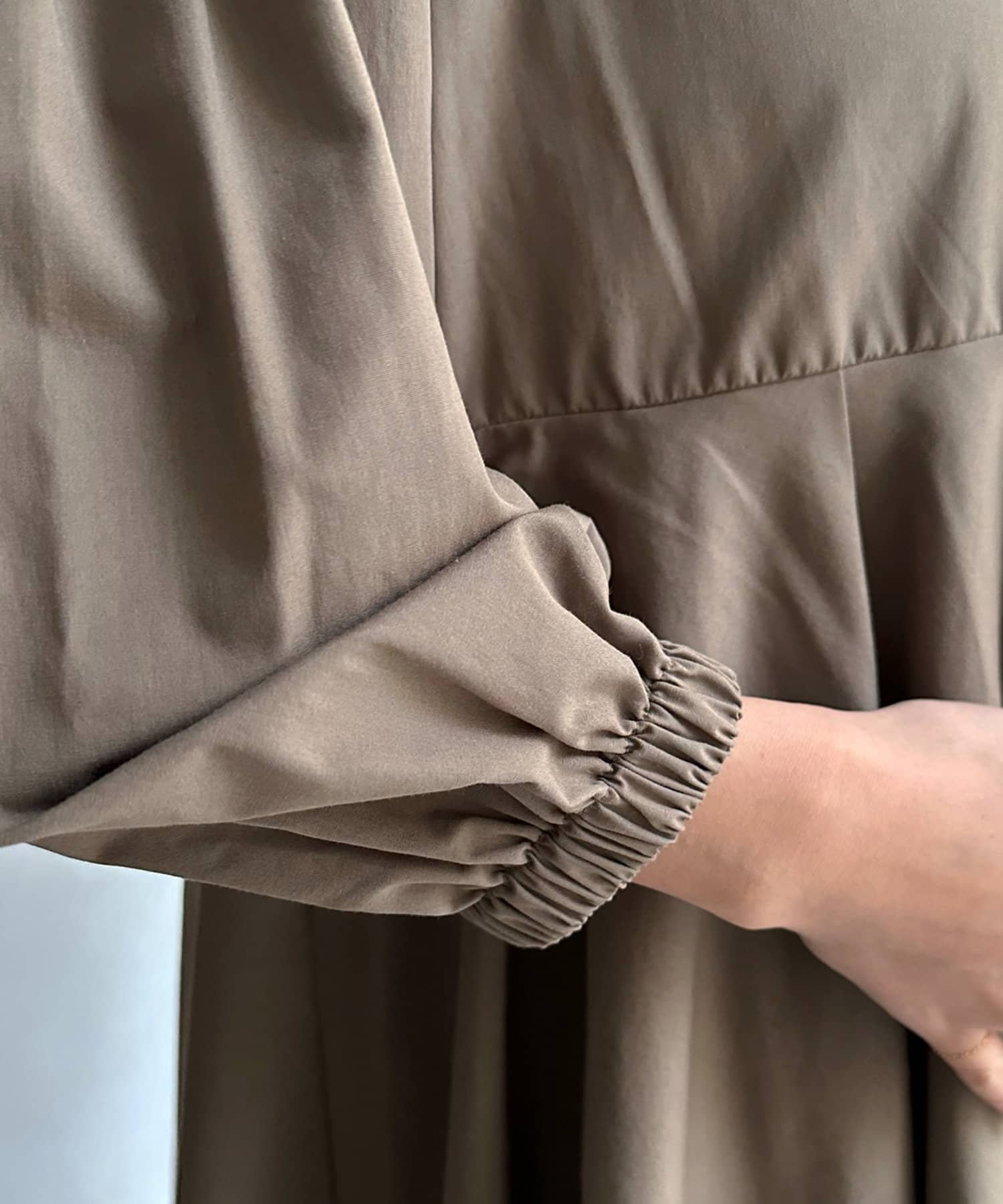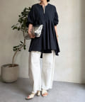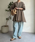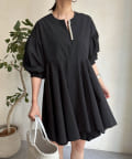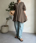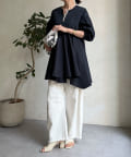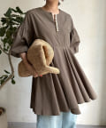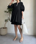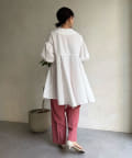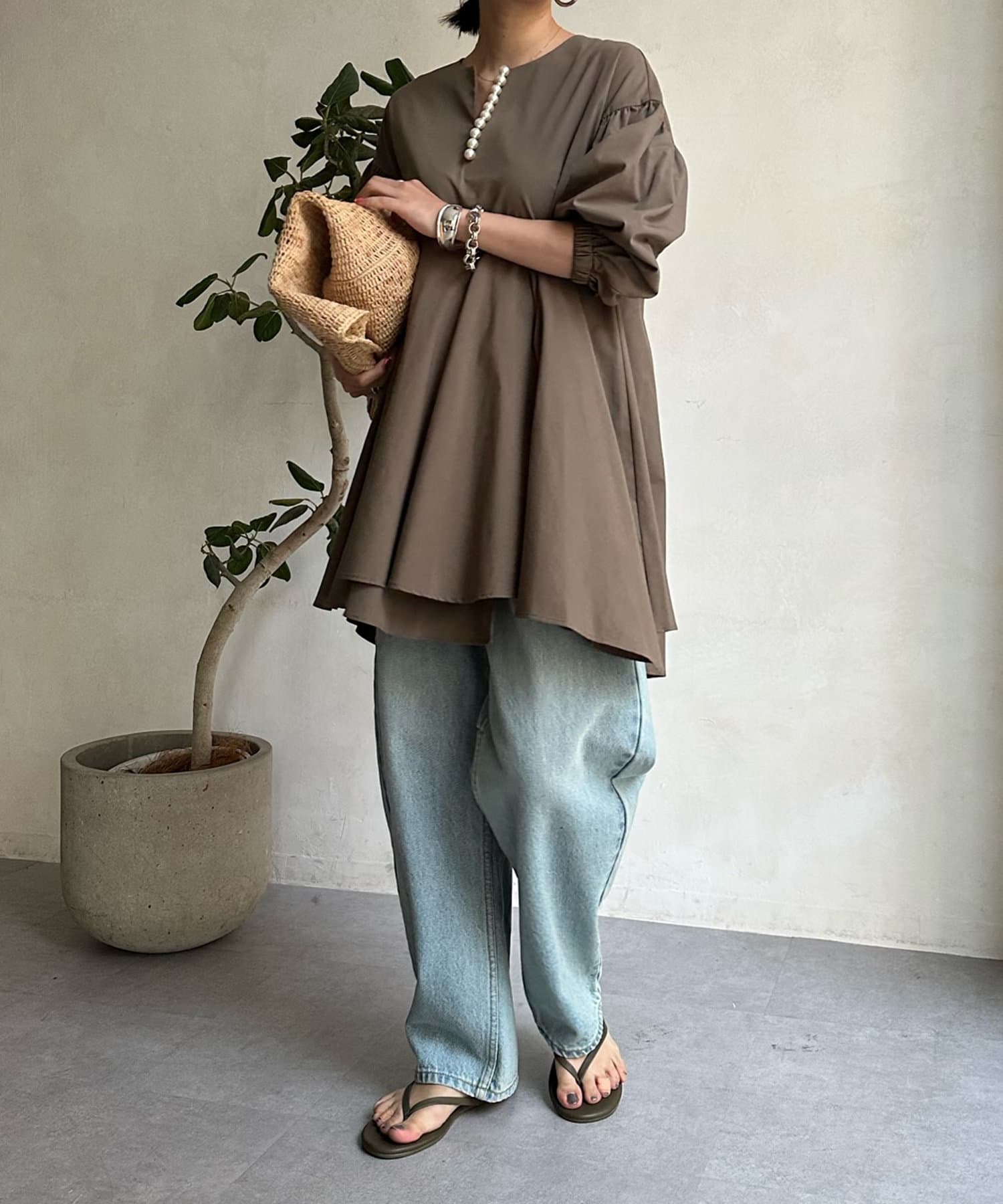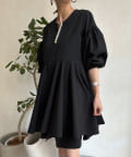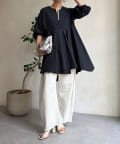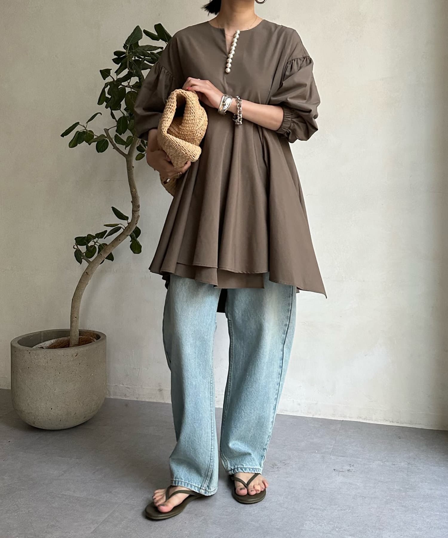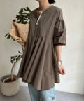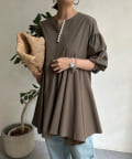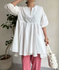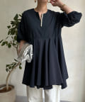 ボリューム感のあるお袖と、ギャザーたっぷりのチュニック丈が女性らしさ抜群の1着。
