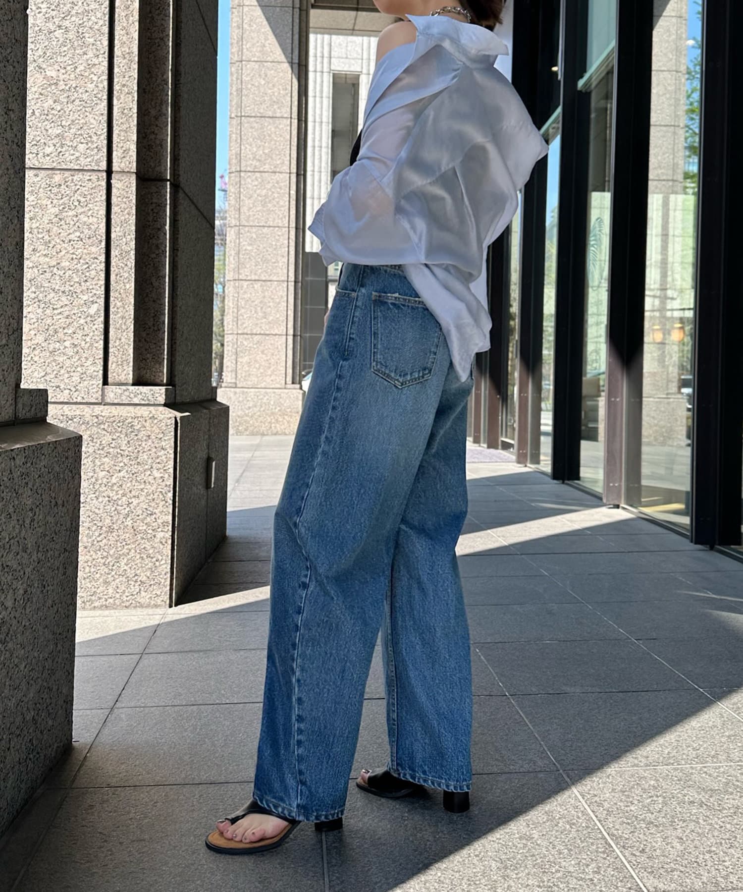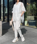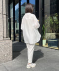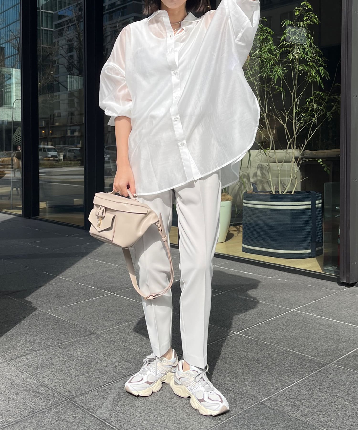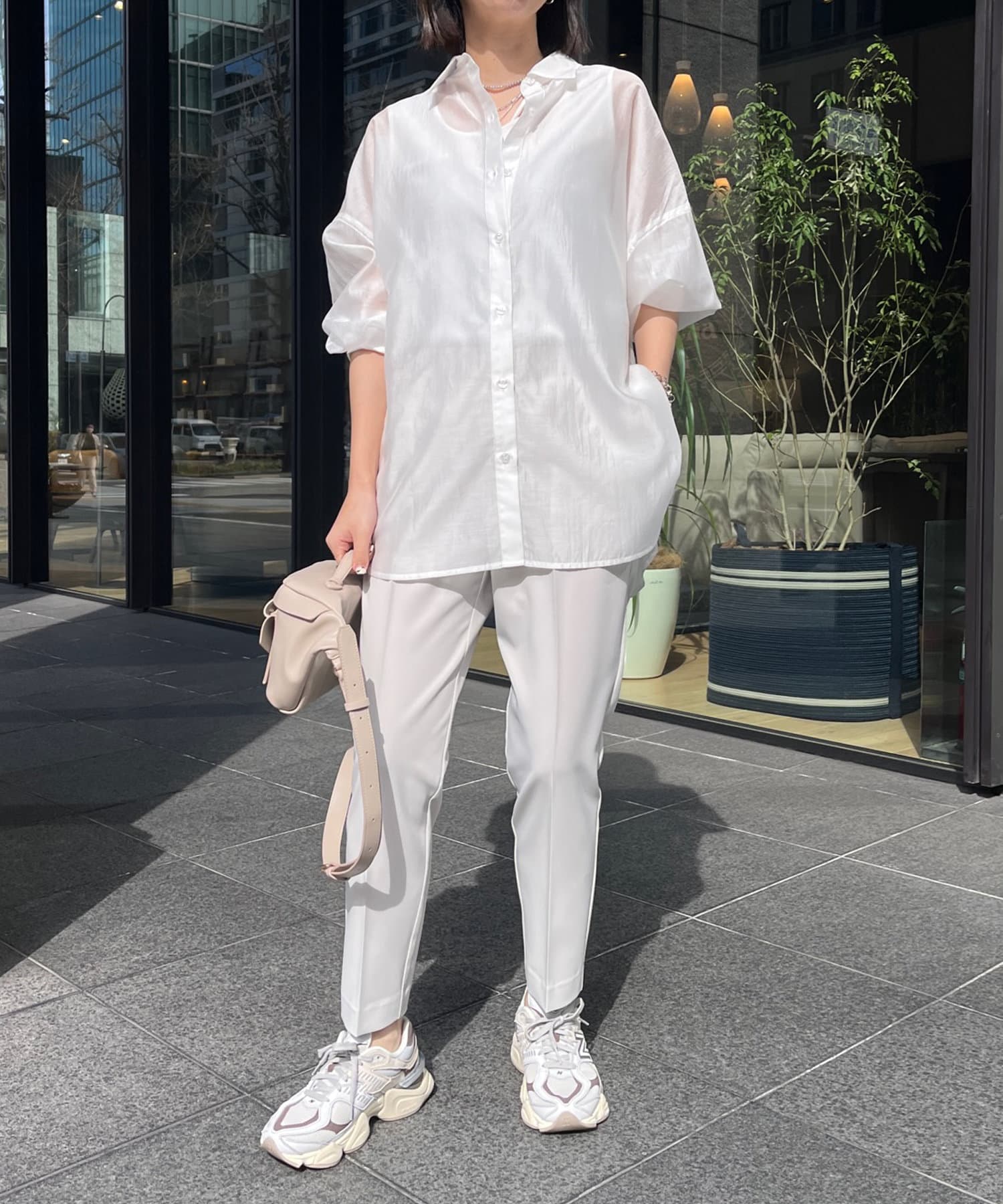 今年気分な襟付きデザインに程よくルーズなシルエットは、身体のラインを拾わず、抜け感のある大人のナチュラルなスタイルを演出。