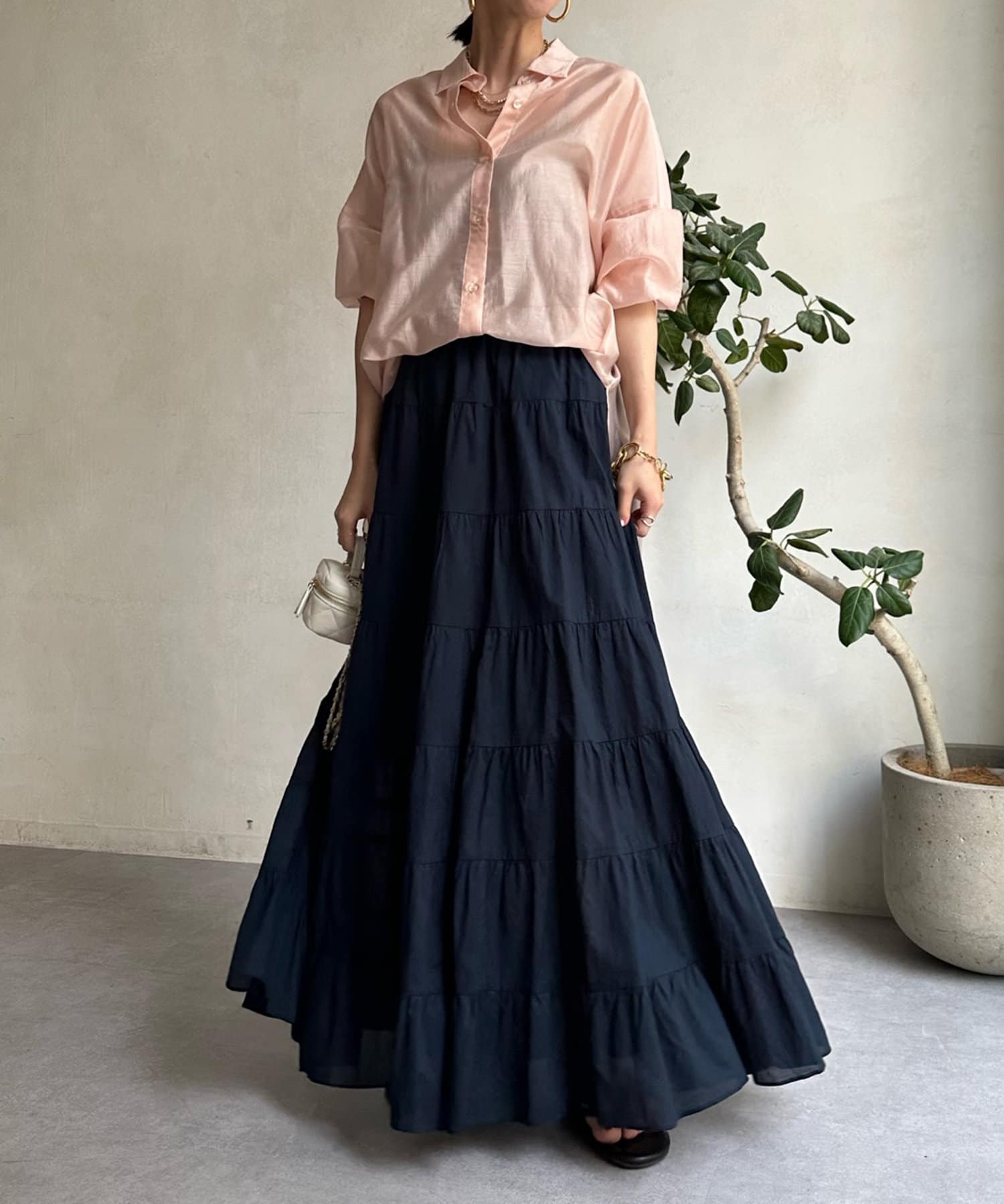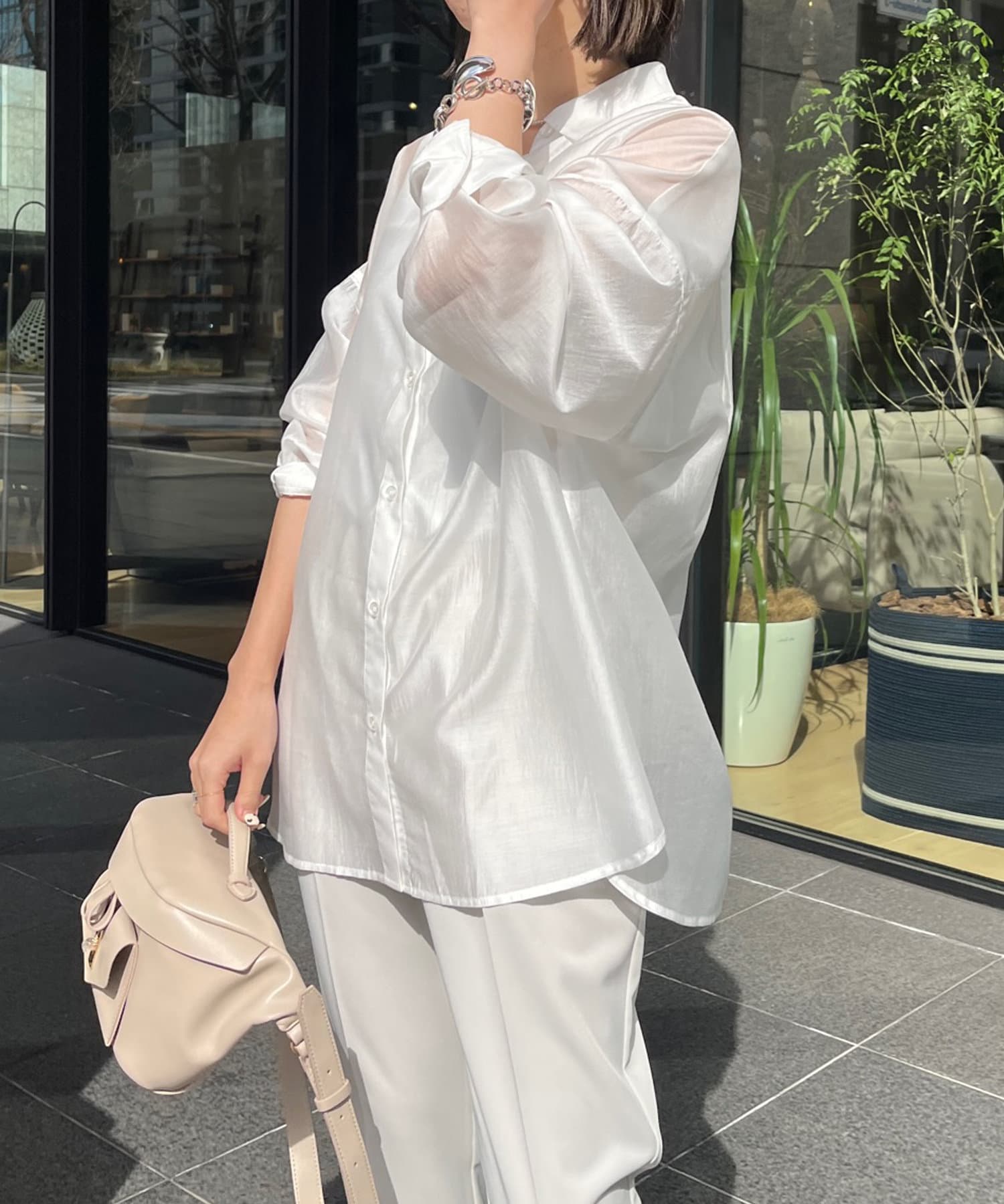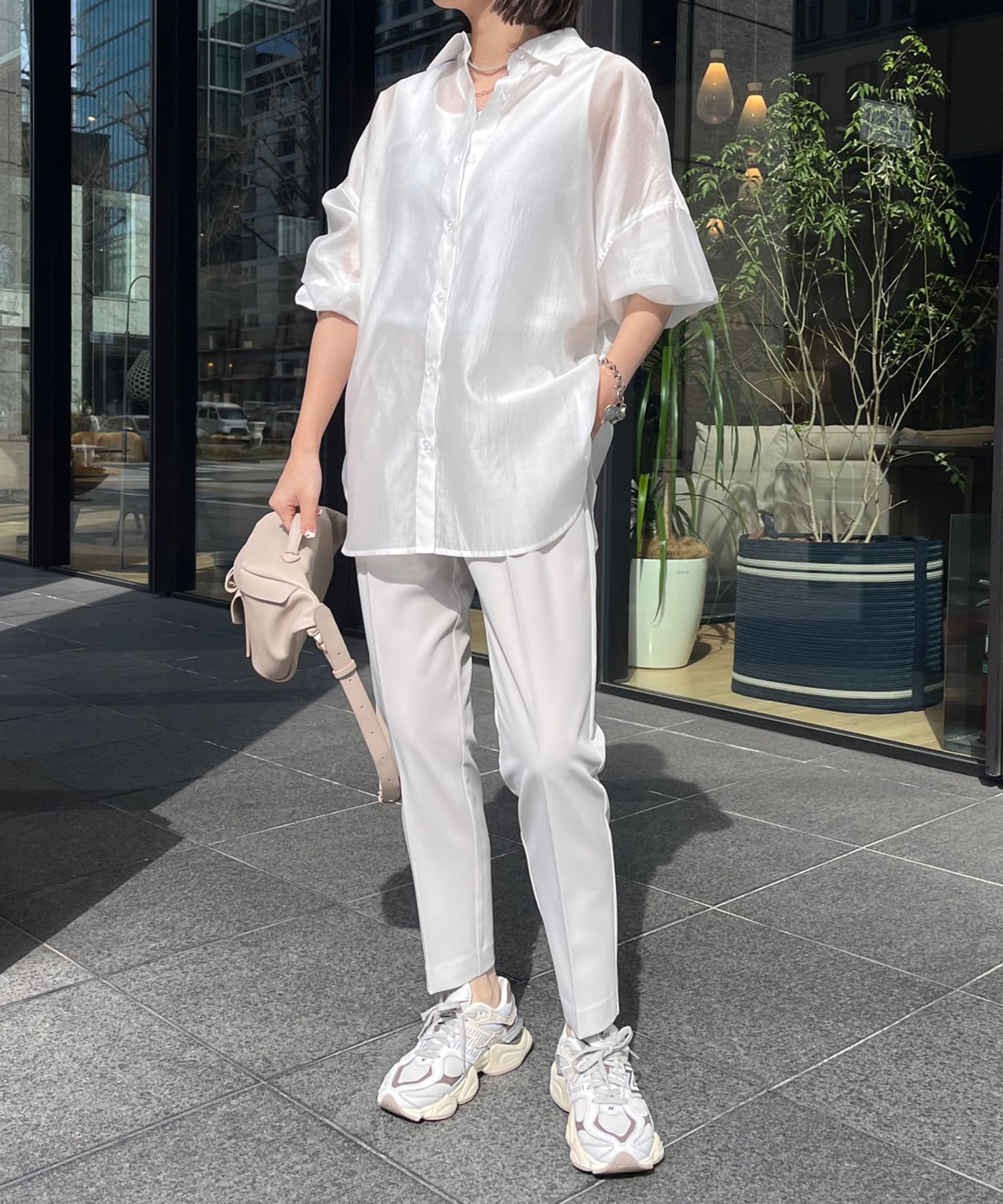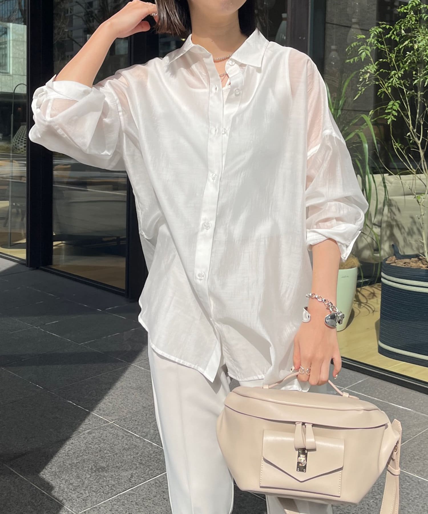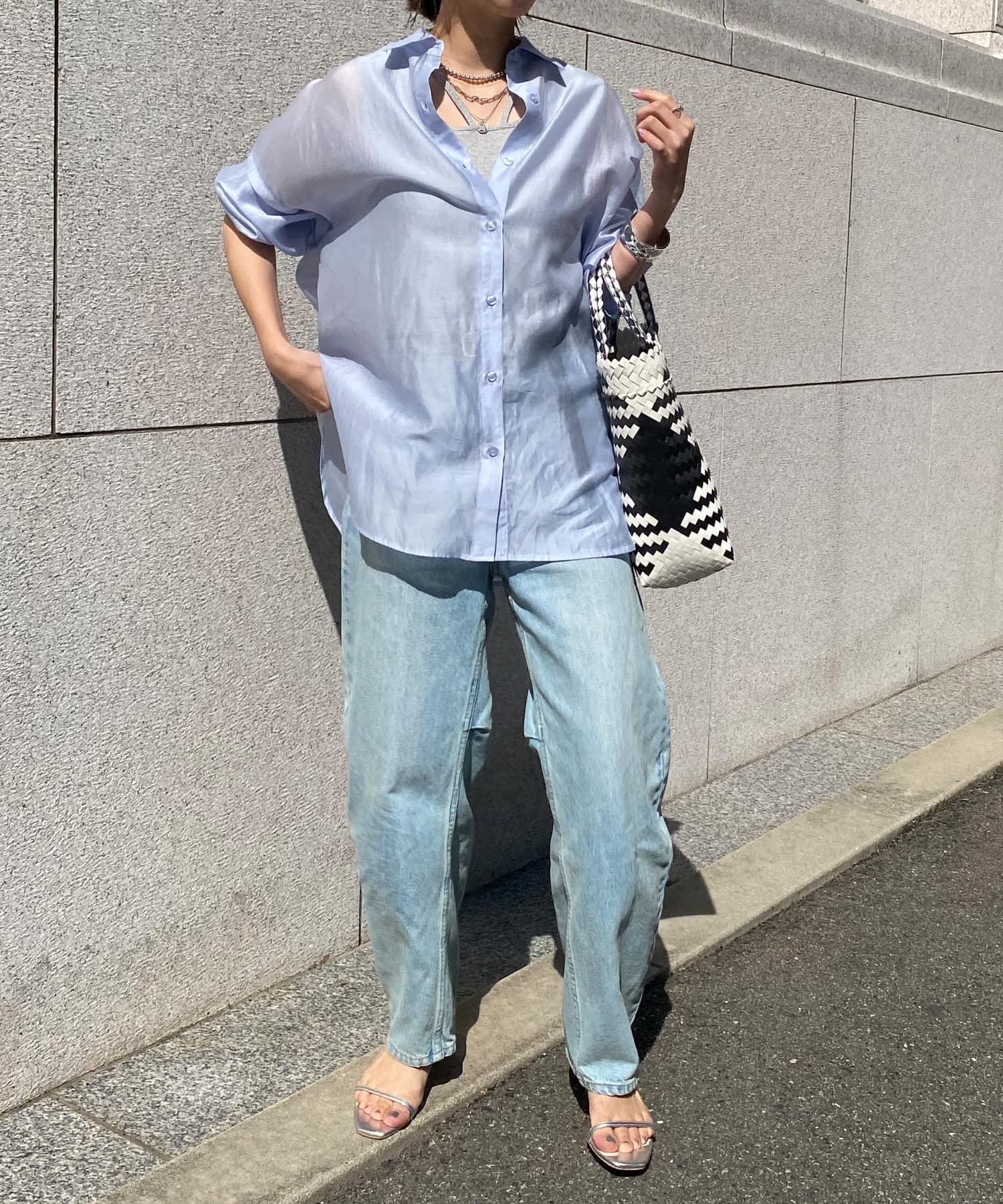 絶妙なシアー感とさり気ない光沢が、ノースリーブなどにサラッと羽織るだけで素肌を綺麗に魅せてくれます。