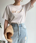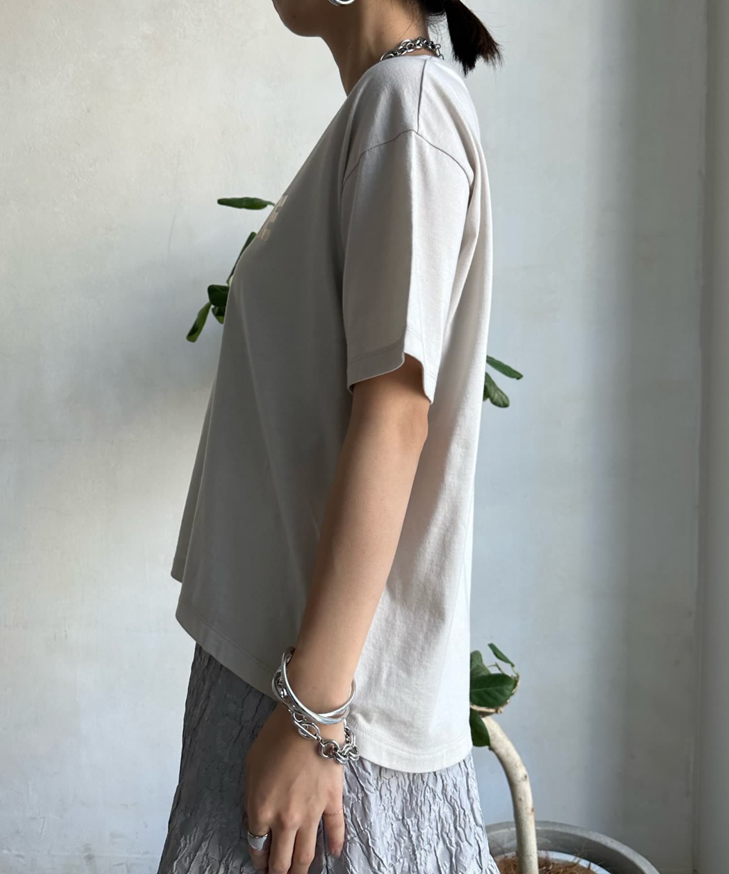シンプルなロゴが、アクセサリーや柄のボトム、カラーアイテムなどと合わせてもうるさくなりすぎない大人なロゴアイテムです。