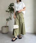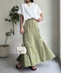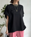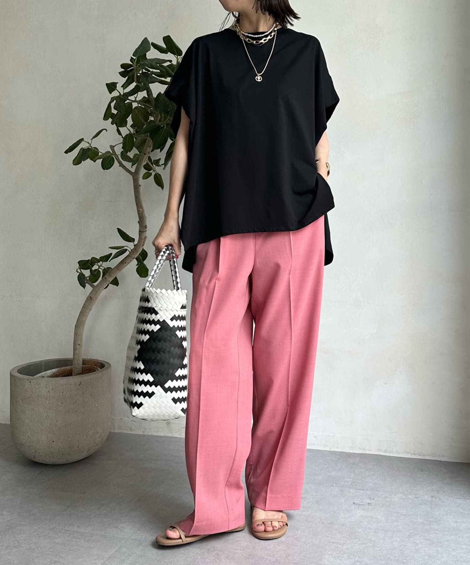 肩のタックと、立体感のあるシルエットが気になるところをカバーしつつ、二の腕部分もすっきり見せてくれます。