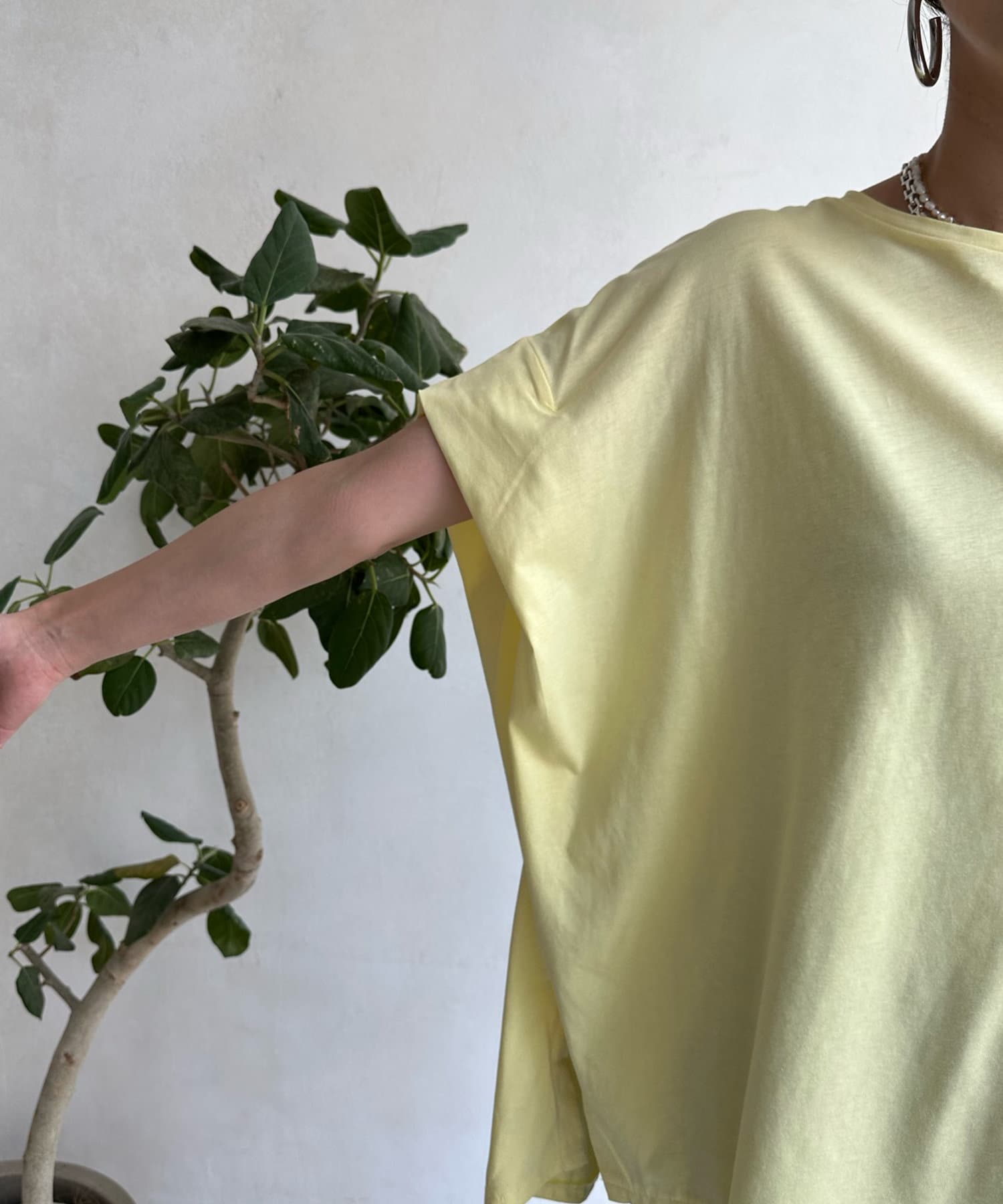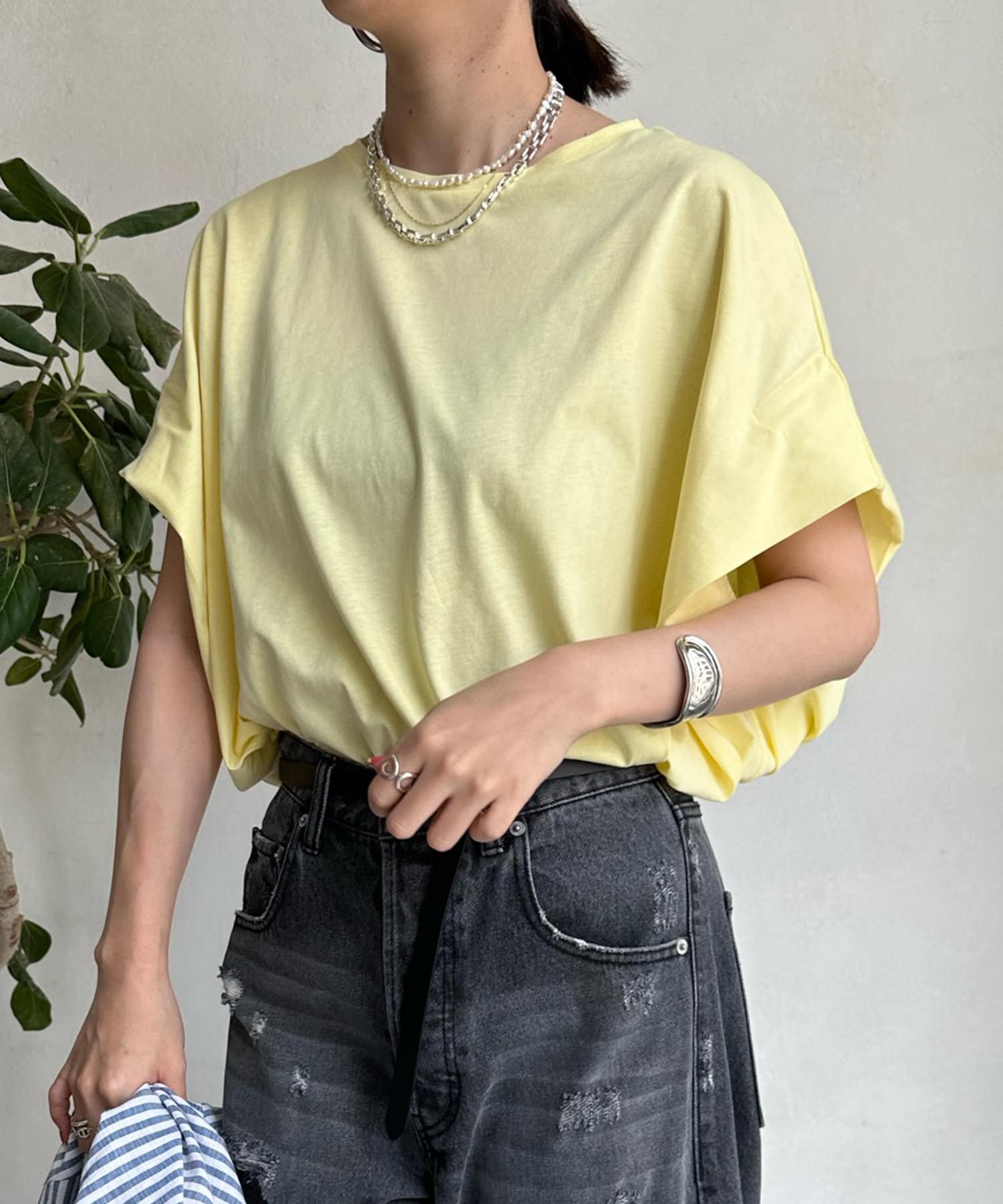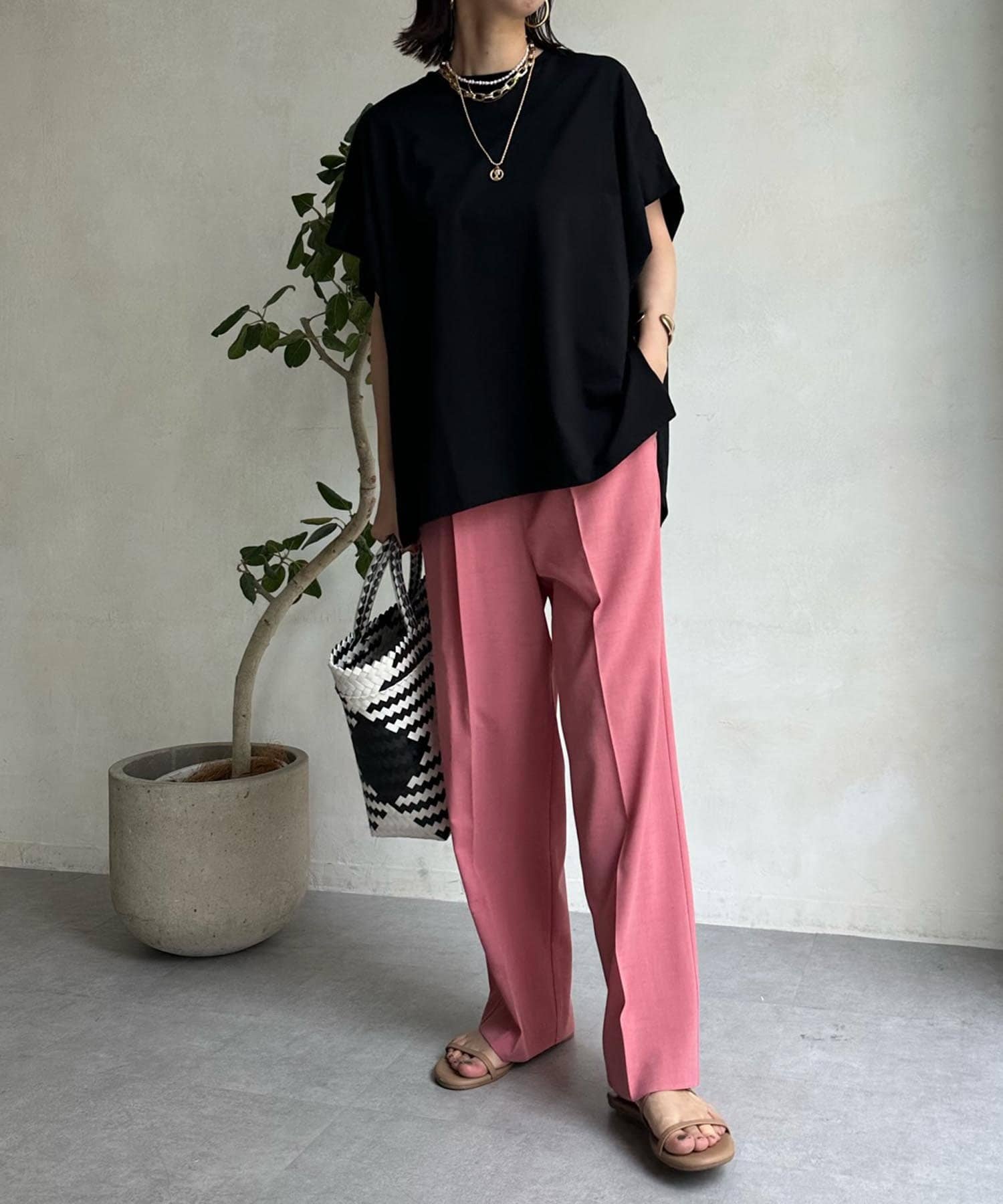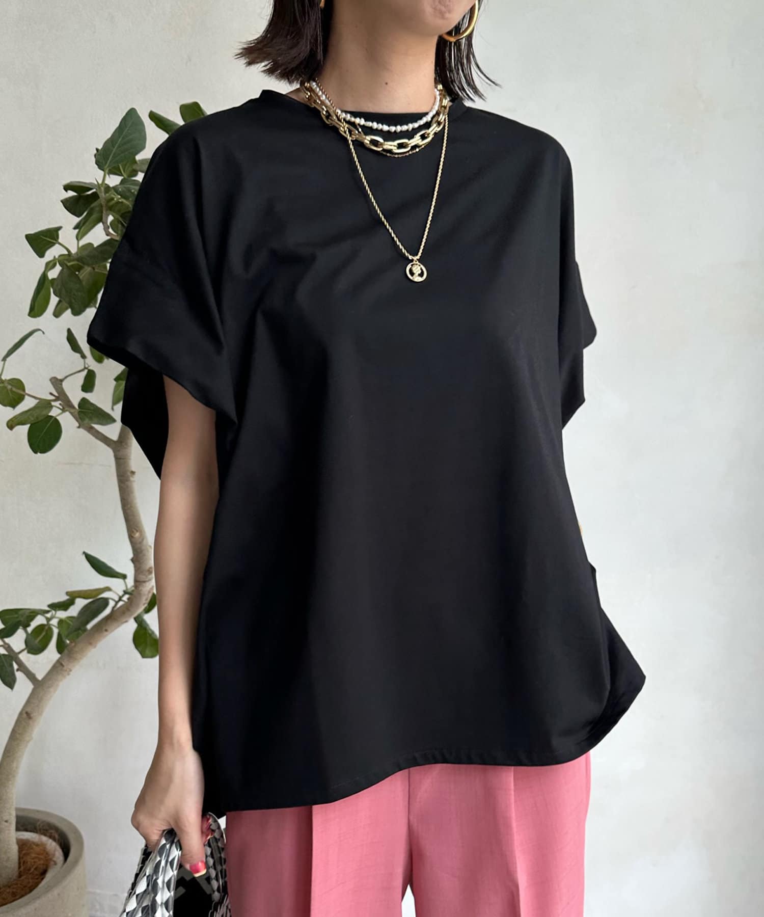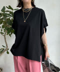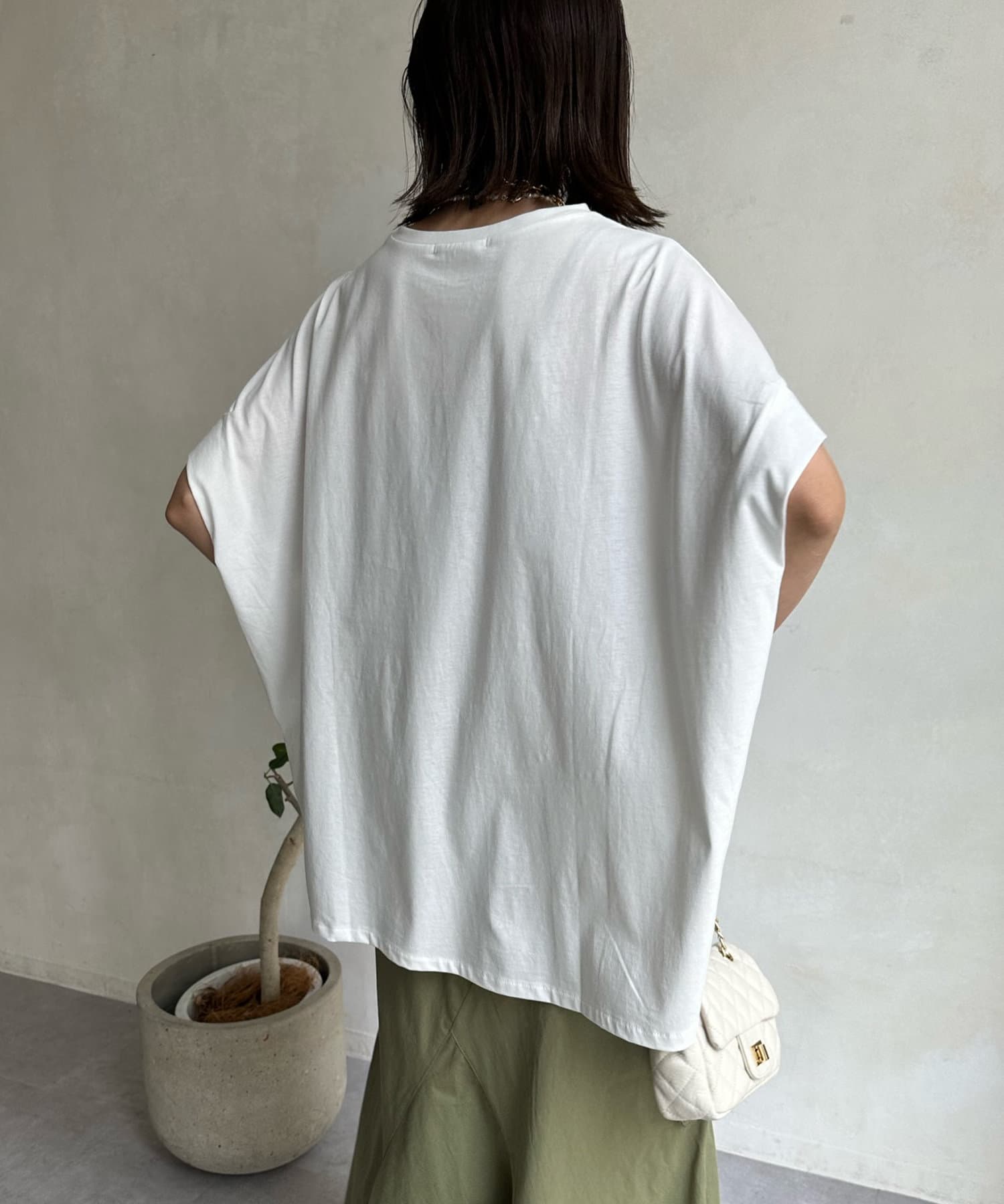 ボディラインを拾わないオーバーサイズで、綿100%とリラクシーな着心地なのもおすすめポイント〇