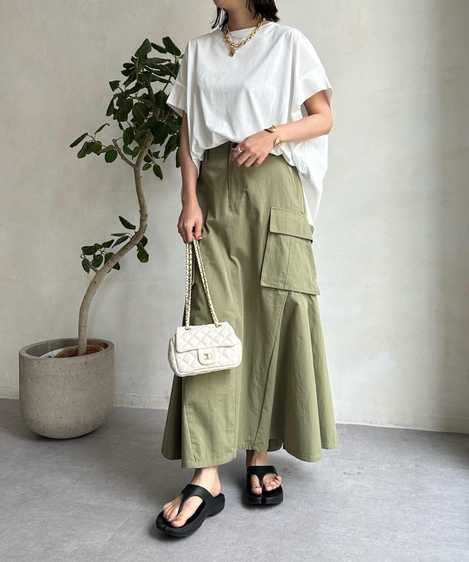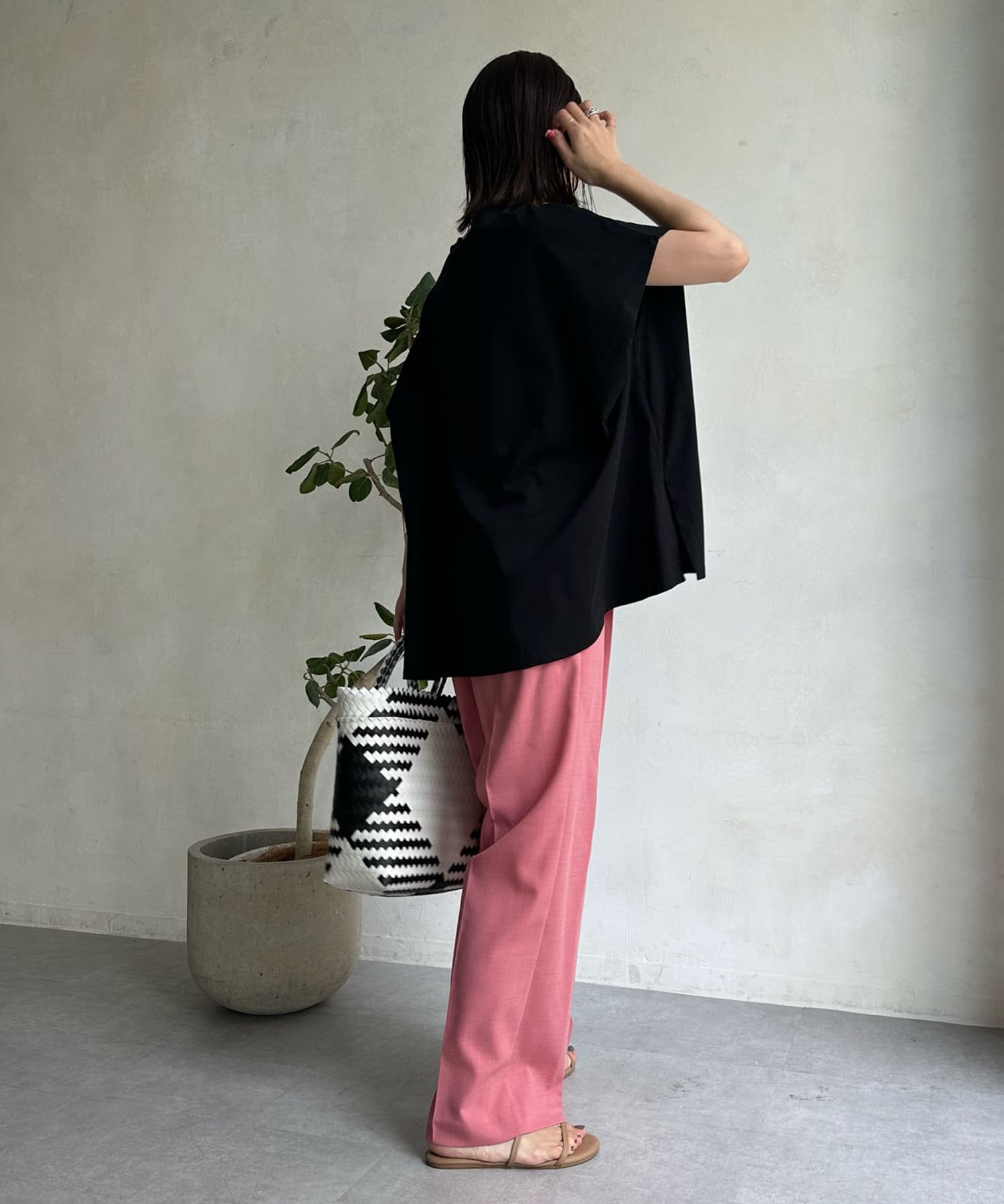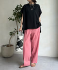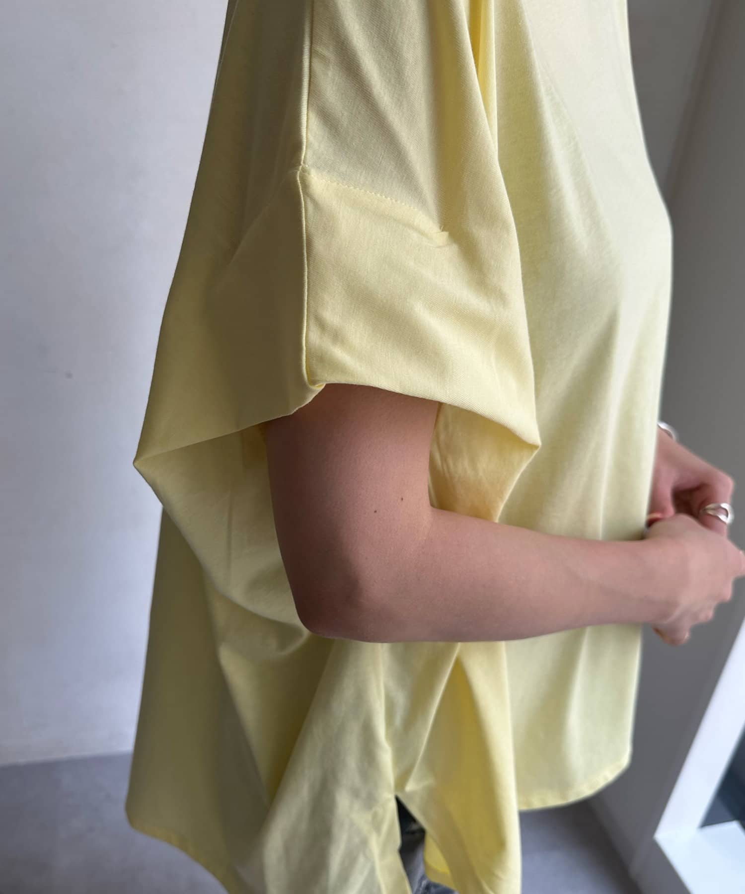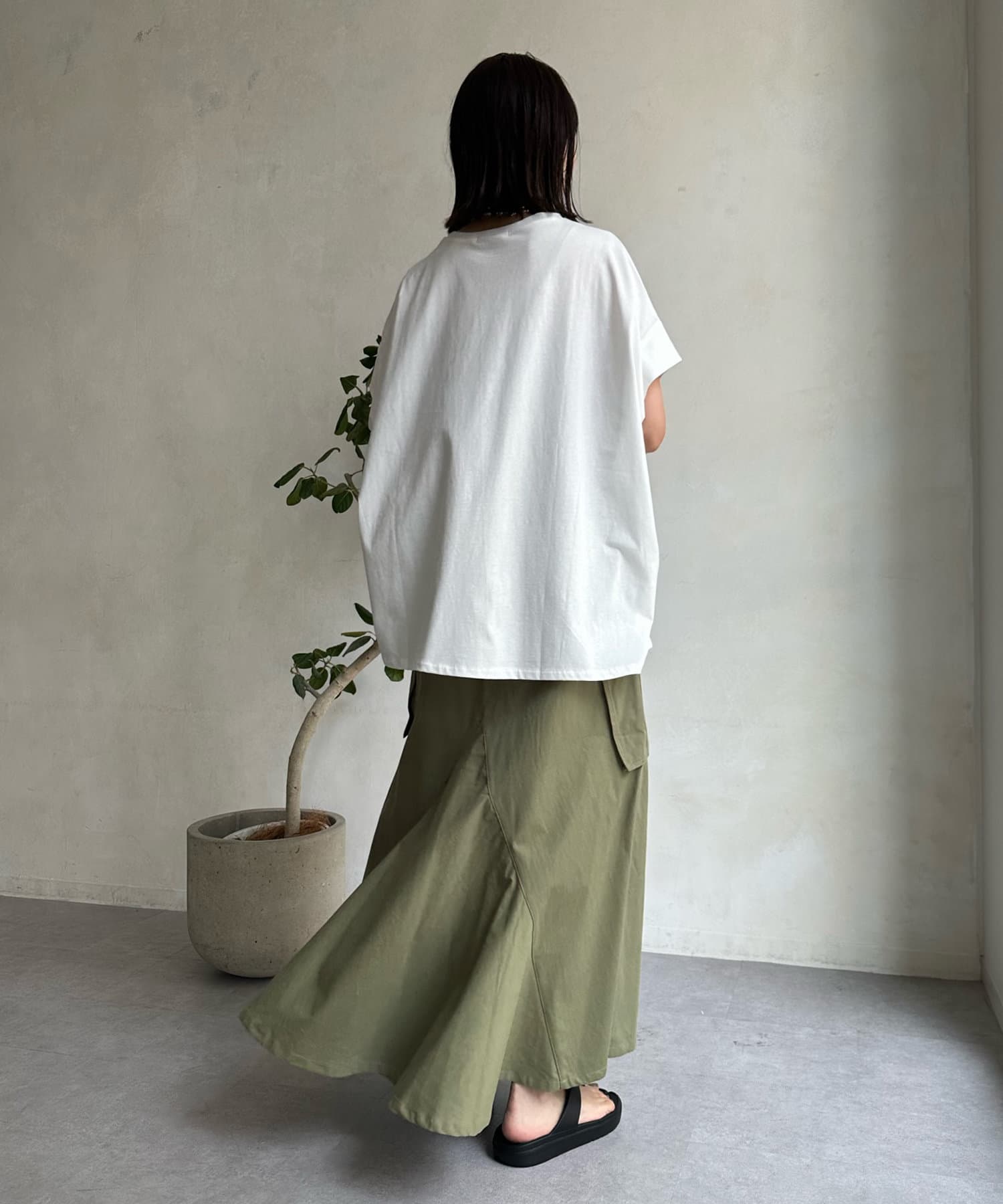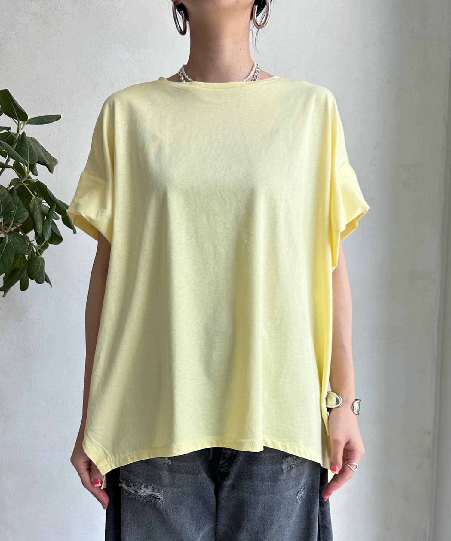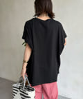 ボディラインを拾わないオーバーサイズで、綿100%とリラクシーな着心地なのもおすすめポイント〇